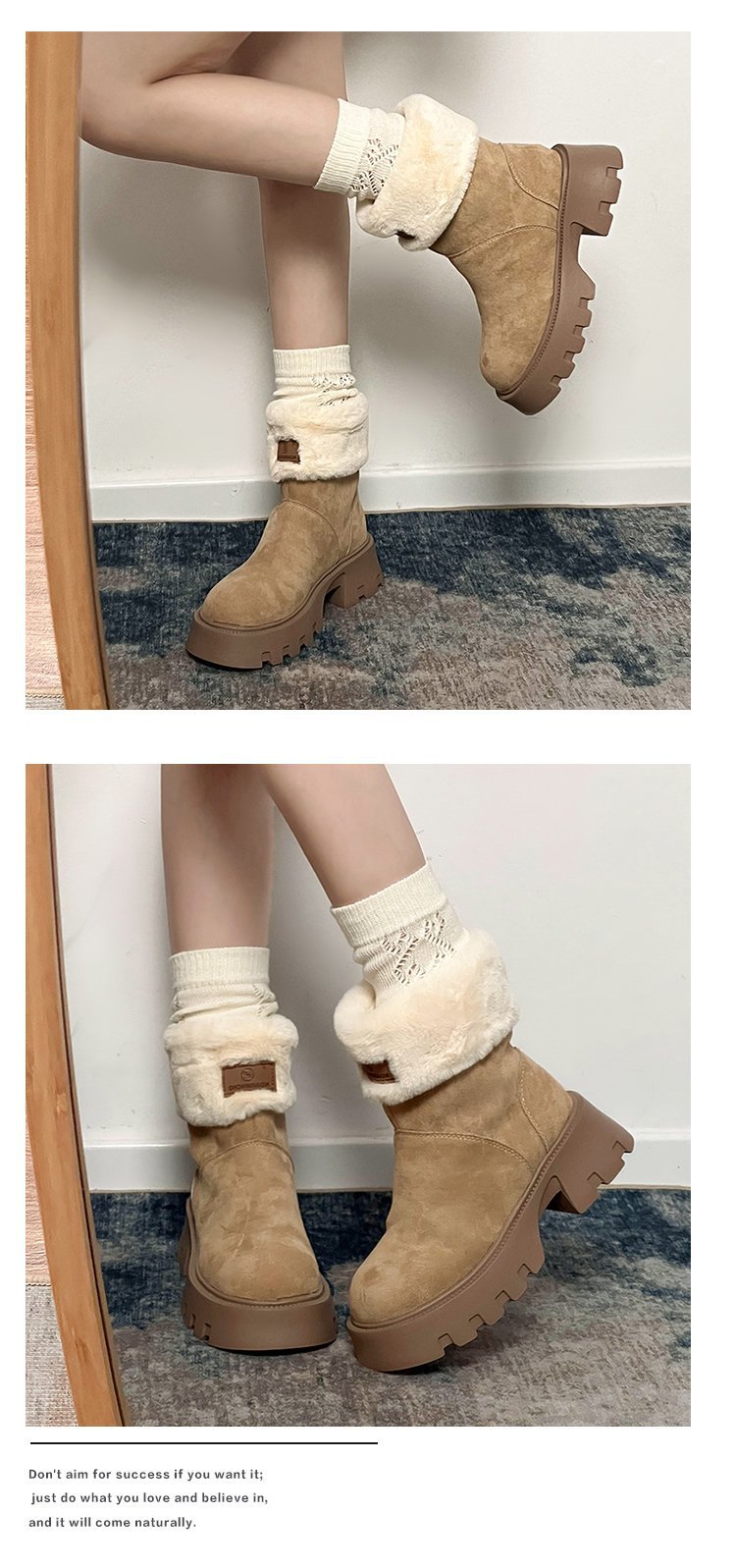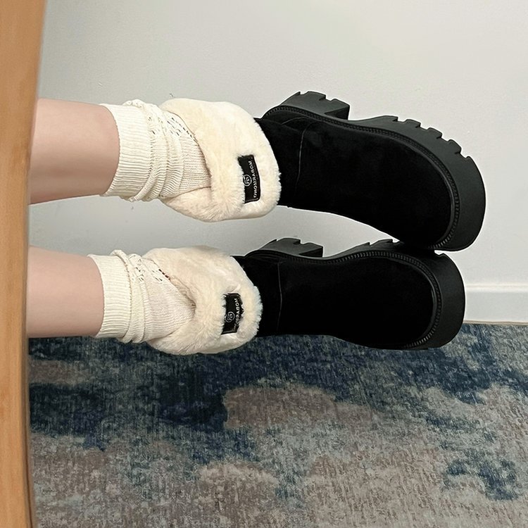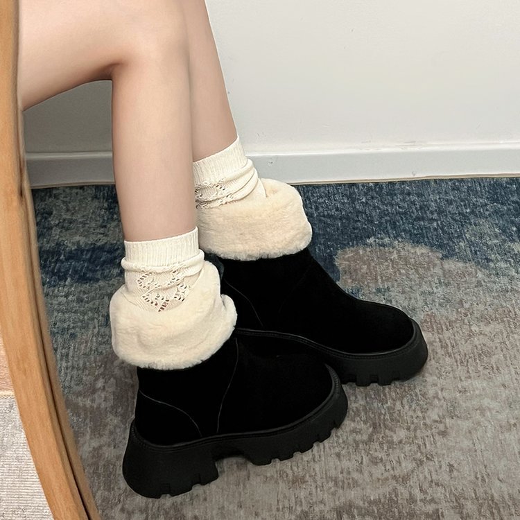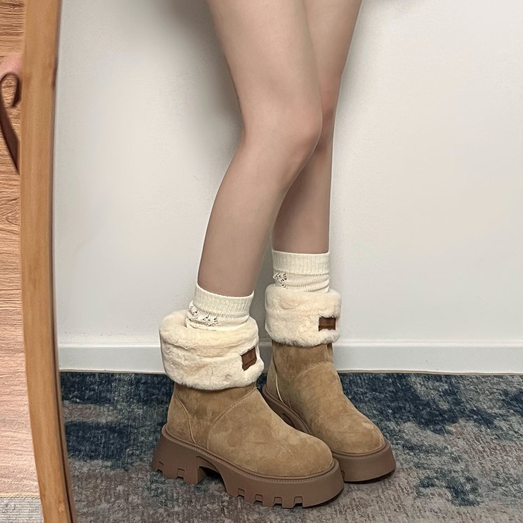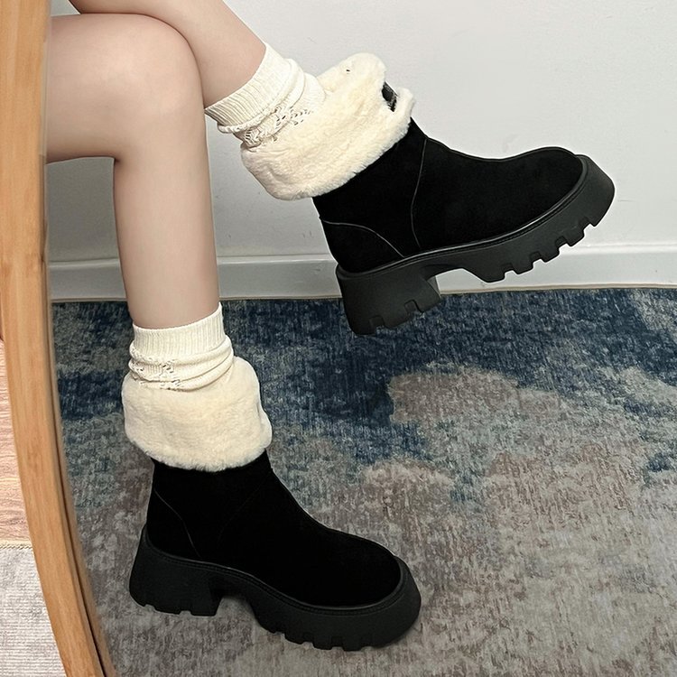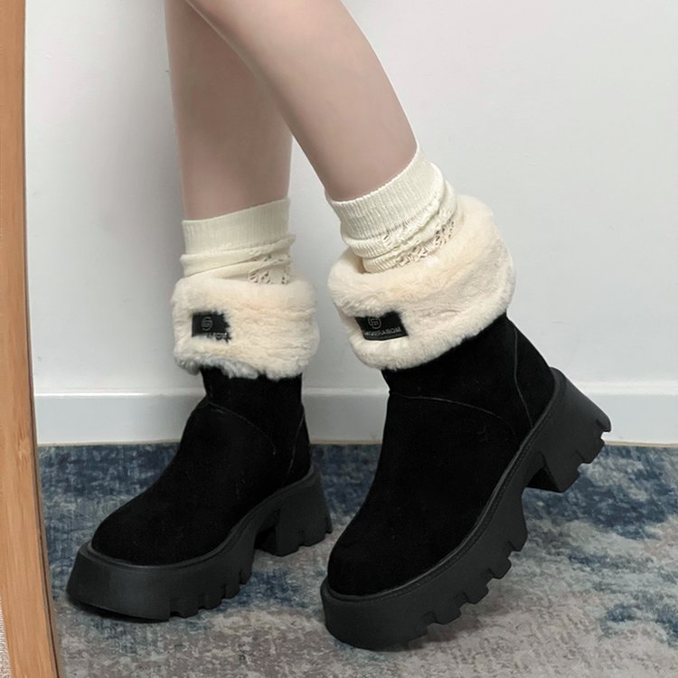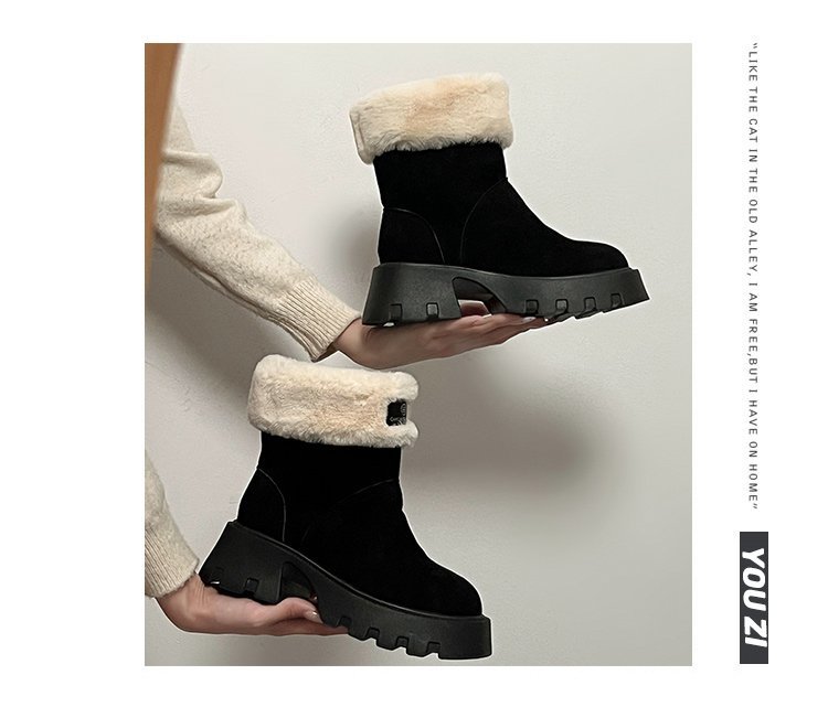 두꺼운 밑창 스노우 부츠 여성의 2024 새로운 겨울 작은 미끄럼 방지 기모 두꺼운 북동쪽 큰면 신발 빈티지 짧은 부츠