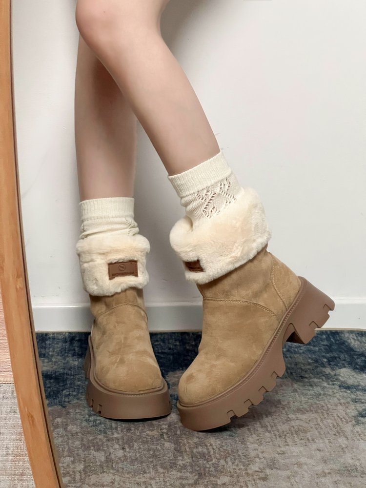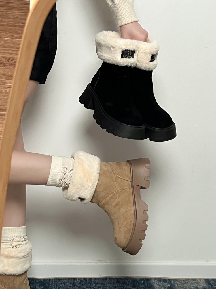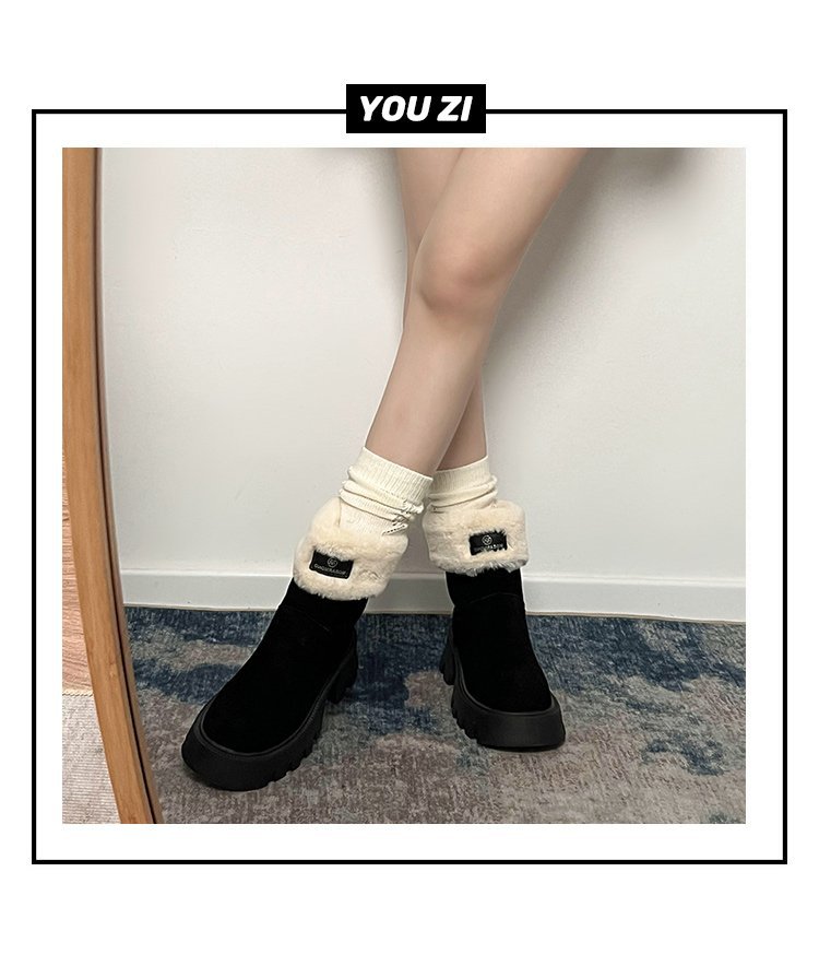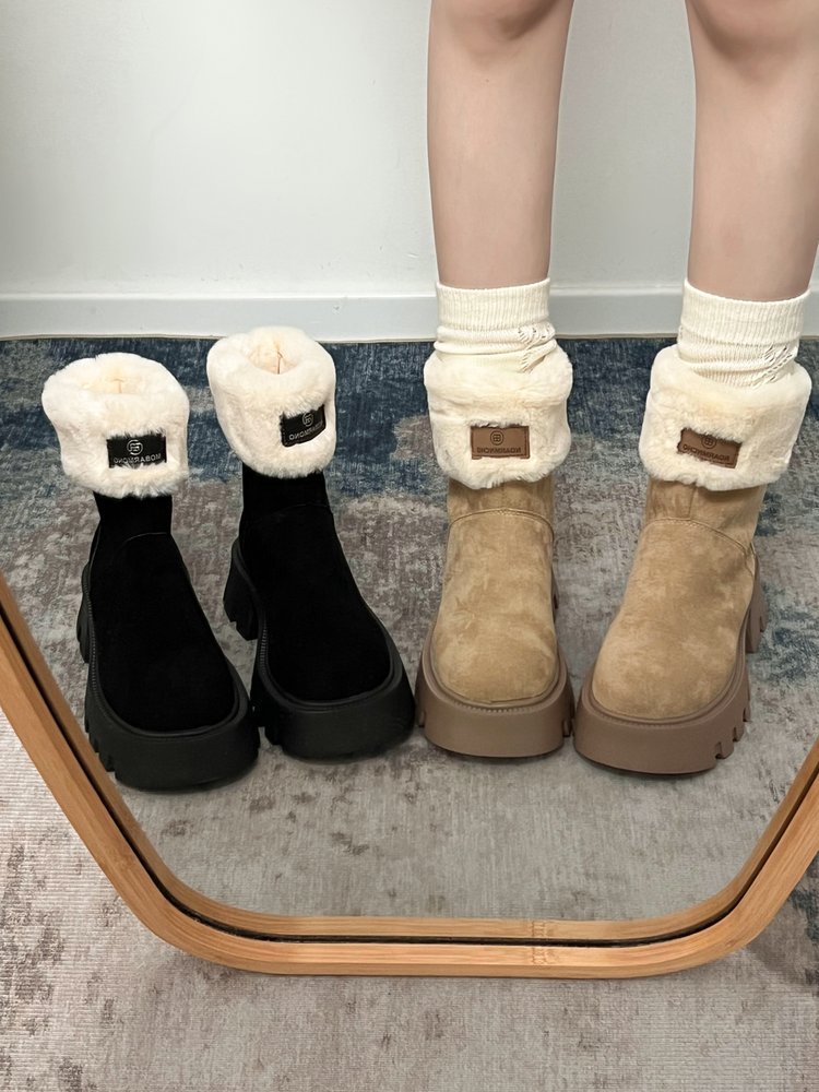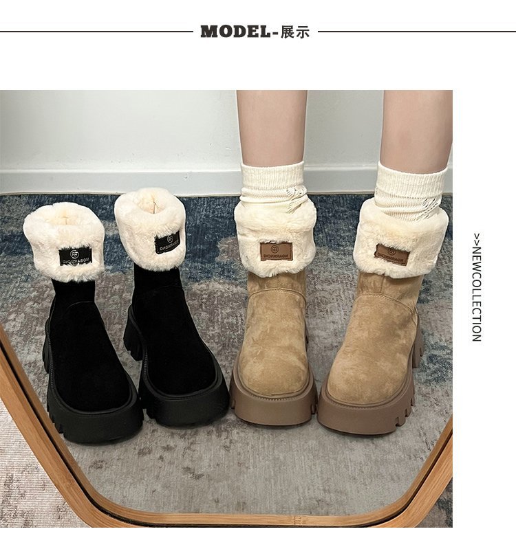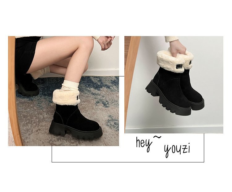 두꺼운 밑창 스노우 부츠 여성의 2024 새로운 겨울 작은 미끄럼 방지 기모 두꺼운 북동쪽 큰면 신발 빈티지 짧은 부츠스토어 가기