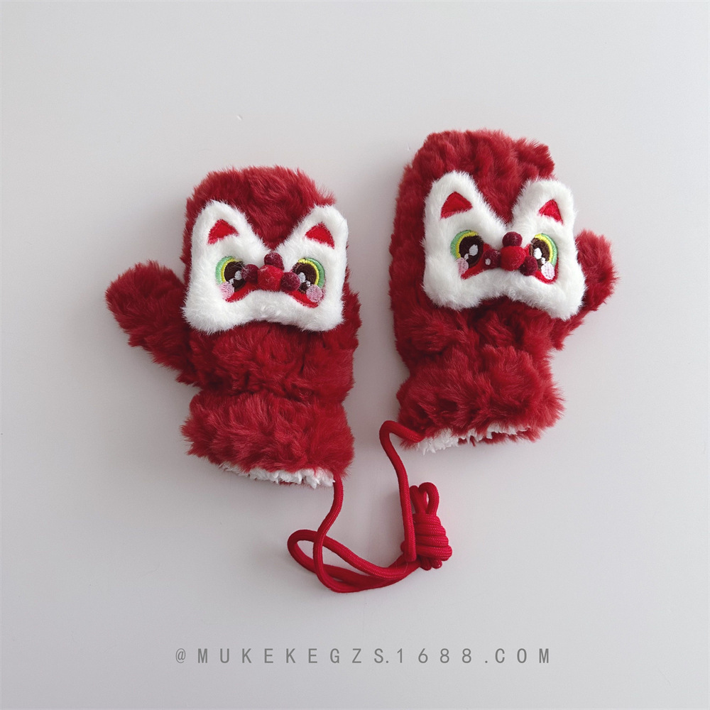 2024 년 새해 레드 내셔널 스타일 라이온 웨이크 봉제 모자 겨울 스카프 소년과 소녀를위한 따뜻한 감기 방지 귀 보호 모자 통합스토어 가기