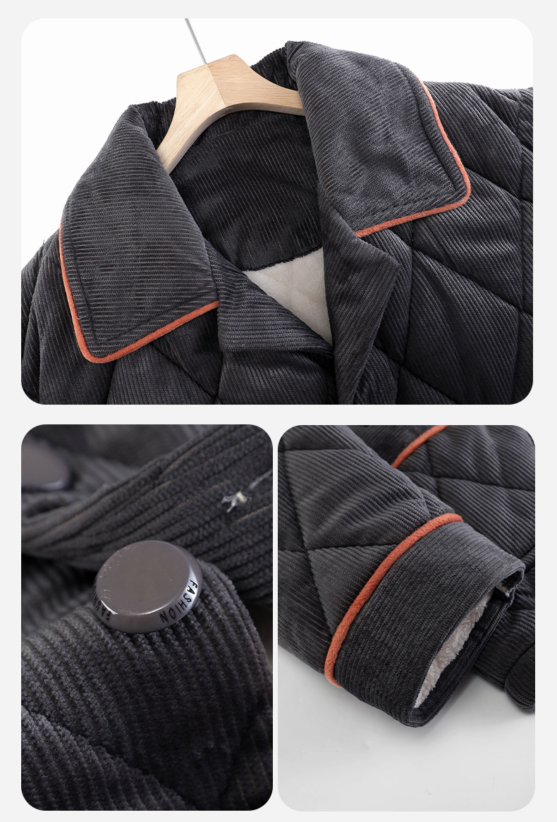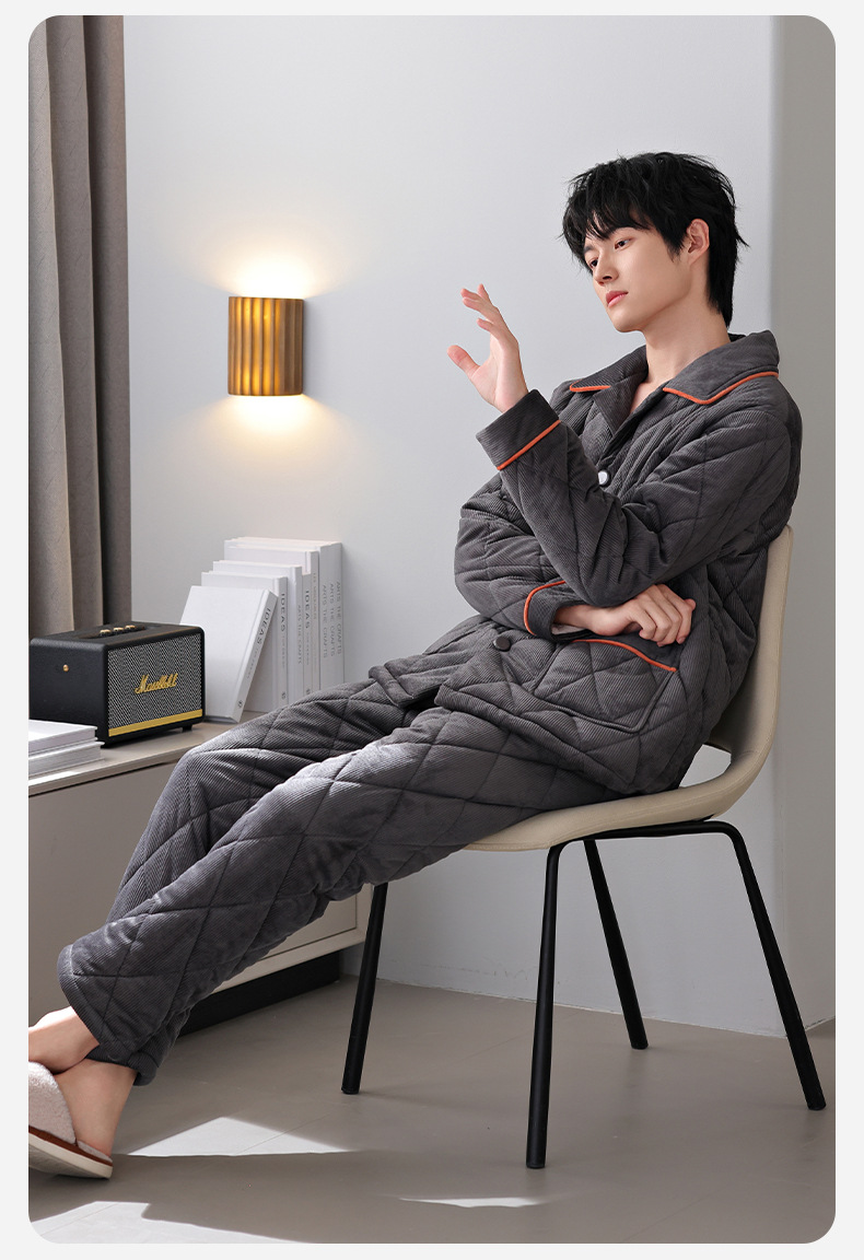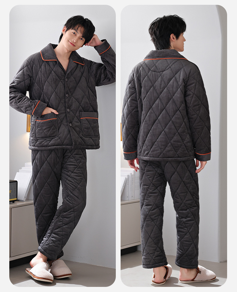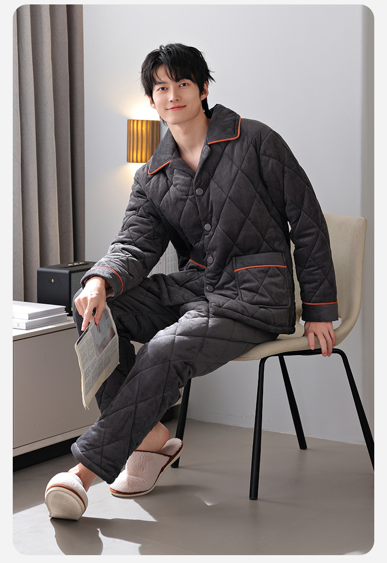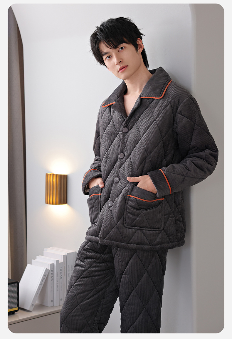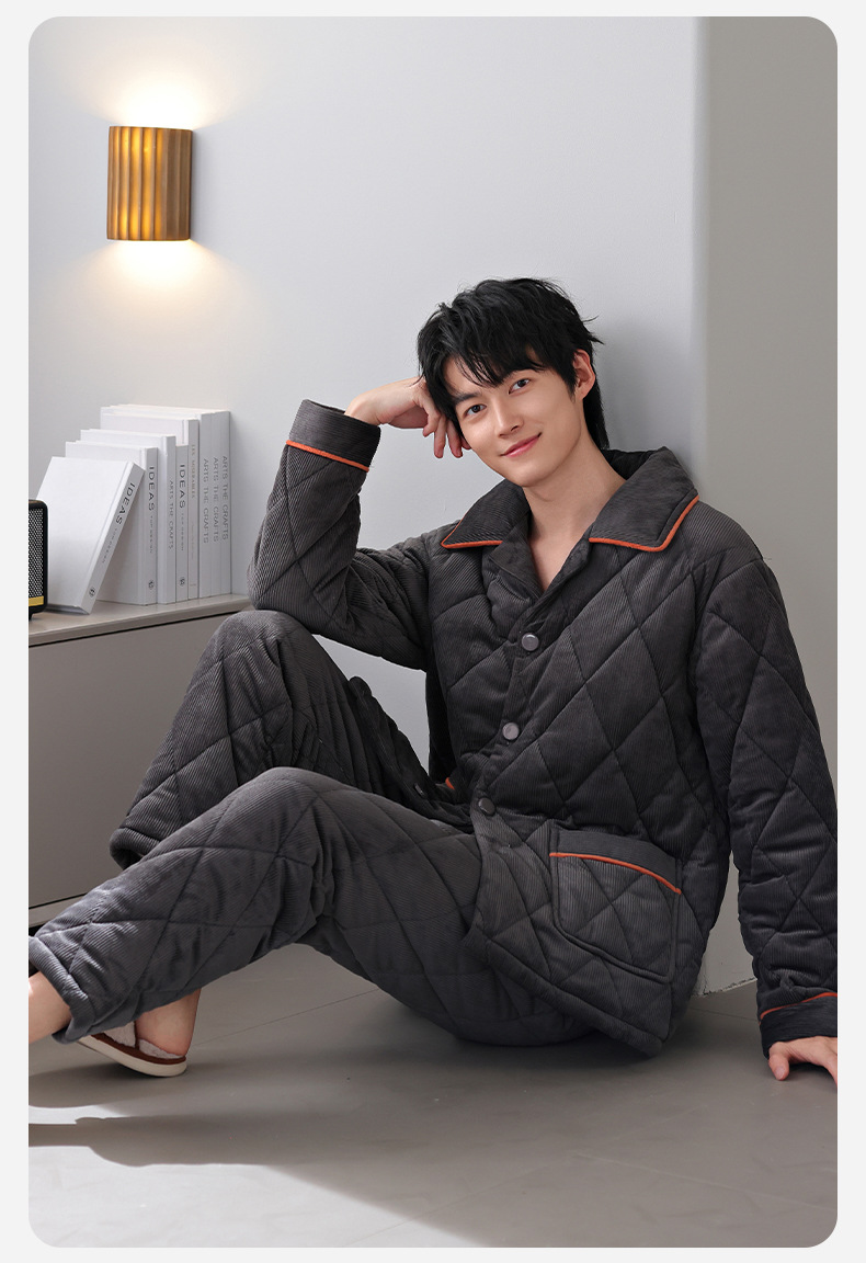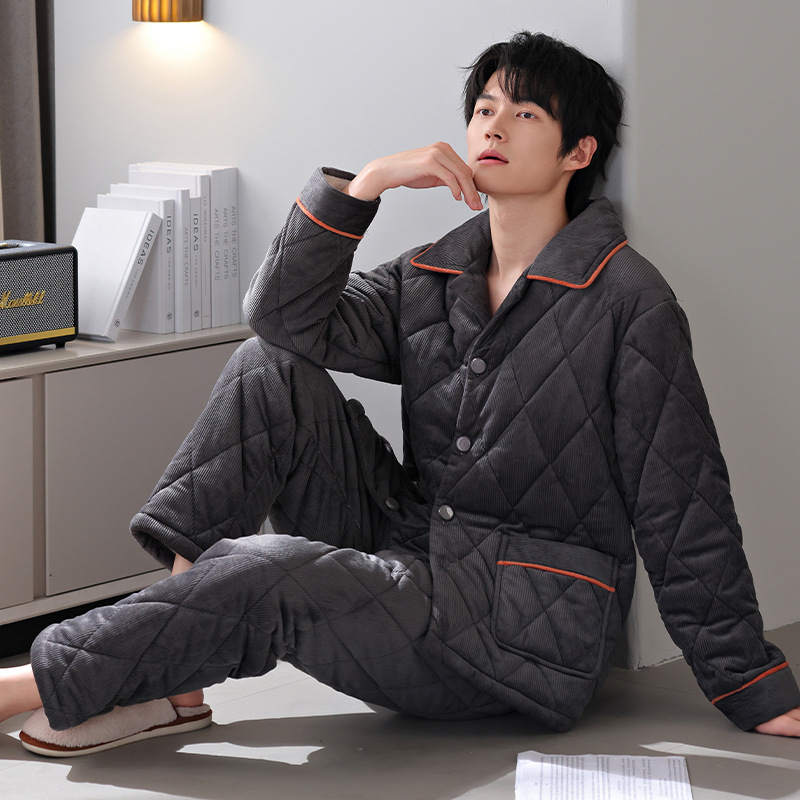 겨울 새로운 3 층 퀼트 남성 코듀로이 파자마 단순하고 관대 한 외모가 캐주얼 홈 세트 입고