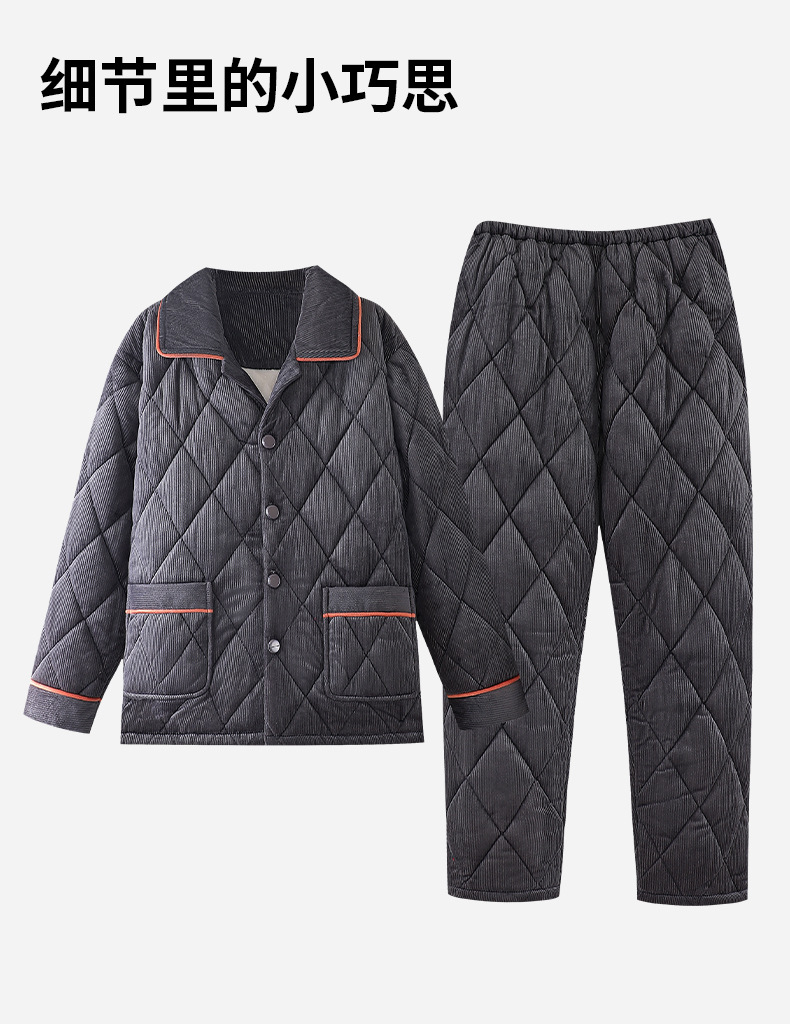 겨울 새로운 3 층 퀼트 남성 코듀로이 파자마 단순하고 관대 한 외모가 캐주얼 홈 세트 입고스토어 가기