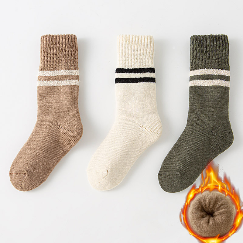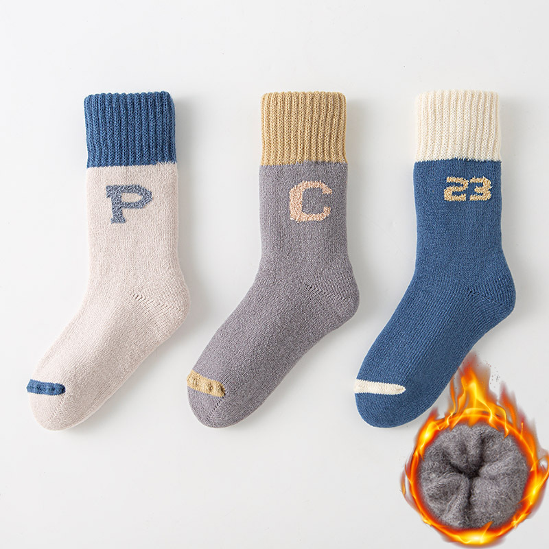 25 가을 겨울 신상품 벨벳 안감 두꺼운 아동 양말 남아 여아 따뜻한 플러시 테리 양말 중간 길이 청소년 양말
