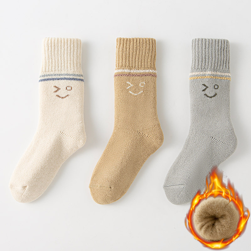 25 가을 겨울 신상품 벨벳 안감 두꺼운 아동 양말 남아 여아 따뜻한 플러시 테리 양말 중간 길이 청소년 양말스토어 가기