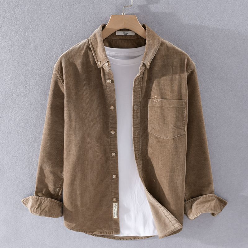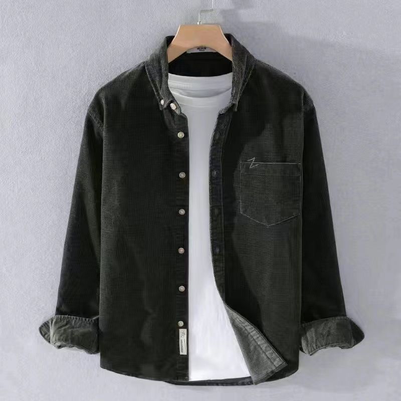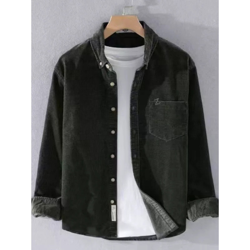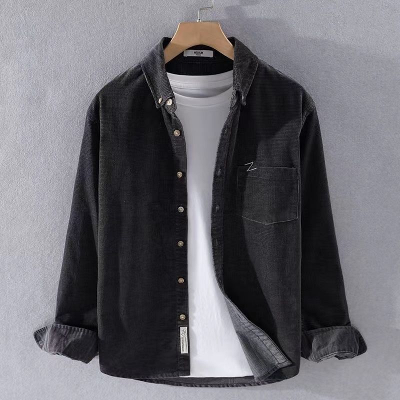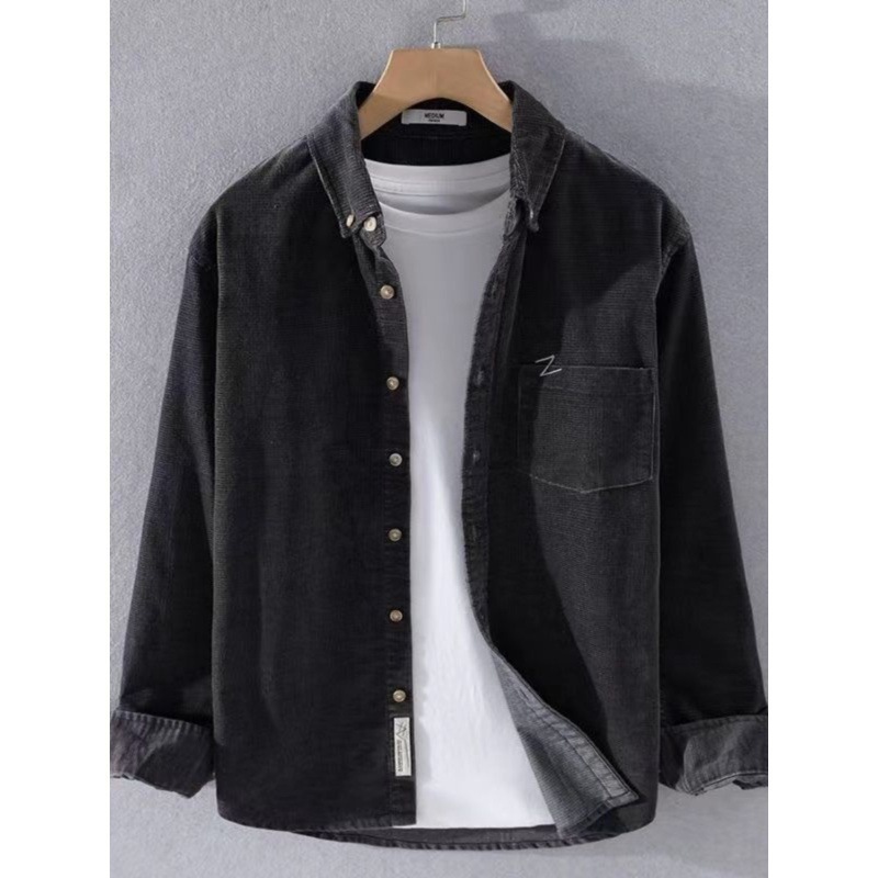 코듀로이 긴 소매 셔츠 남자의 봄과 가을 새로운 재킷 일본 플러스 사이즈 복고풍 감각 느슨한 캐주얼 셔츠