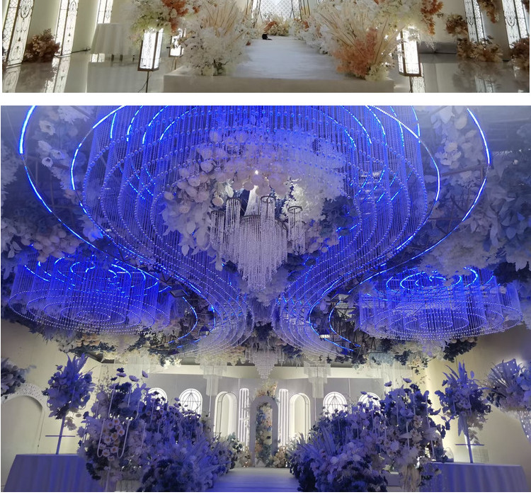 水晶婚礼吊顶圆环婚庆道具舞台弧形架子亚克力菠萝珠吊顶铁艺架