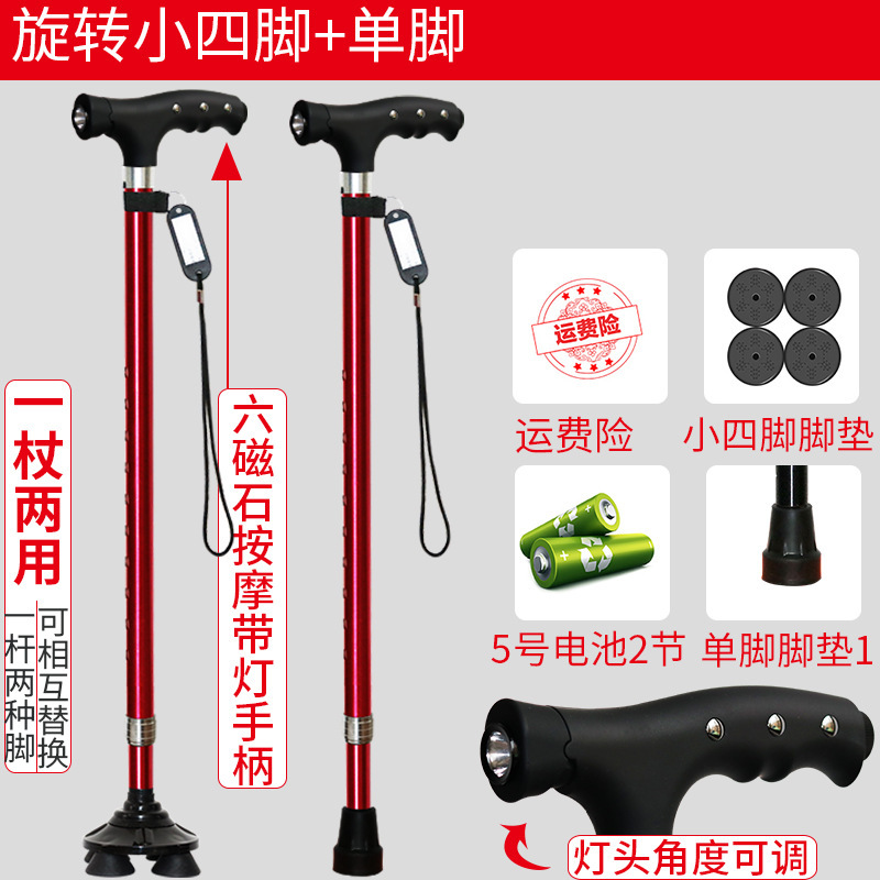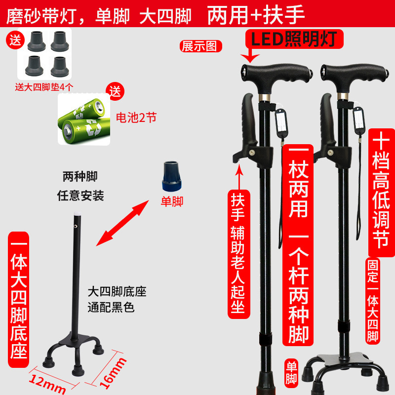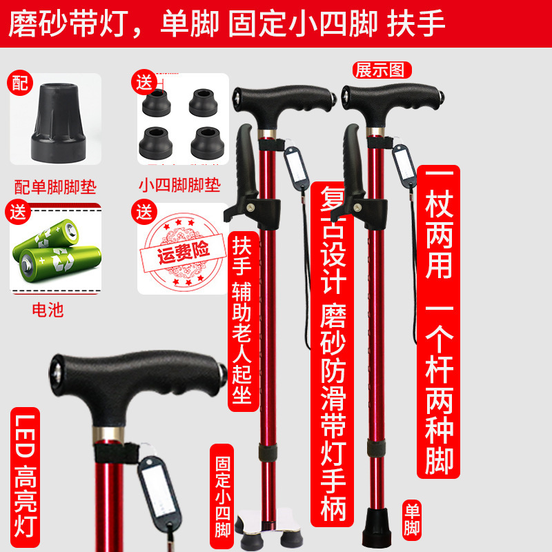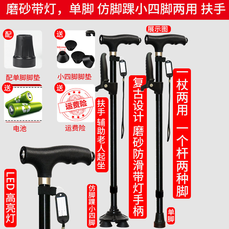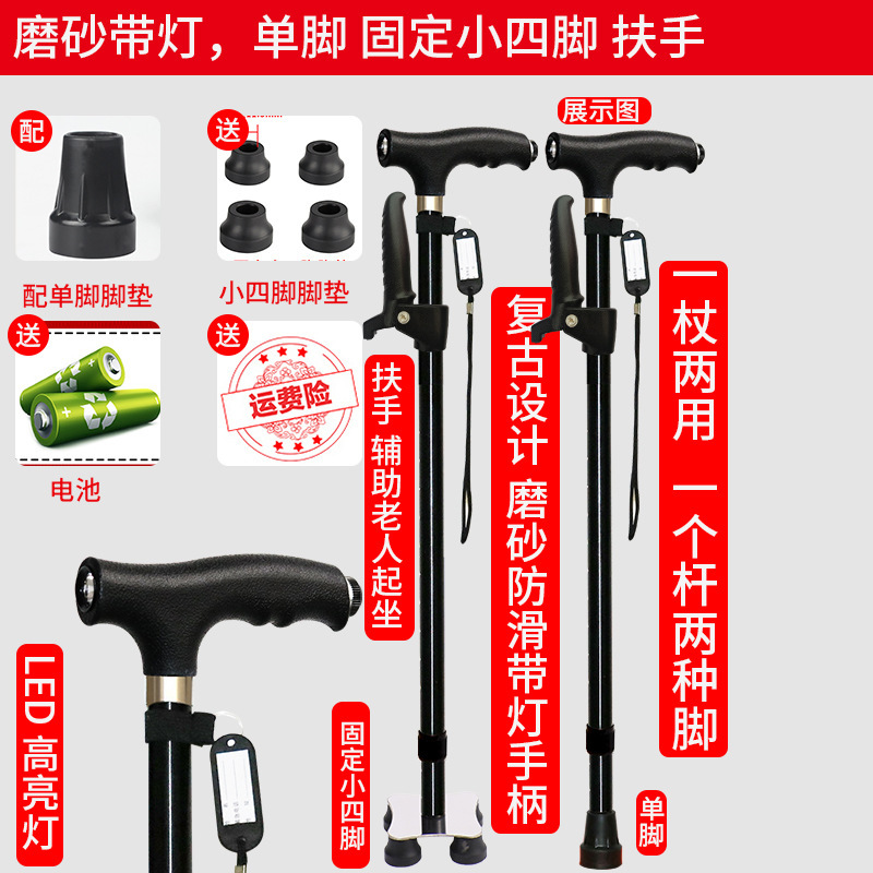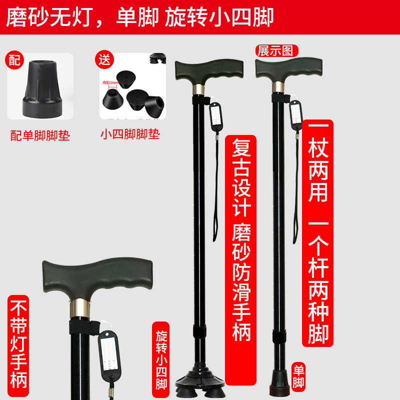 노인 워킹 스틱 네 다리 미끄럼 방지 워킹 스틱 알루미늄 합금 텔레스코픽 라이트 목발을 조명이있는 다기능 목발로 새 것을 조정합니다.