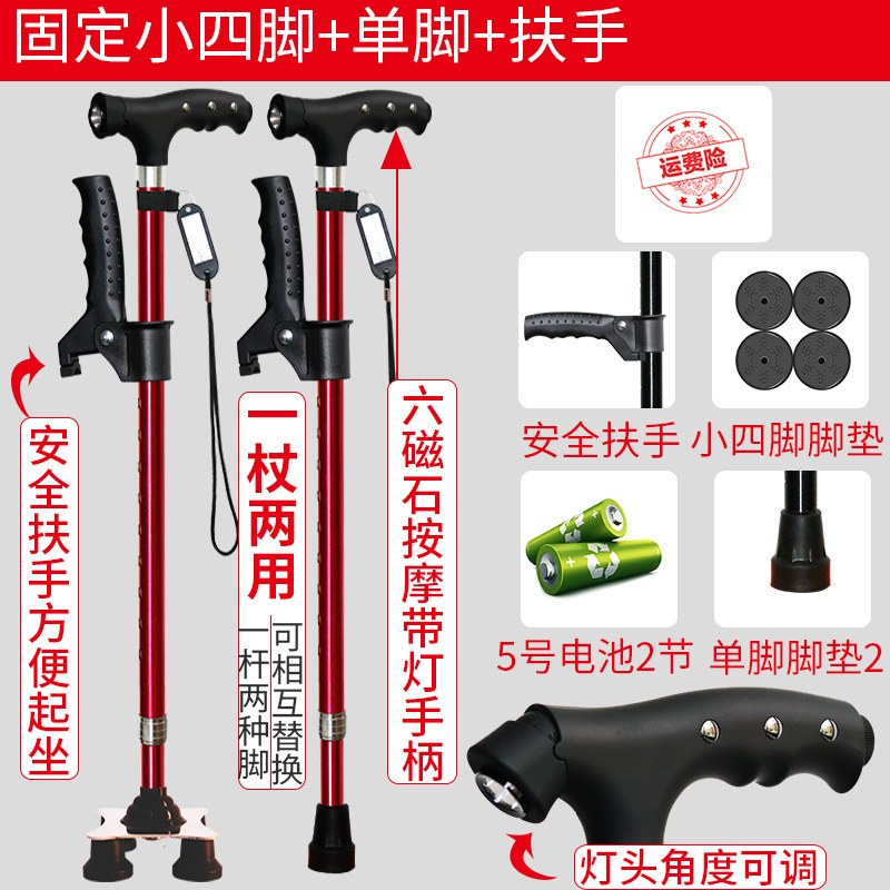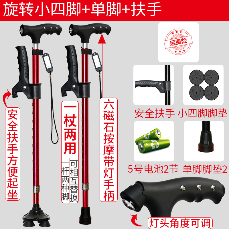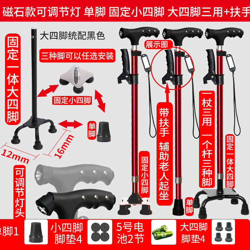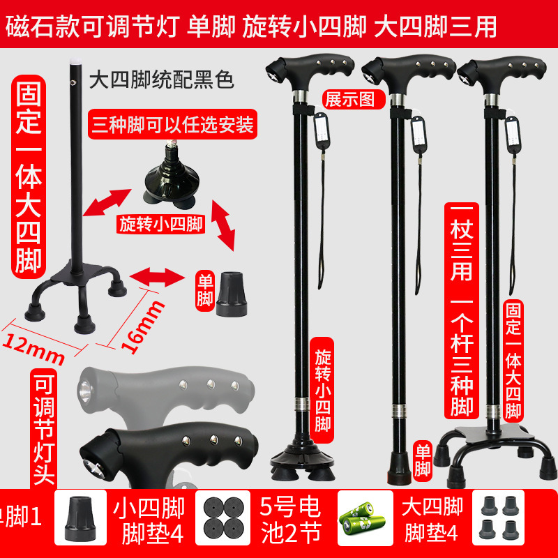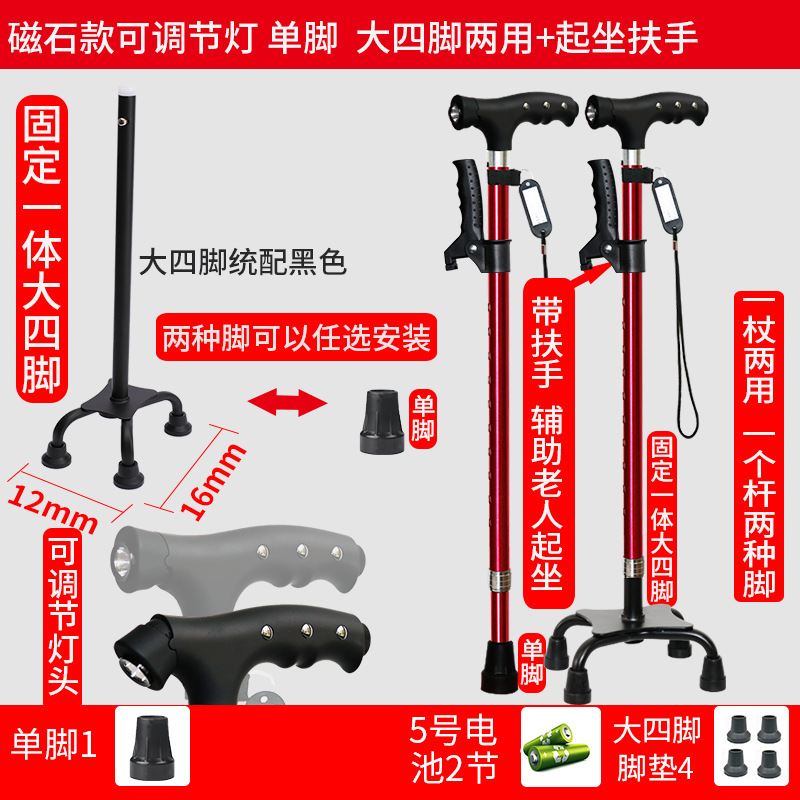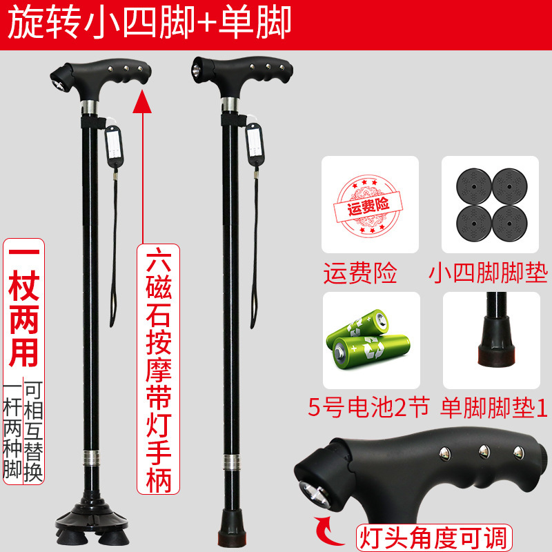 노인 워킹 스틱 네 다리 미끄럼 방지 워킹 스틱 알루미늄 합금 텔레스코픽 라이트 목발을 조명이있는 다기능 목발로 새 것을 조정합니다.