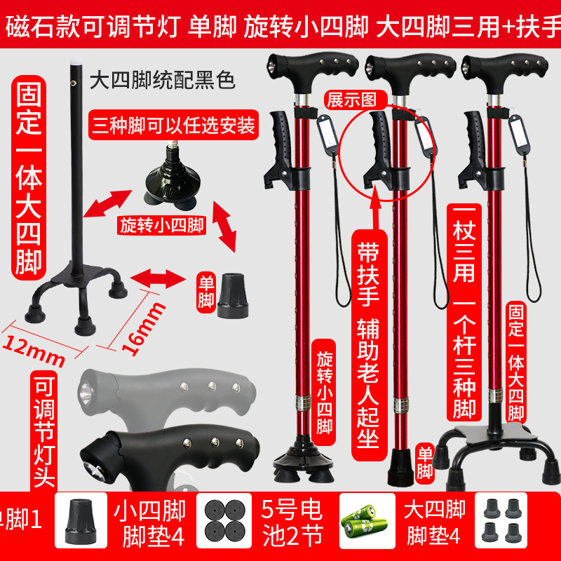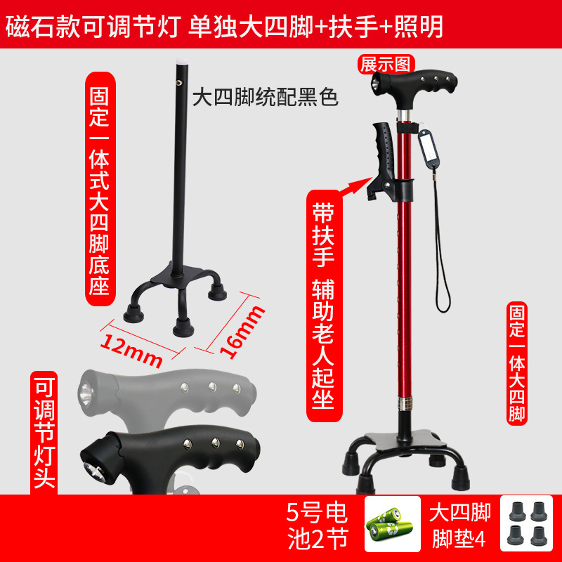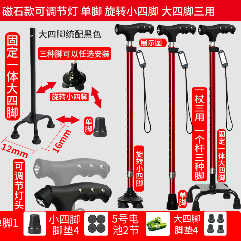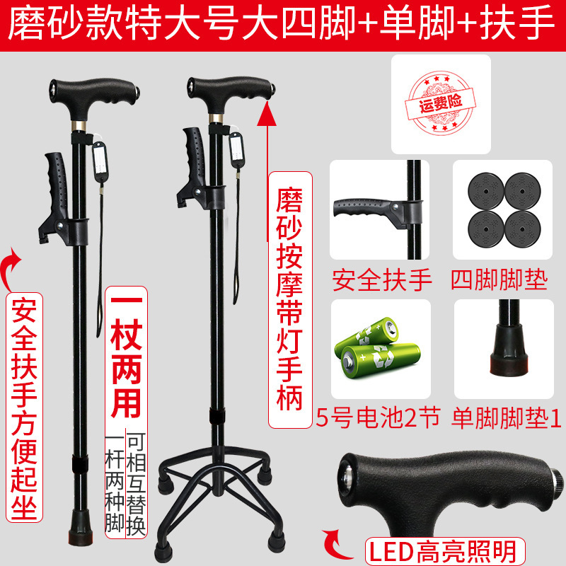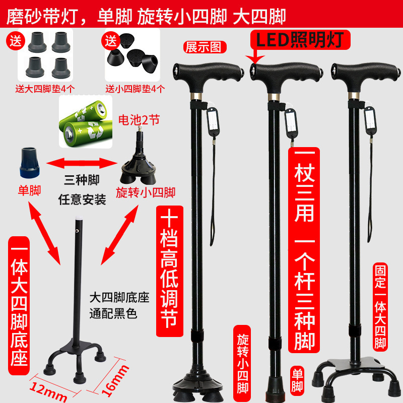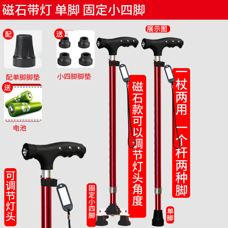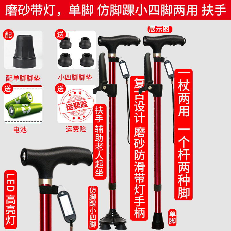 노인 워킹 스틱 네 다리 미끄럼 방지 워킹 스틱 알루미늄 합금 텔레스코픽 라이트 목발을 조명이있는 다기능 목발로 새 것을 조정합니다.스토어 가기