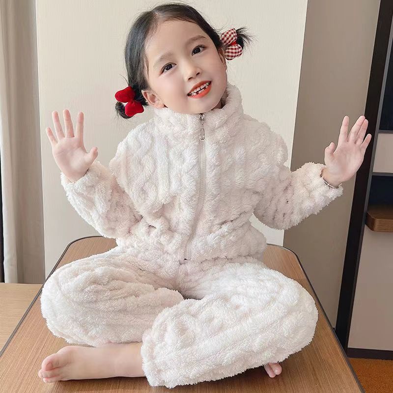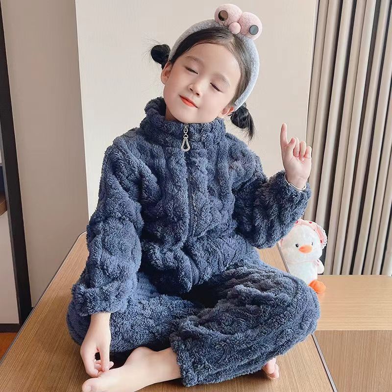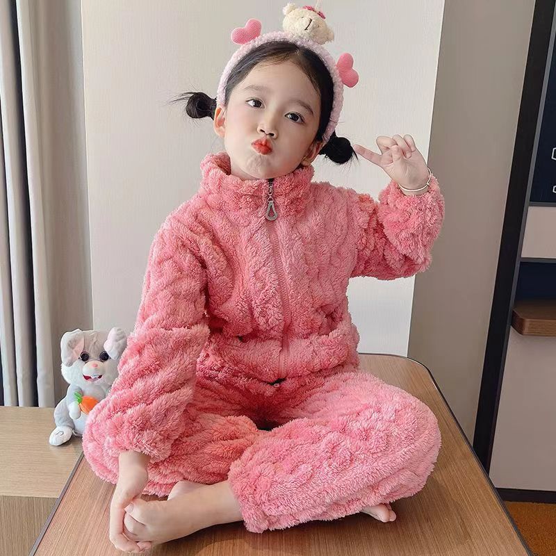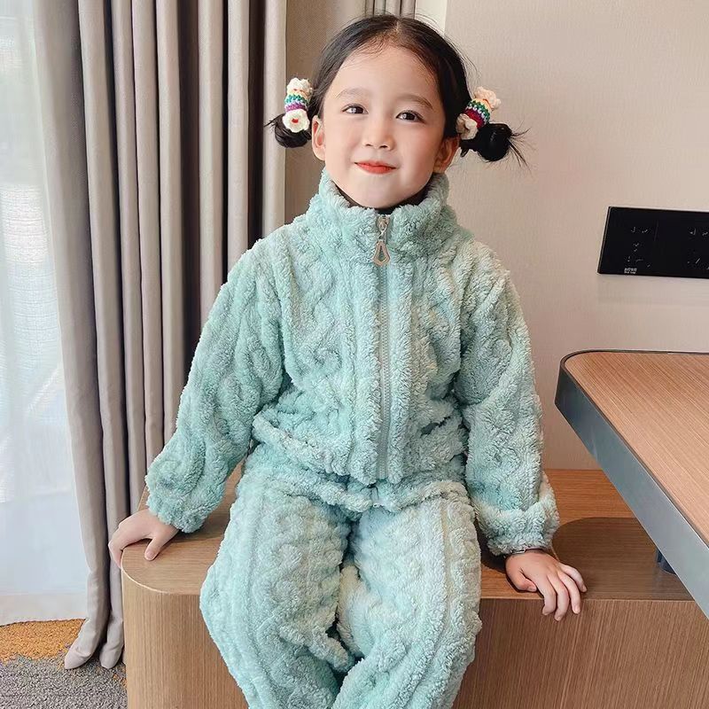 어린이 잠옷 플란넬 봄 가을과 겨울 두꺼운 산호 양털 소녀의 집 옷 소년 기모 아기