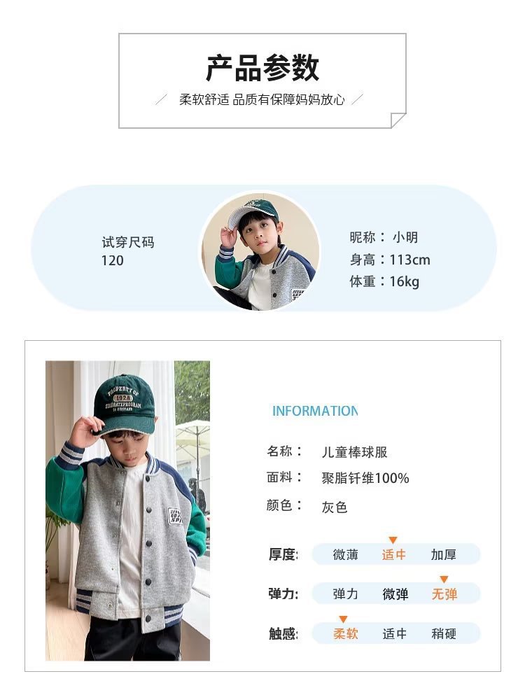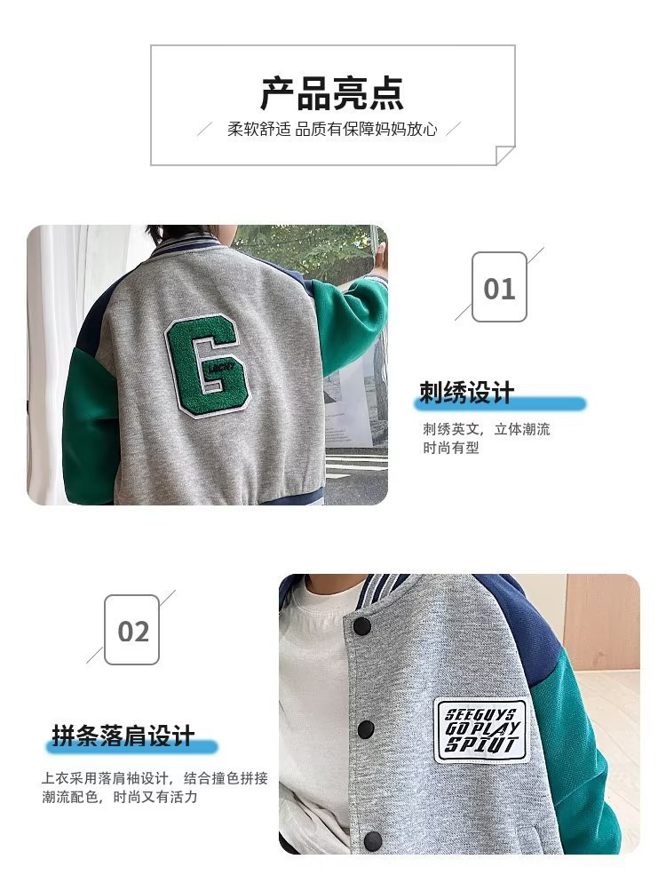 소년 야구 세트 봄과 가을 2024 새로운 어린이 가을 재킷 코트 중대형 아동복 가을 아동복 탑스토어 가기