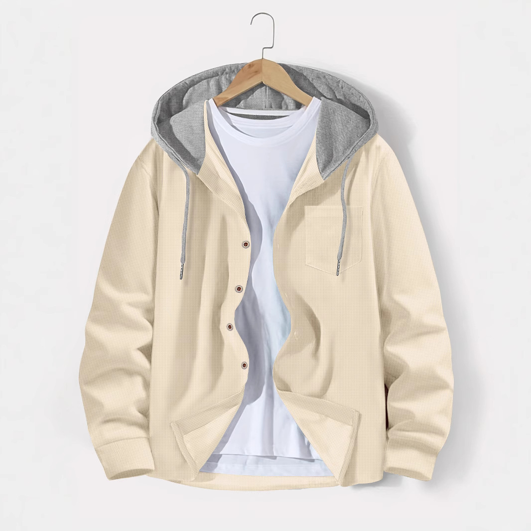 2024 아마존 소원 AliExpress 가을 남자 와플 컬러 블록 버클 후드 캐주얼 카디건 재킷스토어 가기