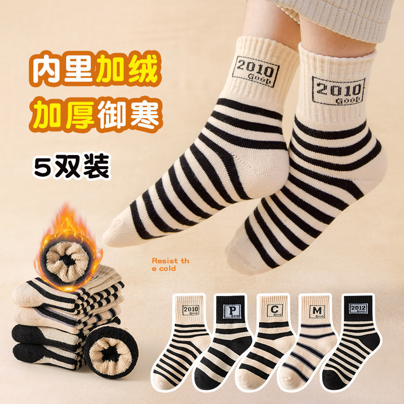 2025년 신상 겨울 테리 양말 도매, 두꺼운 기모 안감 보온 아동 양말, 한국 스타일 레터링 유아 방한 양말스토어 가기