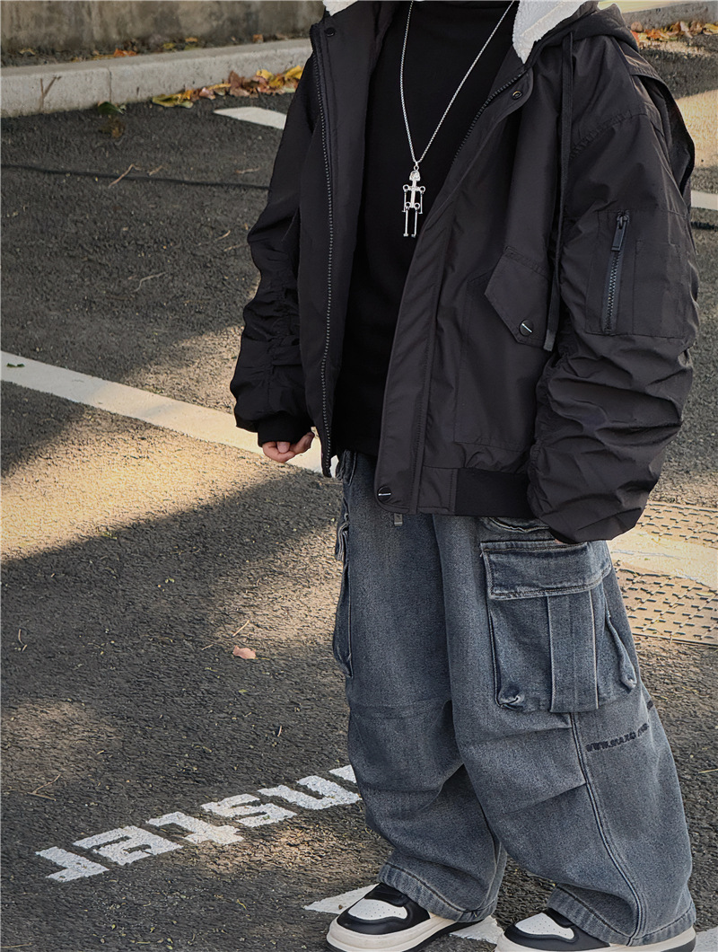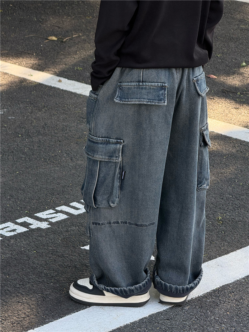 소년 기모 청바지 겨울 원피스 벨벳 2024 새로운 캐주얼 스트레이트 바지 청소년을위한 두꺼운 바지스토어 가기
