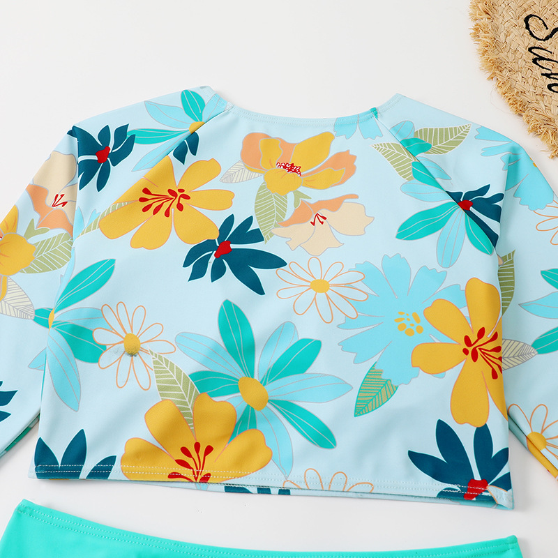 2025 유럽과 미국의 새로운 디지털 인쇄 높은 목 긴 소매 아마존 비키니 높은 허리 분할 서퍼 여성 수영복