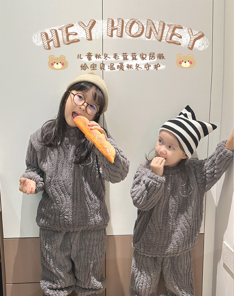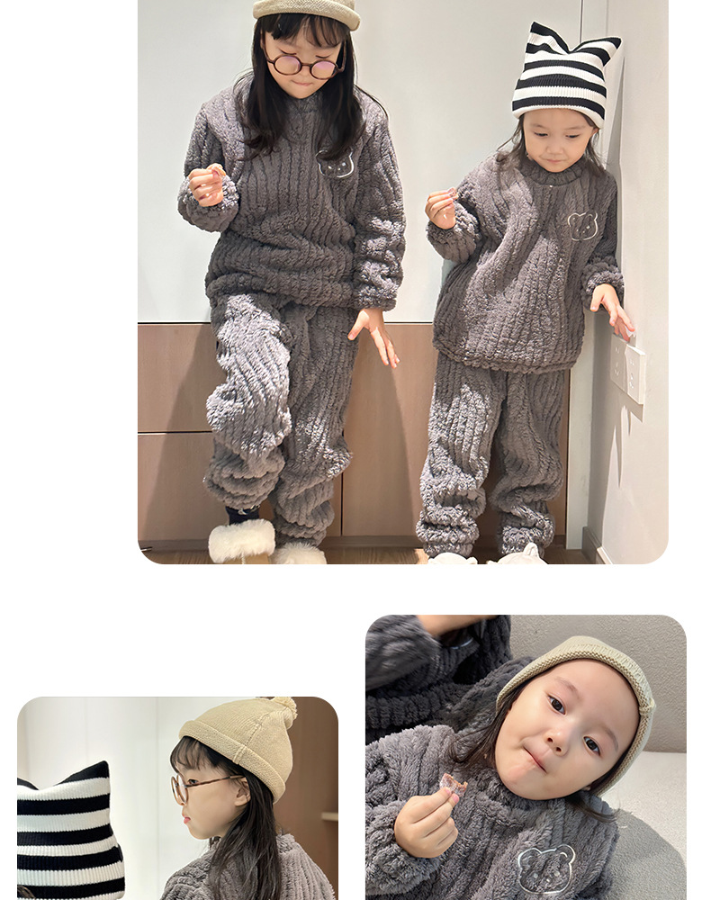 어린이 가을과 겨울 자카드 벨벳 홈 옷 어린 곰 세트 소녀 기모 소년 아기를위한 두꺼운 잠옷 따뜻한 세트스토어 가기