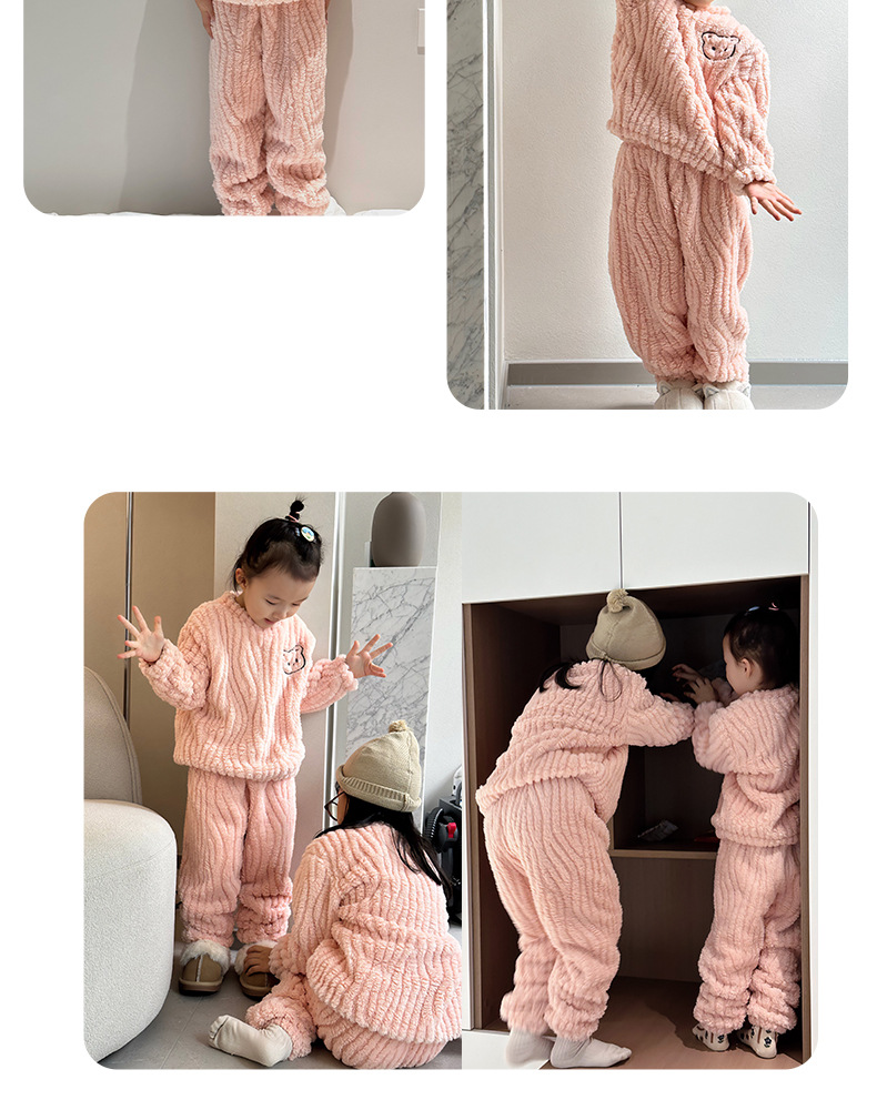 어린이 가을과 겨울 자카드 벨벳 홈 옷 어린 곰 세트 소녀 기모 소년 아기를위한 두꺼운 잠옷 따뜻한 세트
