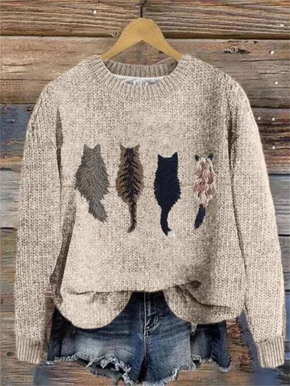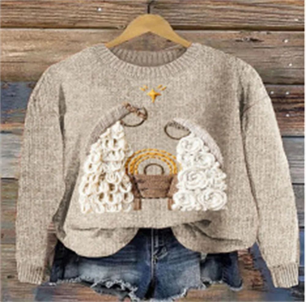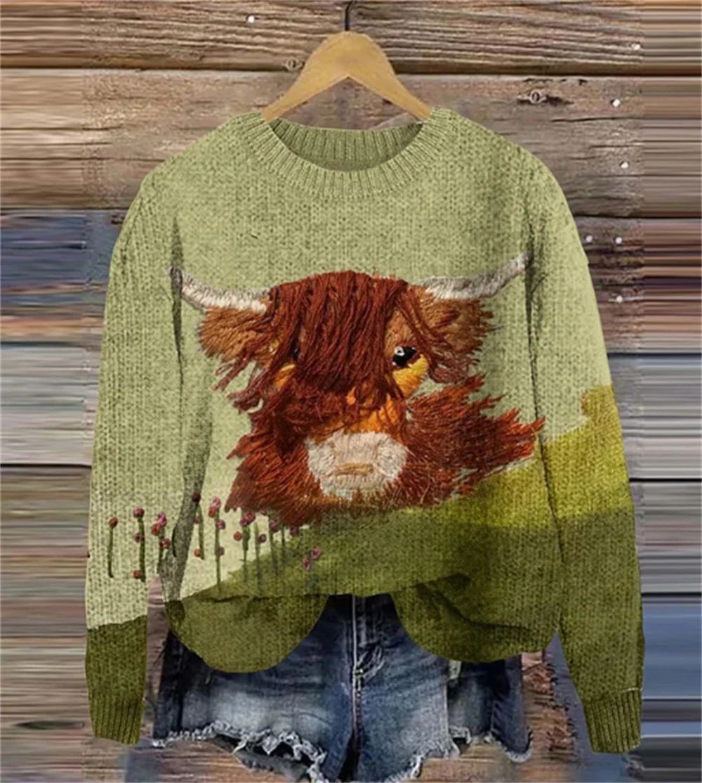 2024 새로운 귀여운 Cock 두꺼운 바늘 스웨터 디지털 인쇄 3D 둥근 목 후드 두꺼운 바늘 원단 탑 여성스토어 가기