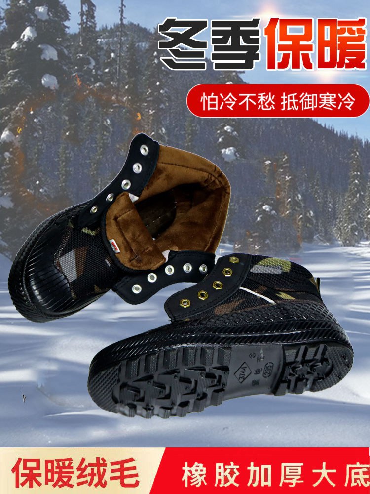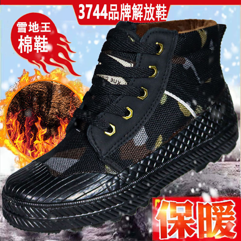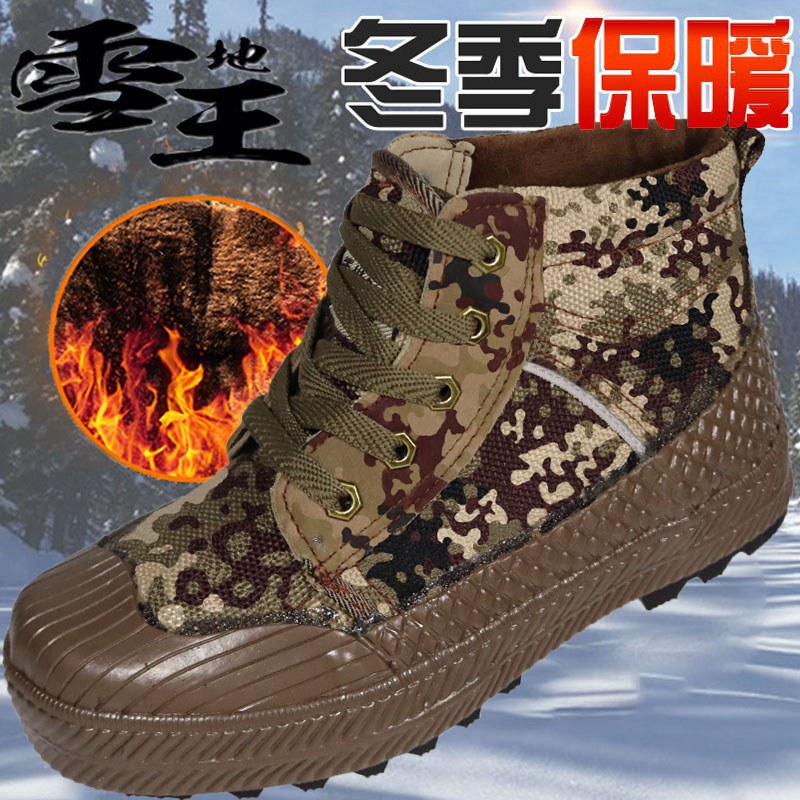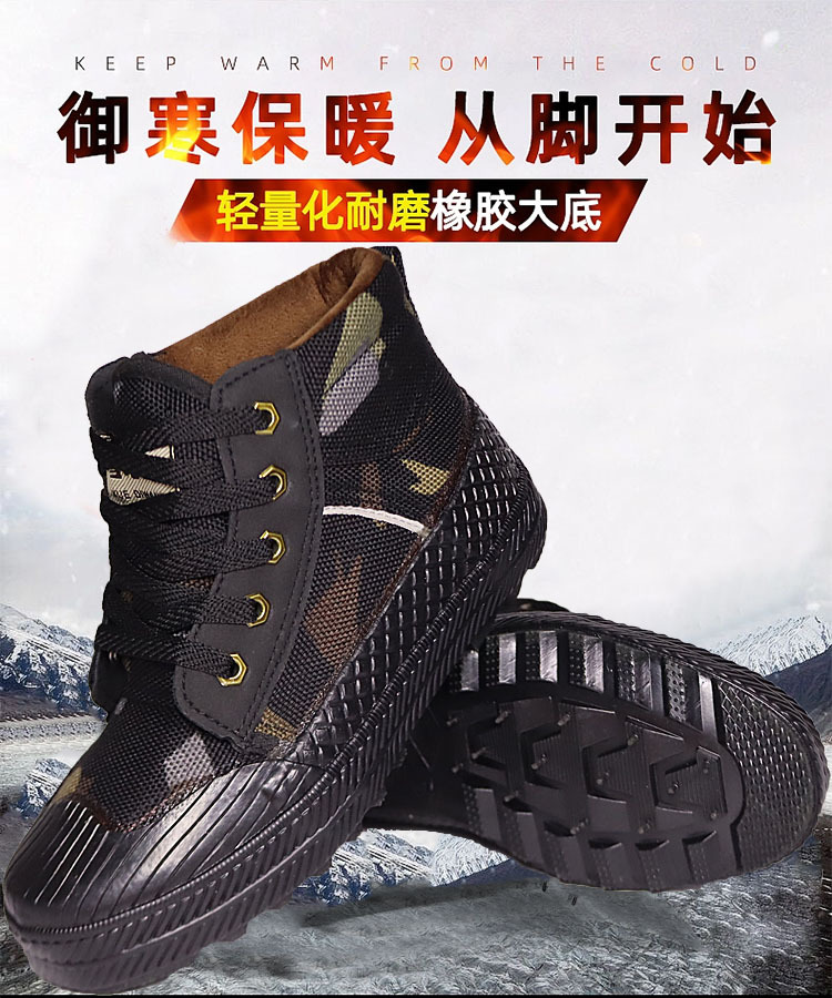 스노우 킹 겨울 하이탑 하이킹 해방 신발 남성용 벨벳 두꺼운 위장 노동 보호 면화 따뜻하고 내한성 면화 고무 신발스토어 가기