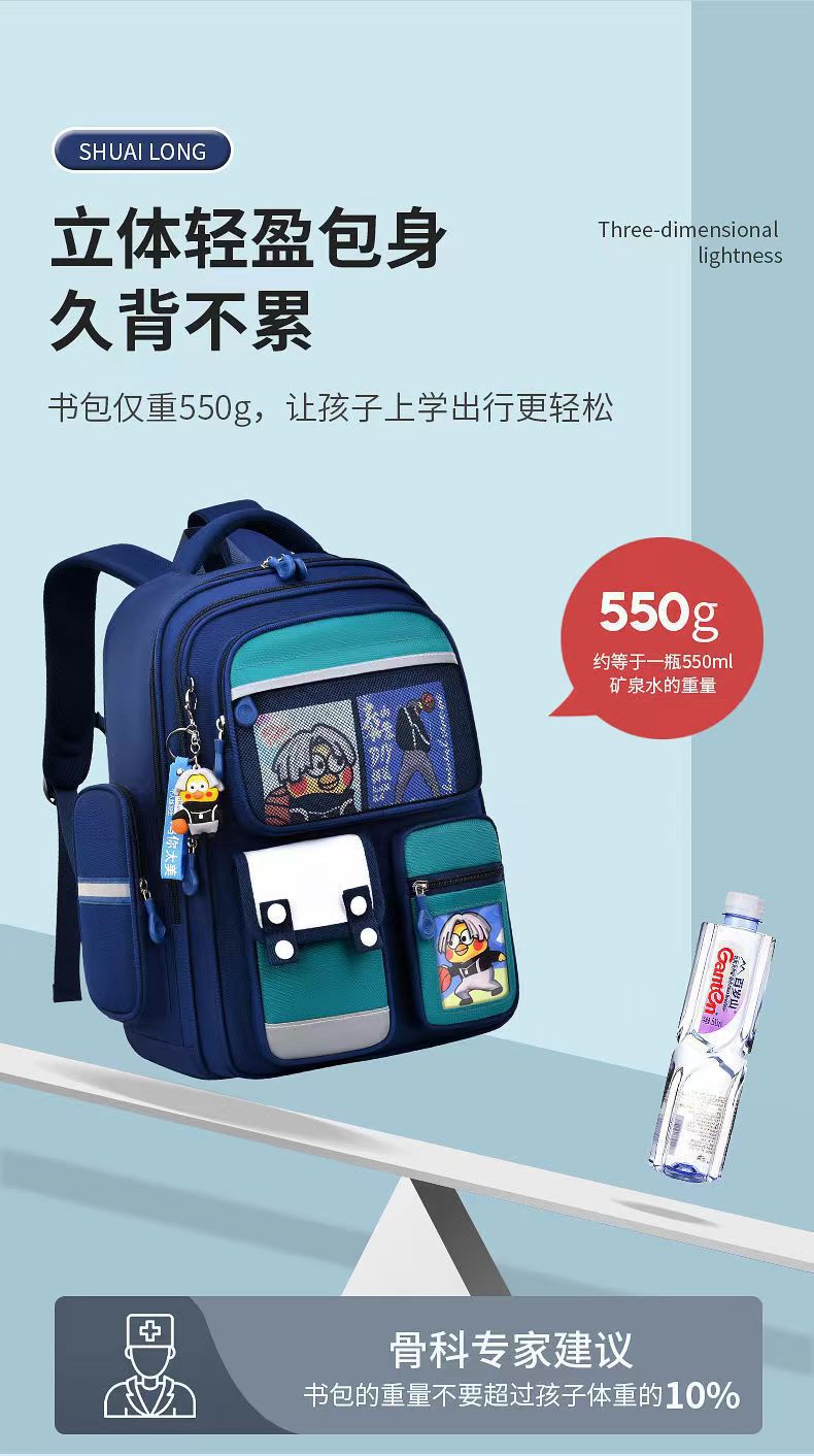 새로운 초등학생 책가방 남학생 1, 2, 4, 6학년 배낭 부담을 줄여주는 척추 보호 대용량 배낭 3-6