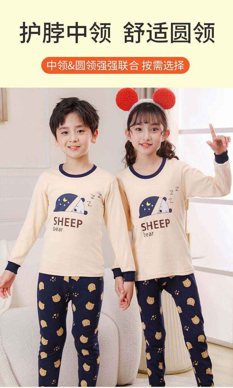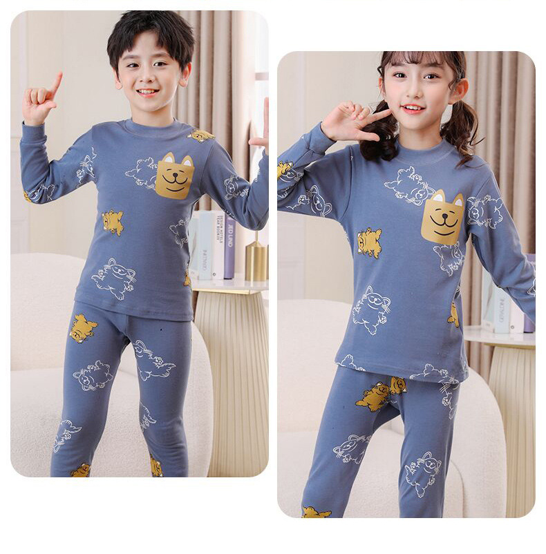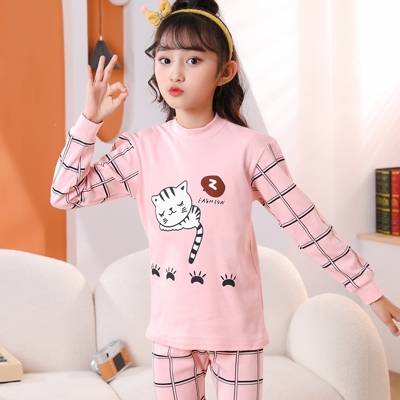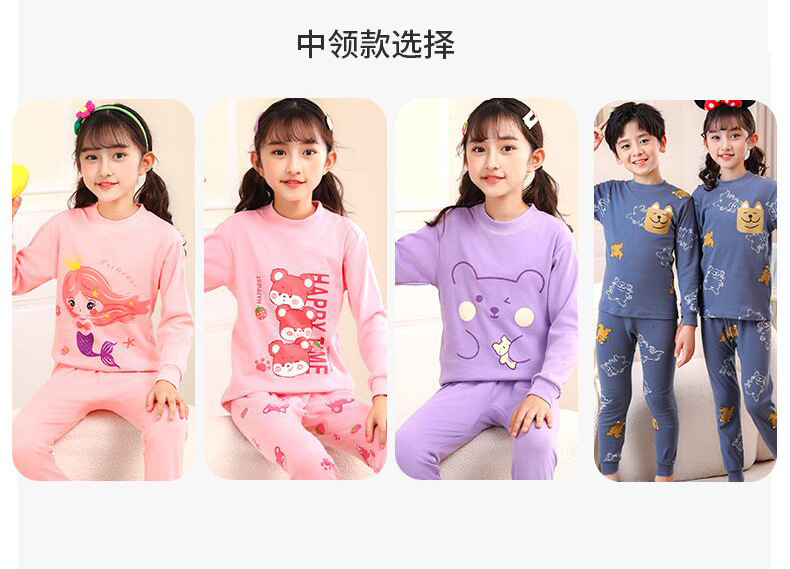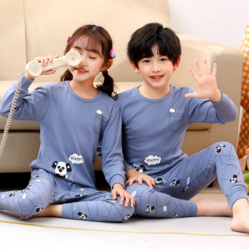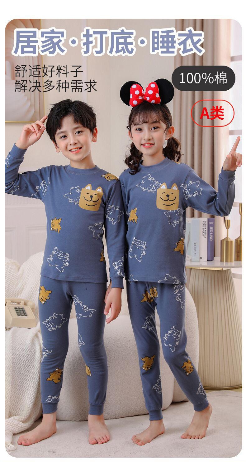 24 가을과 겨울 어린이 속옷 세트 순면 가을 옷과 바지 소년 소녀 면 홈 잠옷 중 큰 어린이 면화 스웨터
