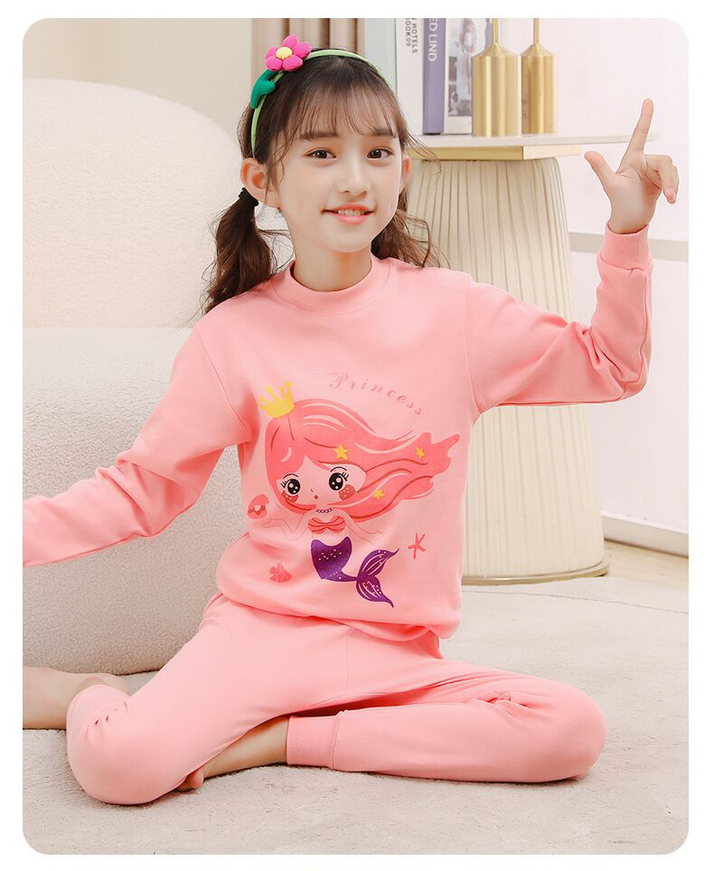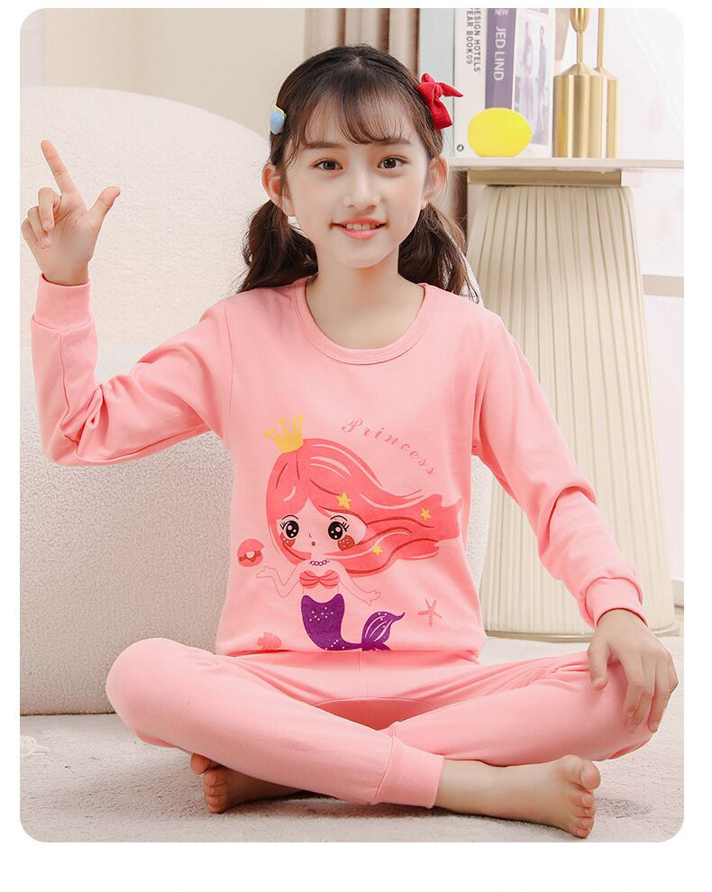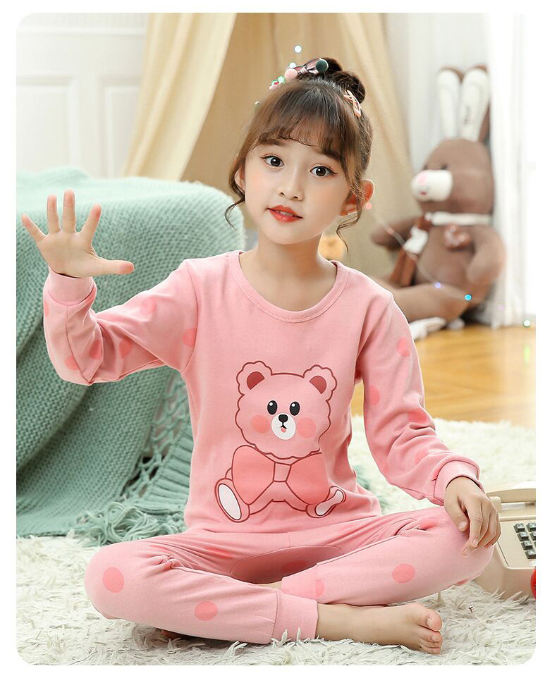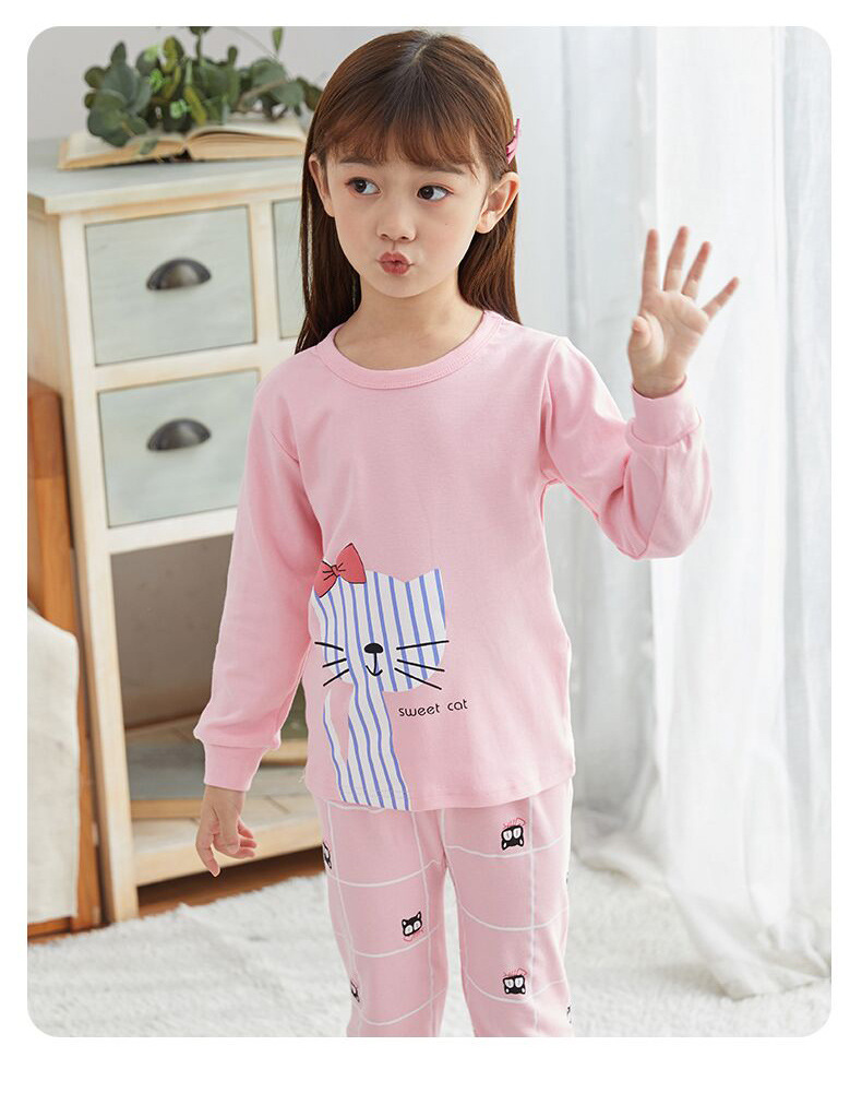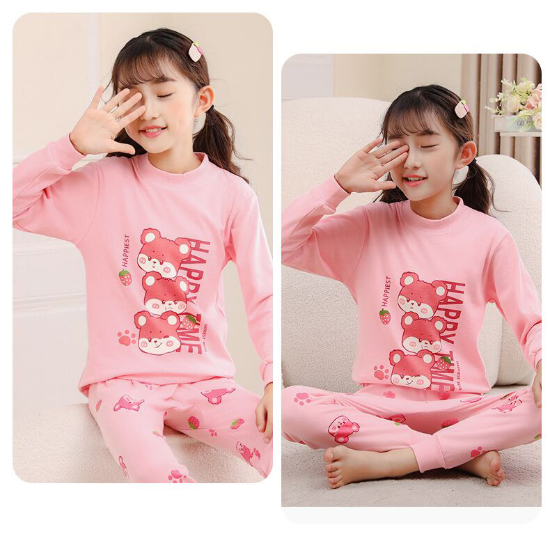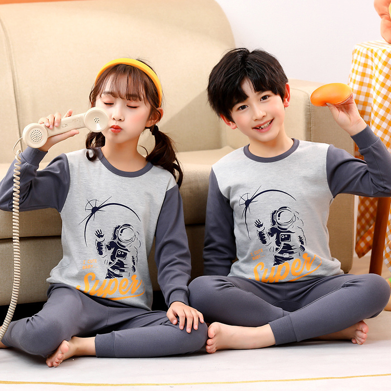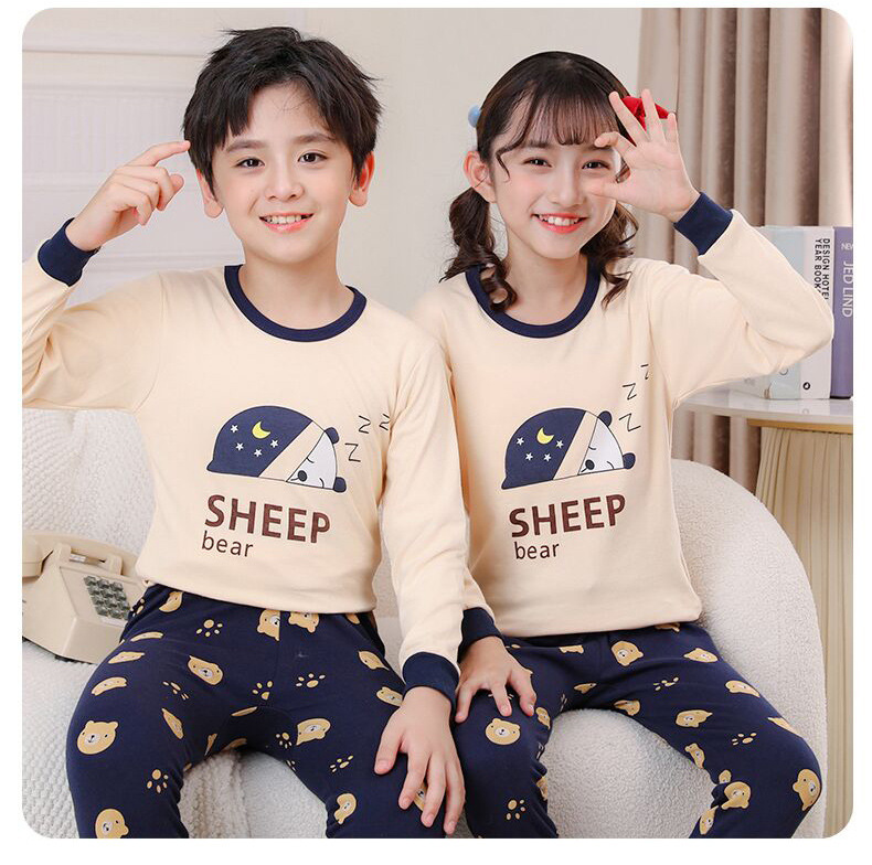 24 가을과 겨울 어린이 속옷 세트 순면 가을 옷과 바지 소년 소녀 면 홈 잠옷 중 큰 어린이 면화 스웨터