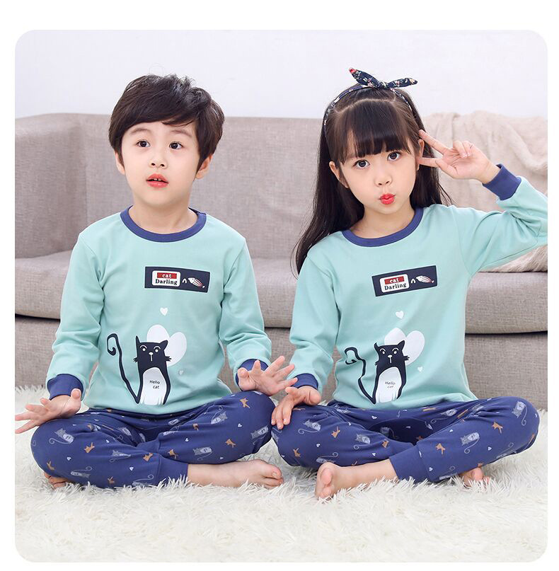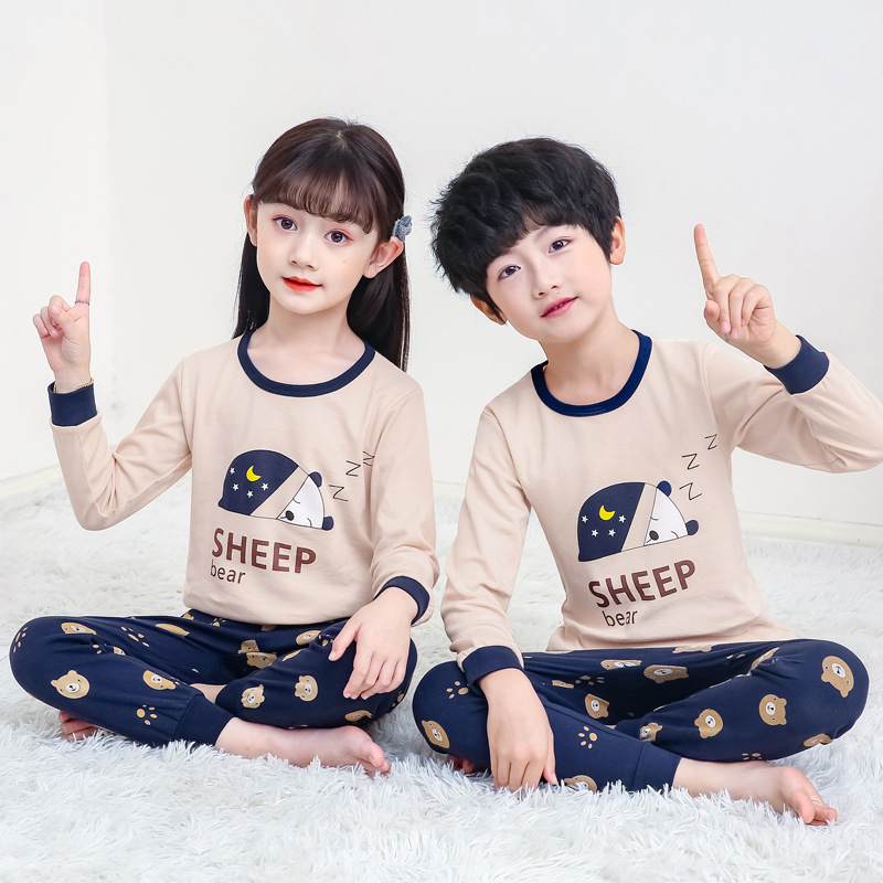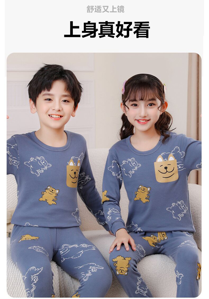 24 가을과 겨울 어린이 속옷 세트 순면 가을 옷과 바지 소년 소녀 면 홈 잠옷 중 큰 어린이 면화 스웨터스토어 가기
