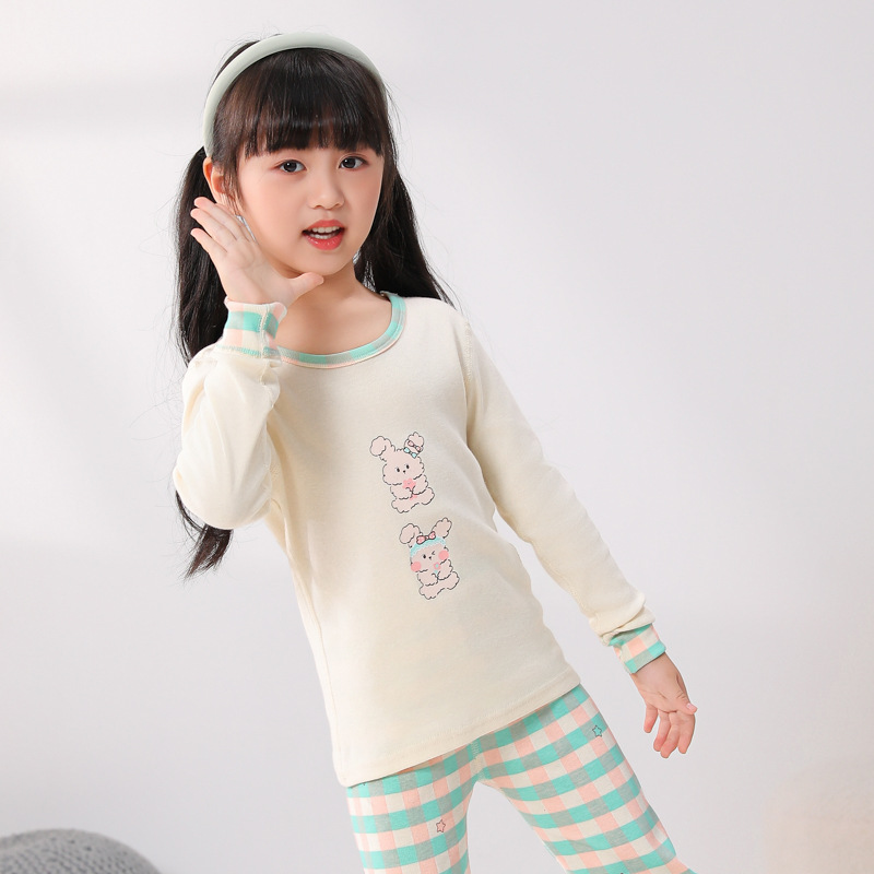 가을과 겨울 2024 소년 소녀를위한 어린이 속옷 세트 면화 스웨터베이스 셔츠 가을 옷과 바지 홈 옷스토어 가기