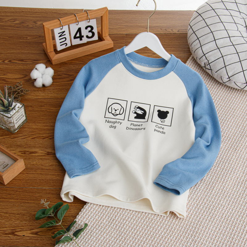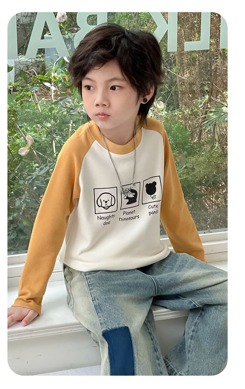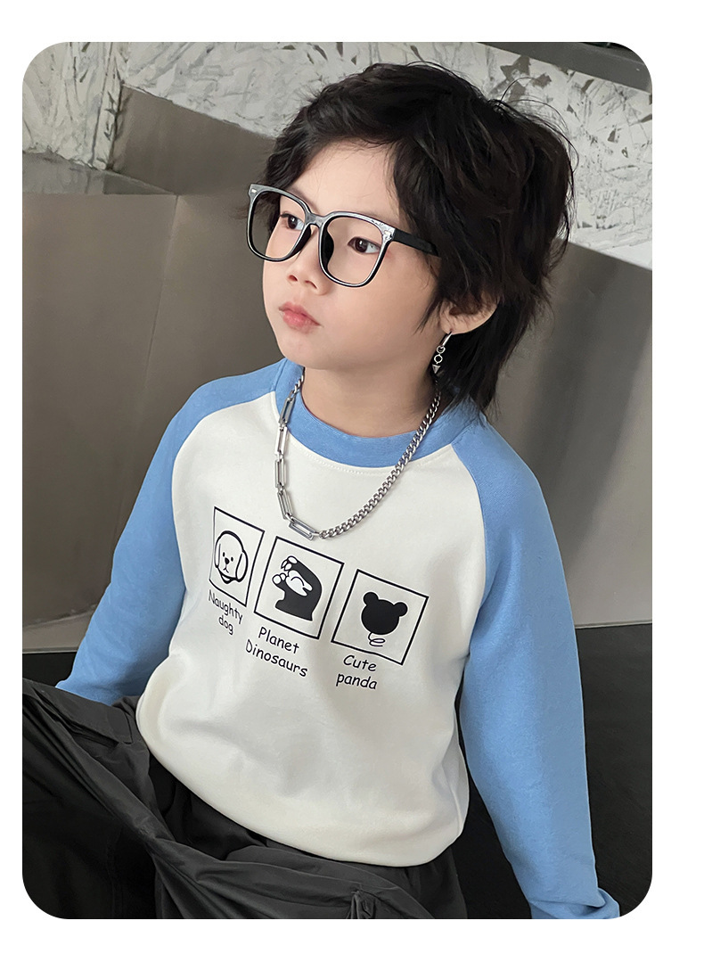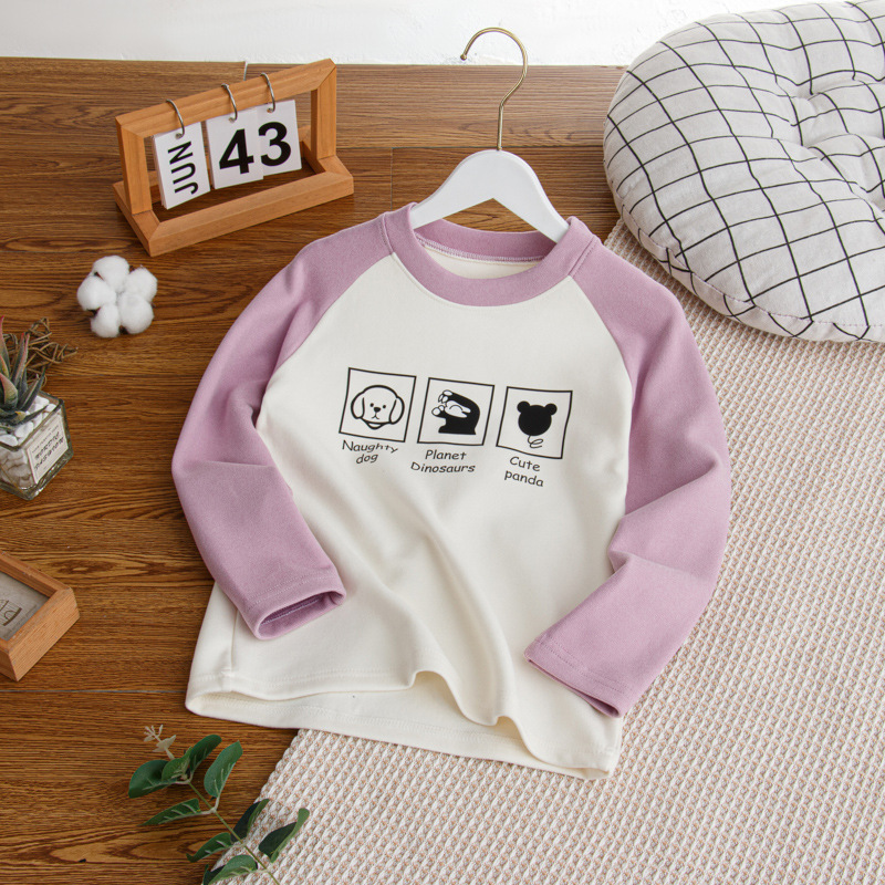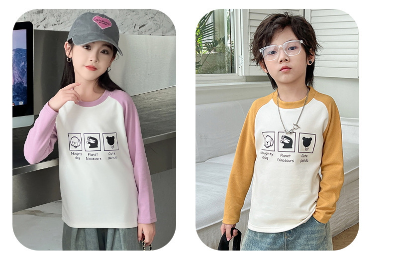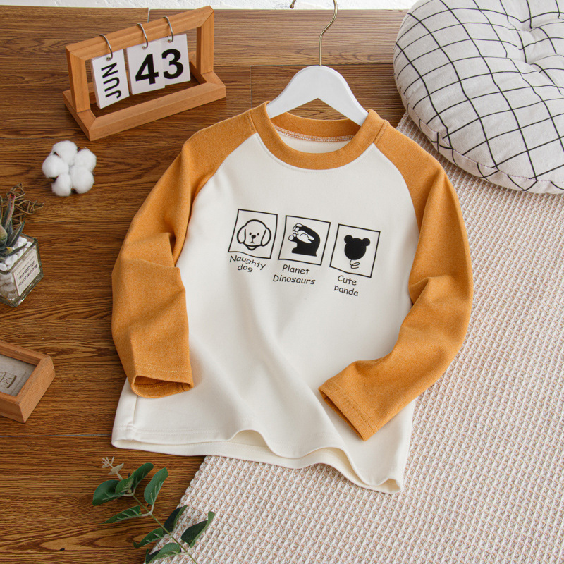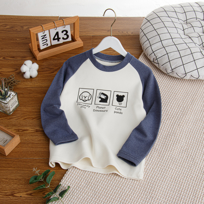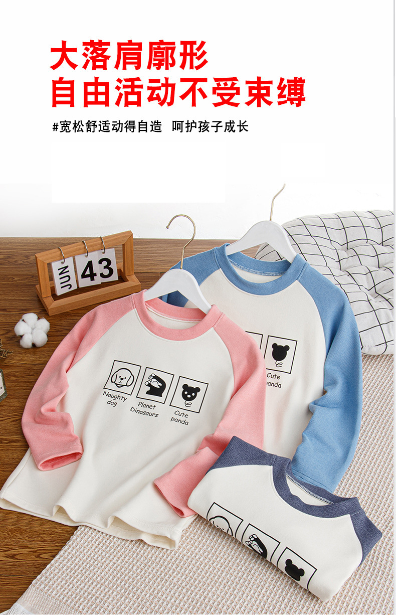 2024秋冬儿童姜暖绒打底衫拼接袖卫衣中大男女童保暖打底上衣长袖스토어 가기
