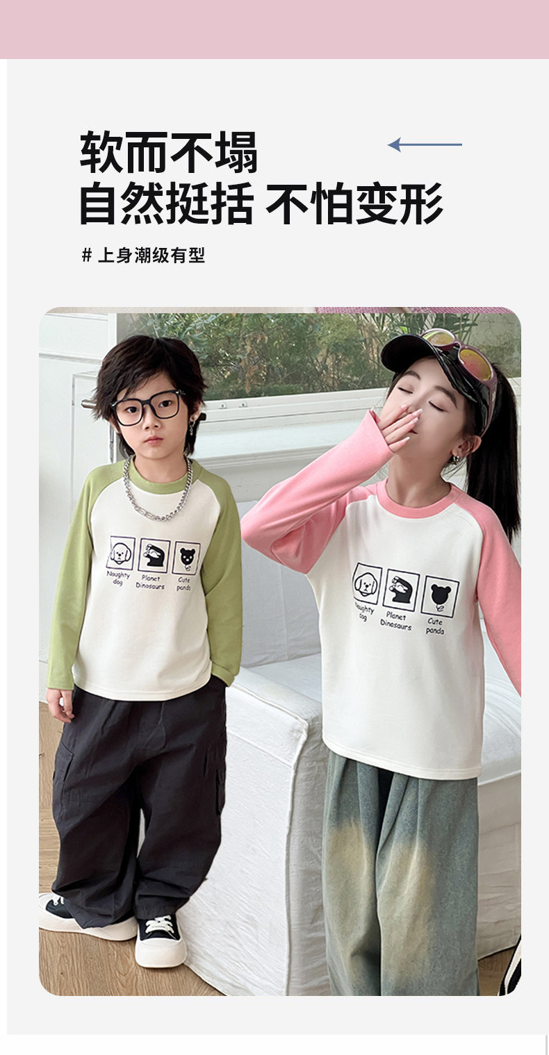 2024秋冬儿童姜暖绒打底衫拼接袖卫衣中大男女童保暖打底上衣长袖