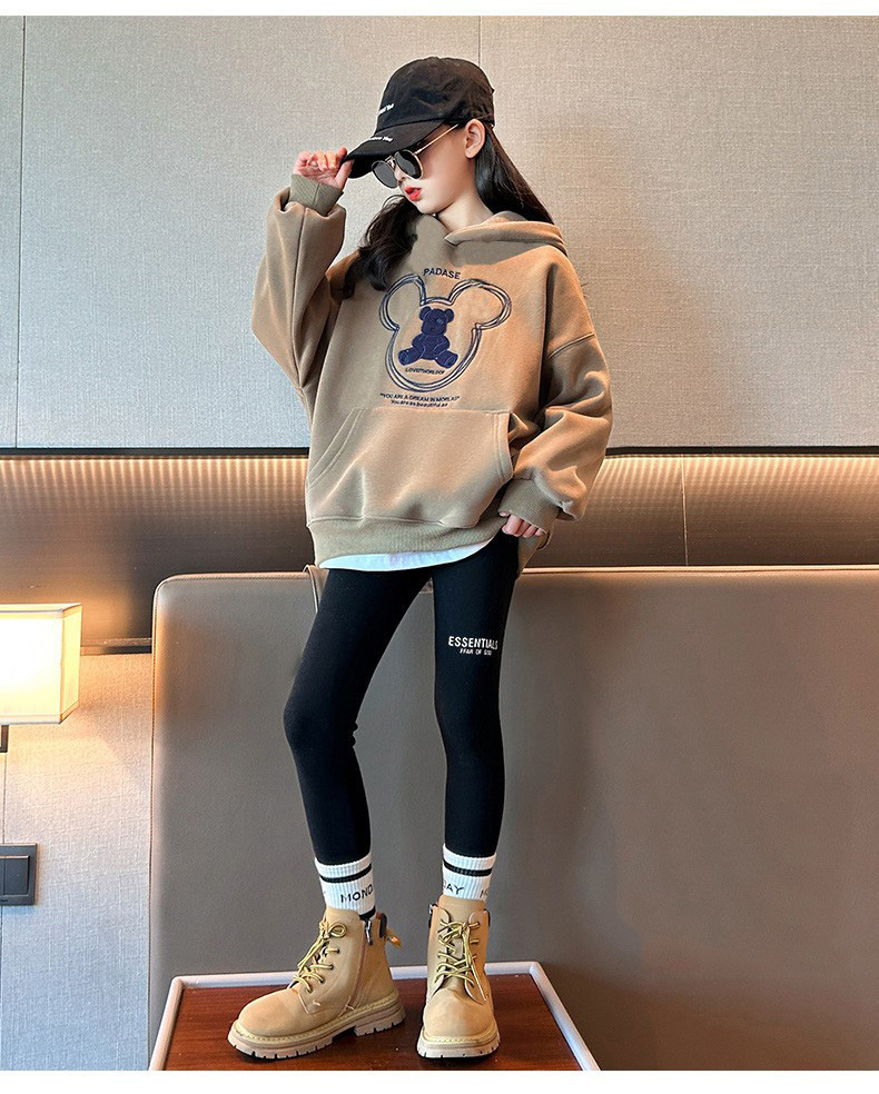 秋冬女童连帽卫衣套装小熊黑色鲨鱼裤两件套中大童潮范宽松批发스토어 가기