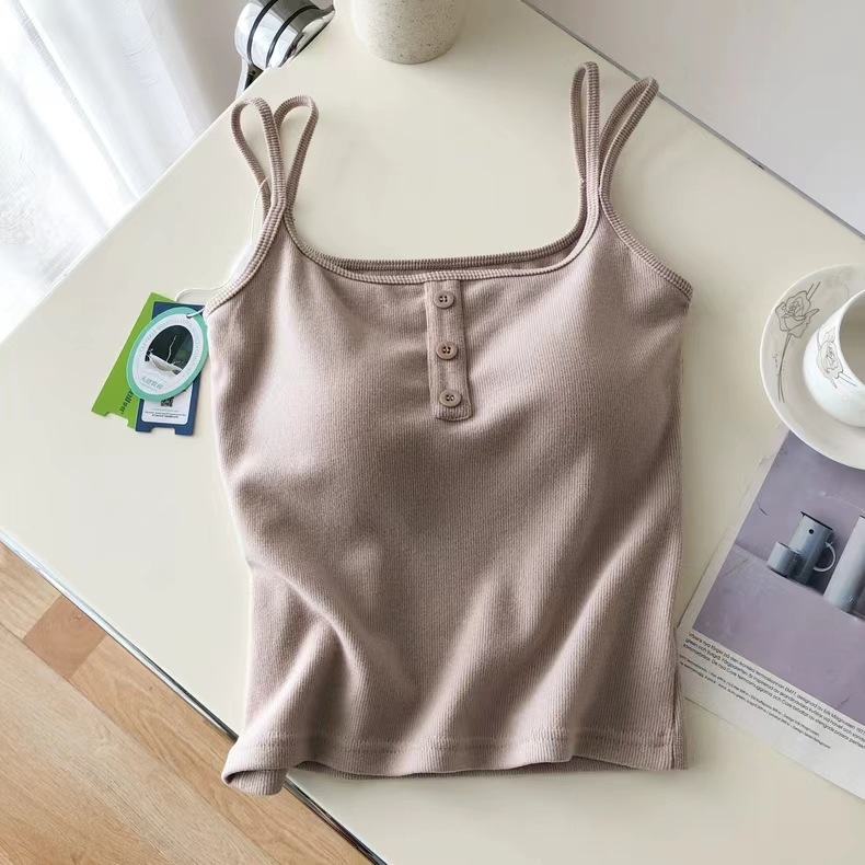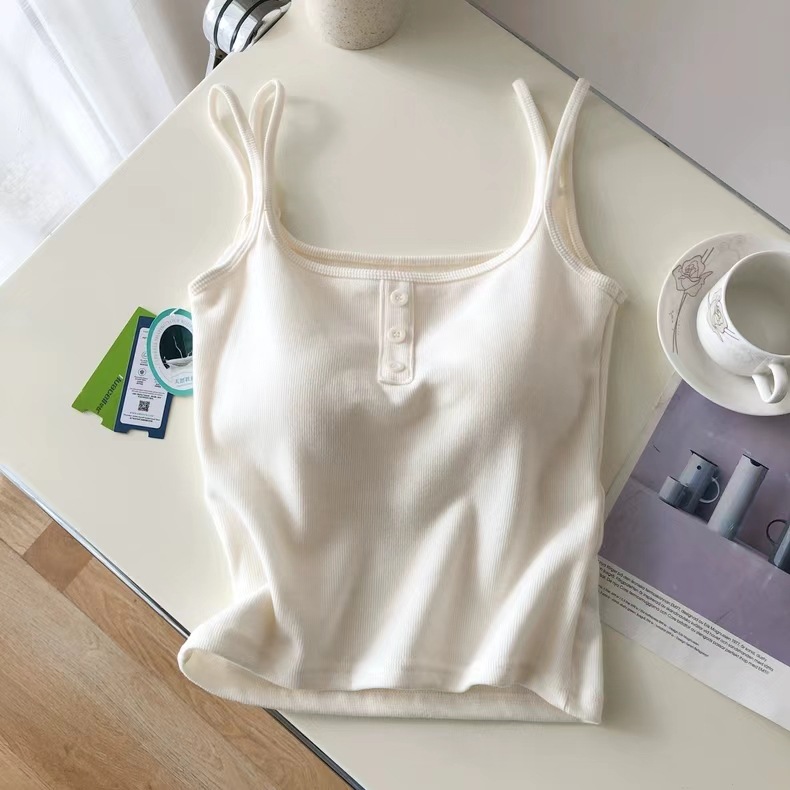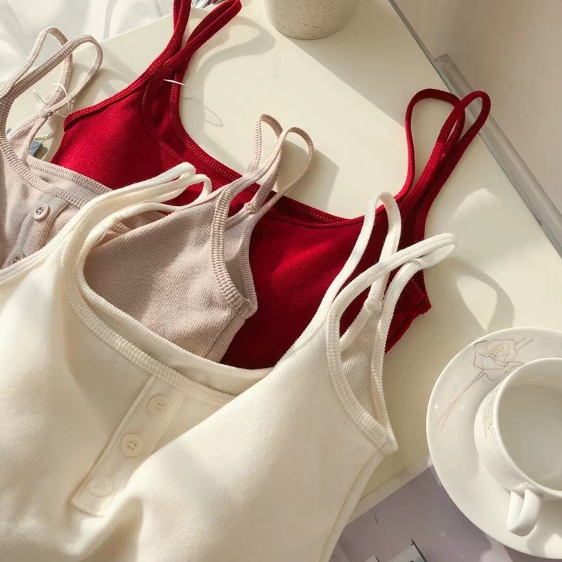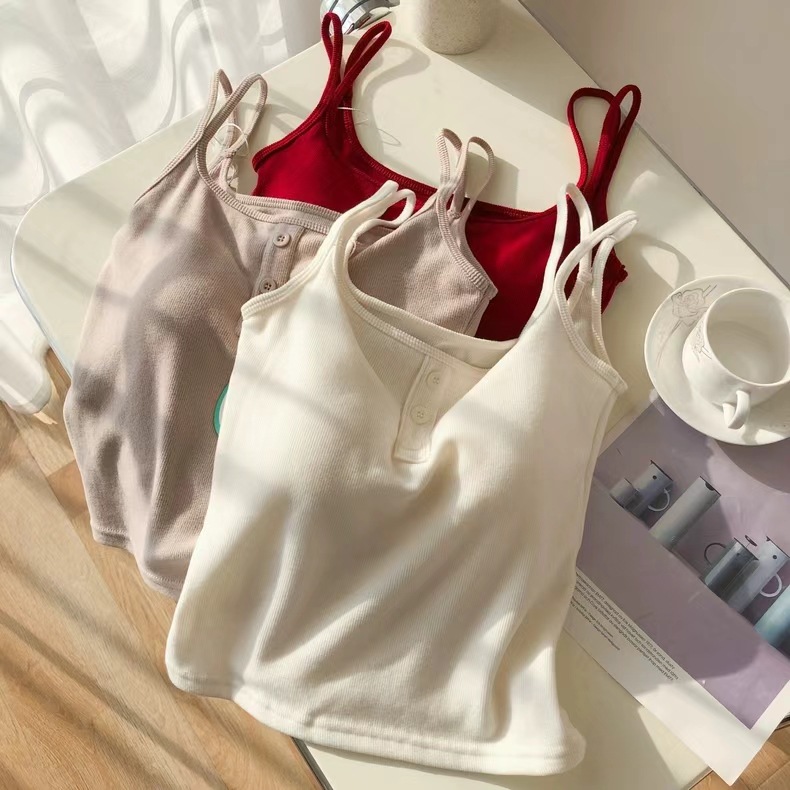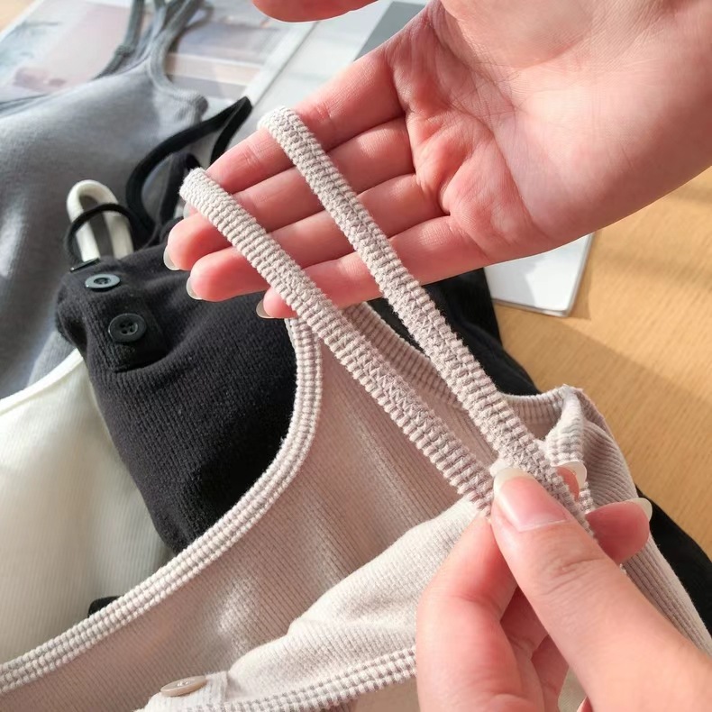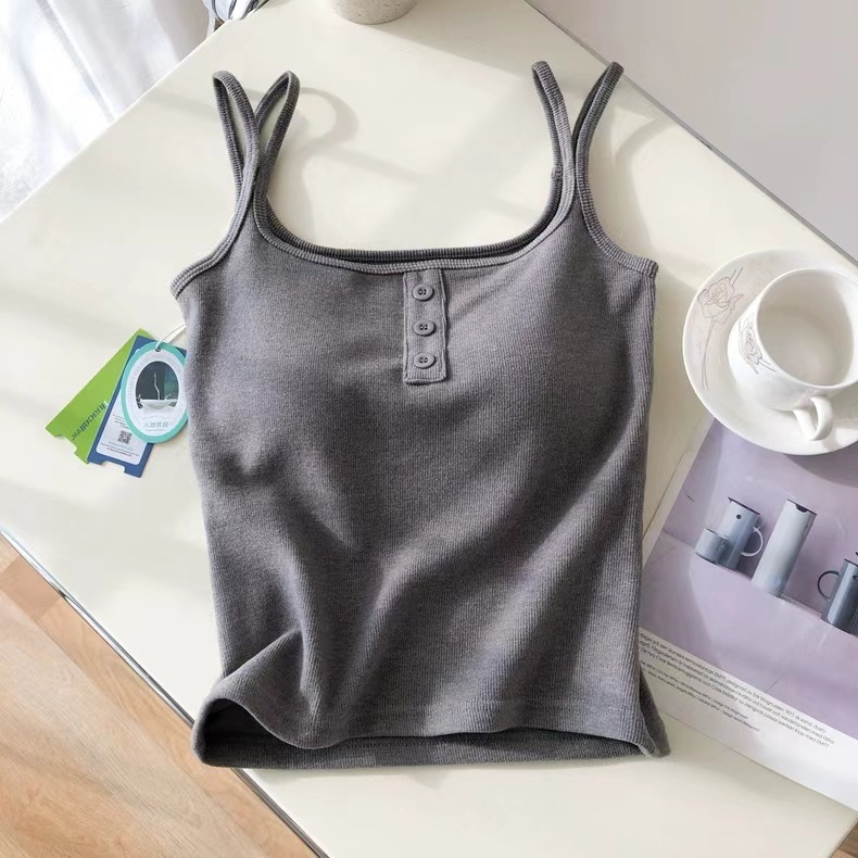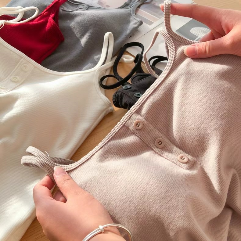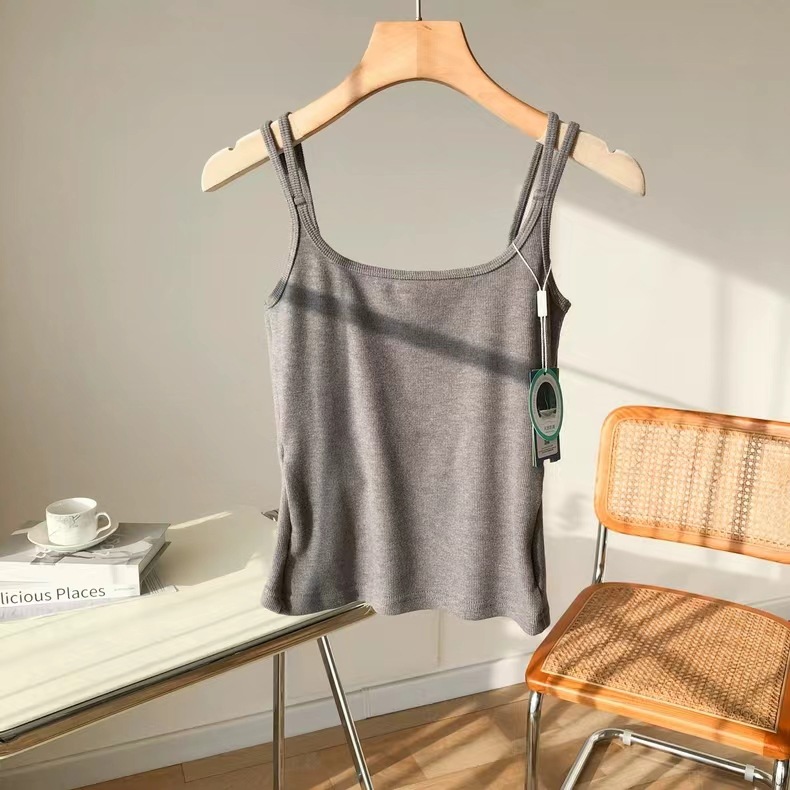 가을과 겨울 샌딩 솔리드 컬러 스퀘어 칼라 더블 숄더 스트랩 작은 슬링 슬림 핏 슬림 조끼 여성 통합 가슴 패드 따뜻한베이스 셔츠스토어 가기