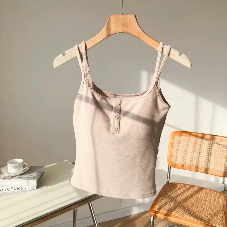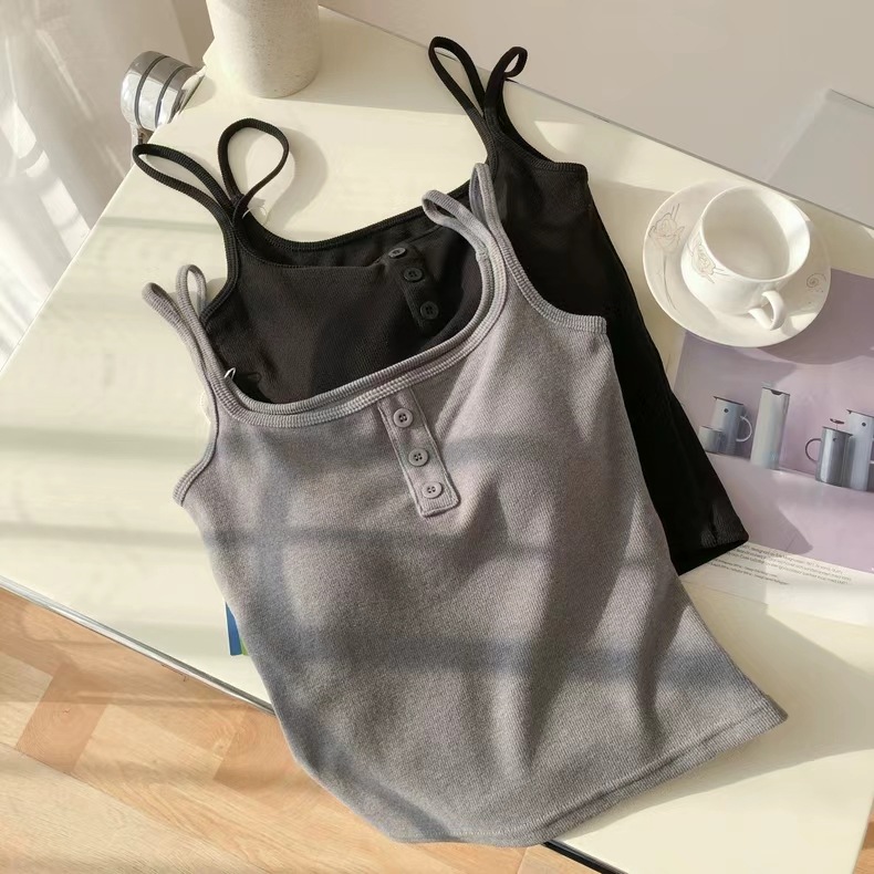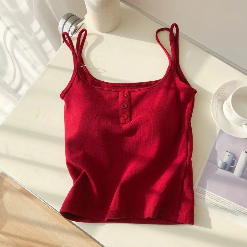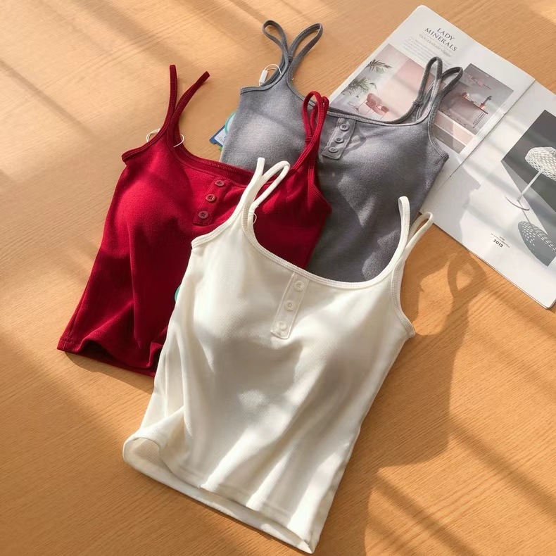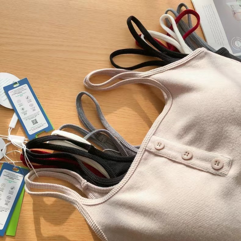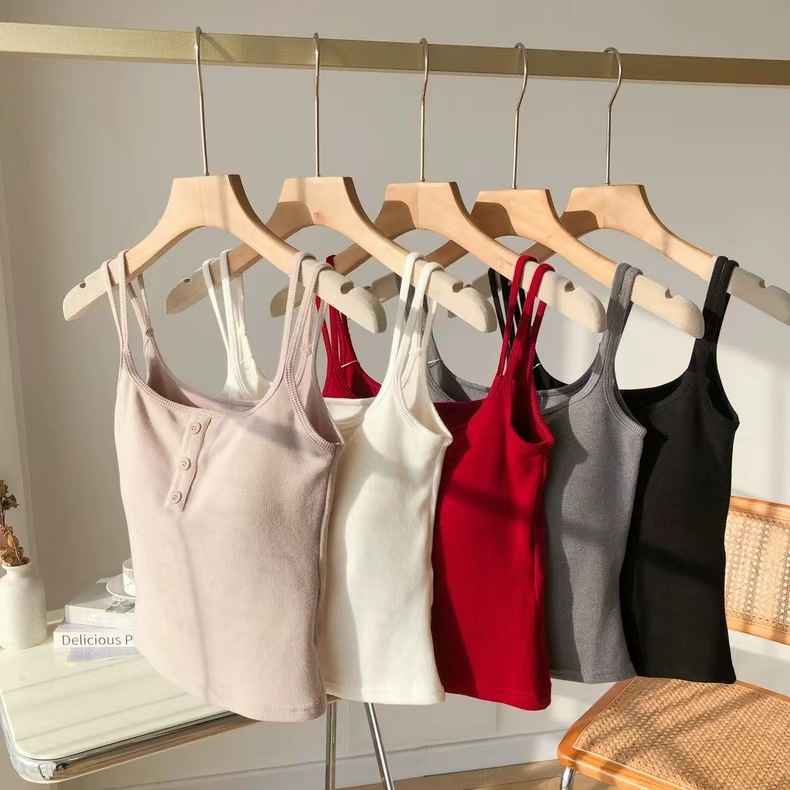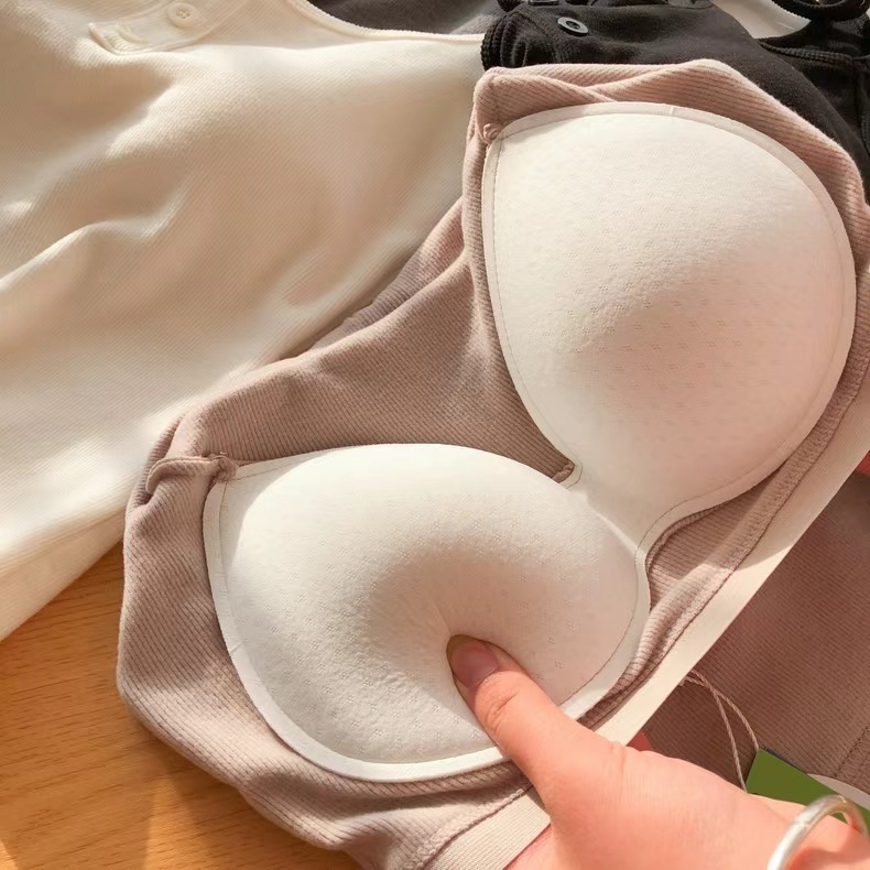 가을과 겨울 샌딩 솔리드 컬러 스퀘어 칼라 더블 숄더 스트랩 작은 슬링 슬림 핏 슬림 조끼 여성 통합 가슴 패드 따뜻한베이스 셔츠스토어 가기
