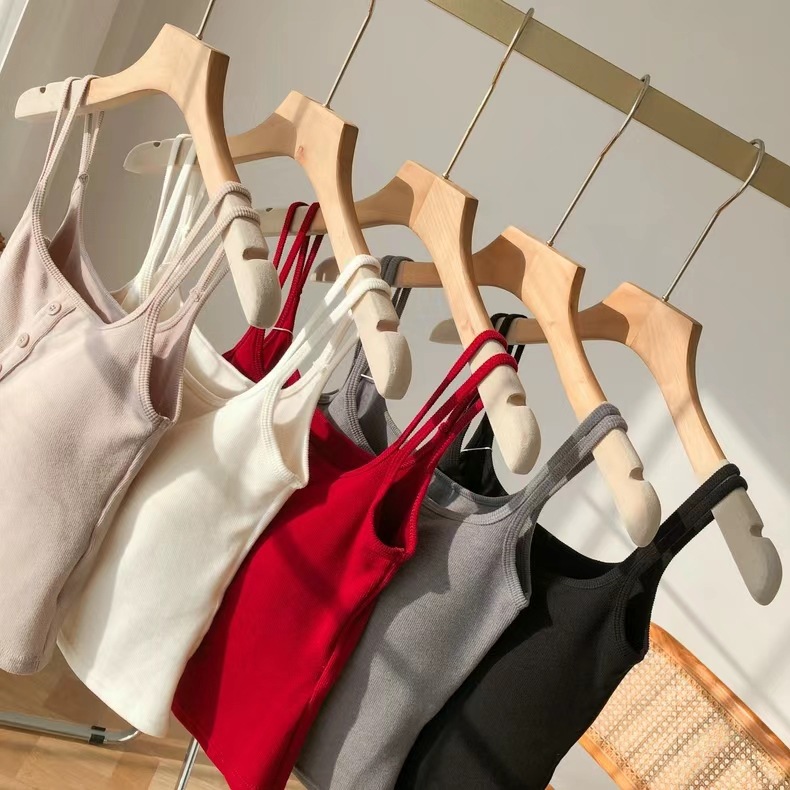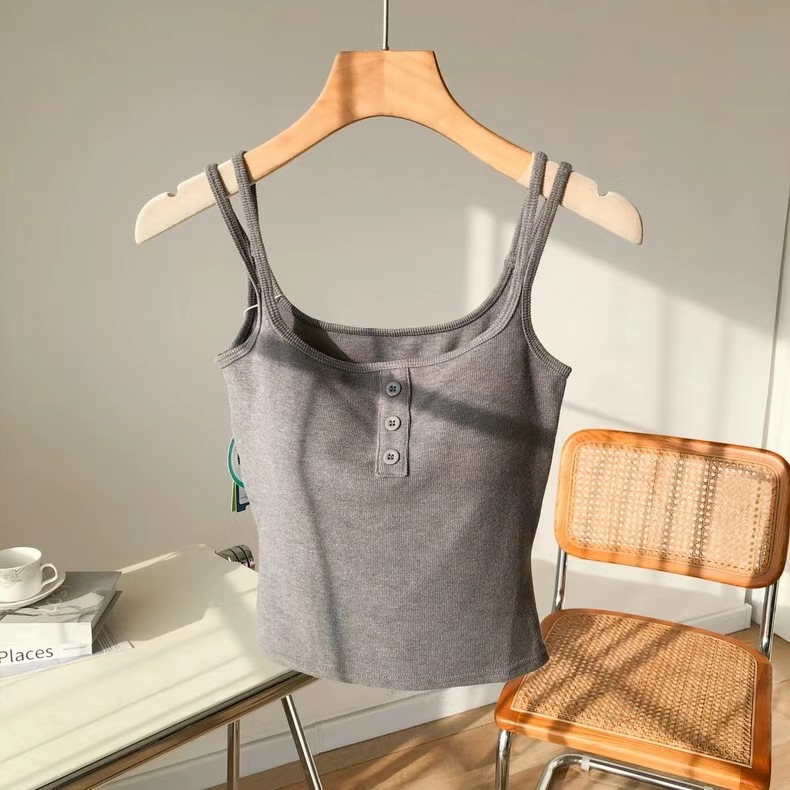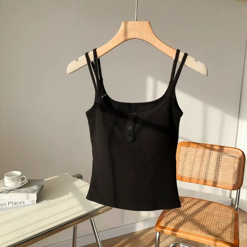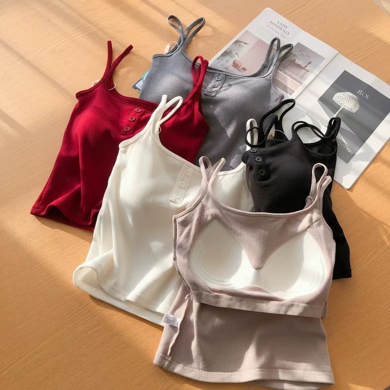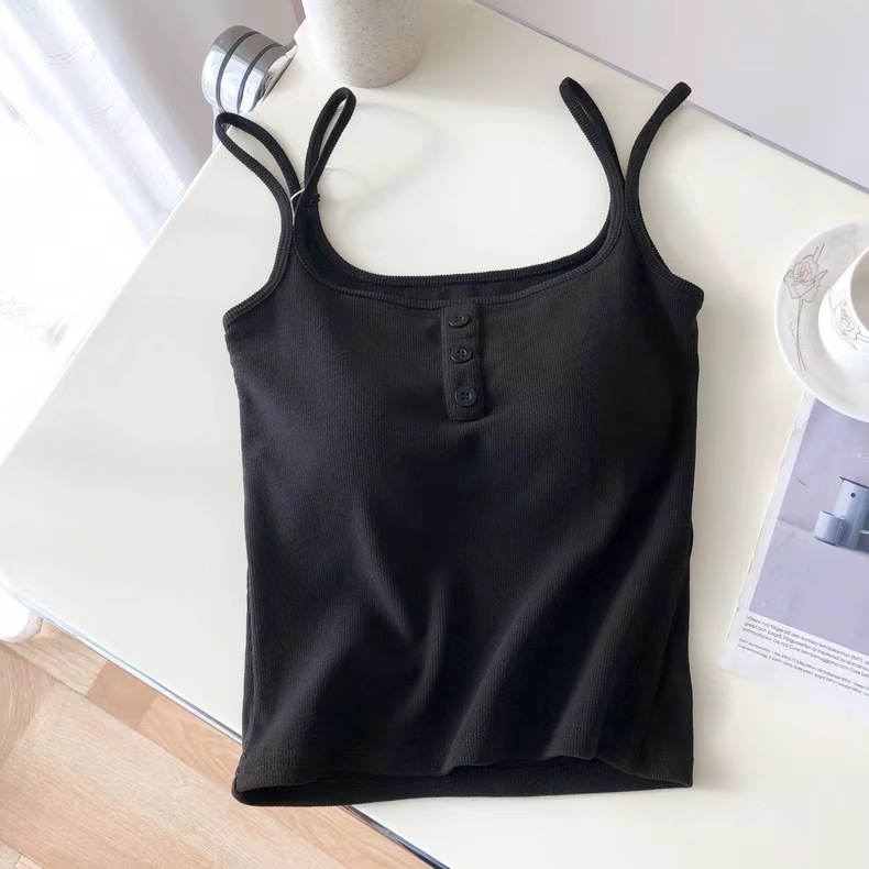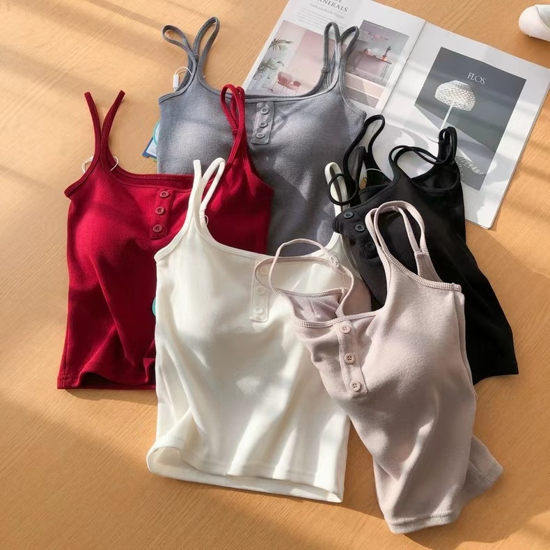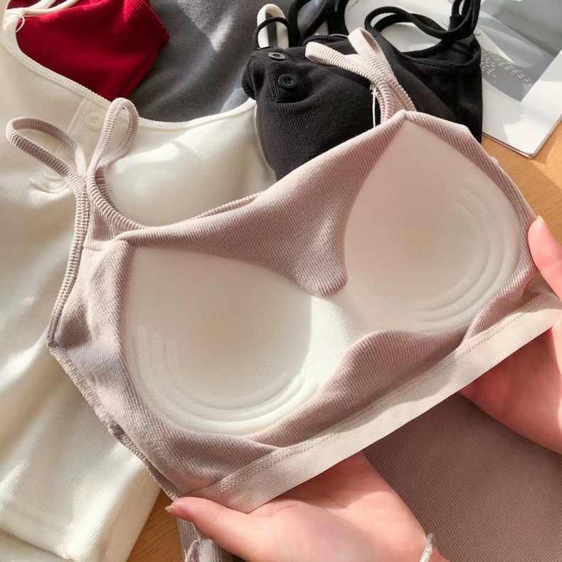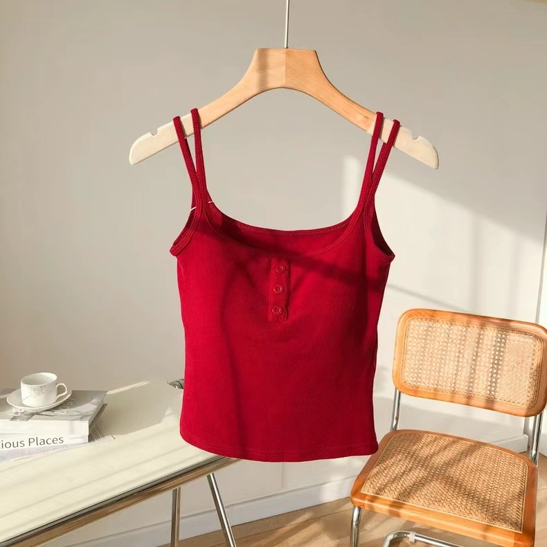가을과 겨울 샌딩 솔리드 컬러 스퀘어 칼라 더블 숄더 스트랩 작은 슬링 슬림 핏 슬림 조끼 여성 통합 가슴 패드 따뜻한베이스 셔츠스토어 가기