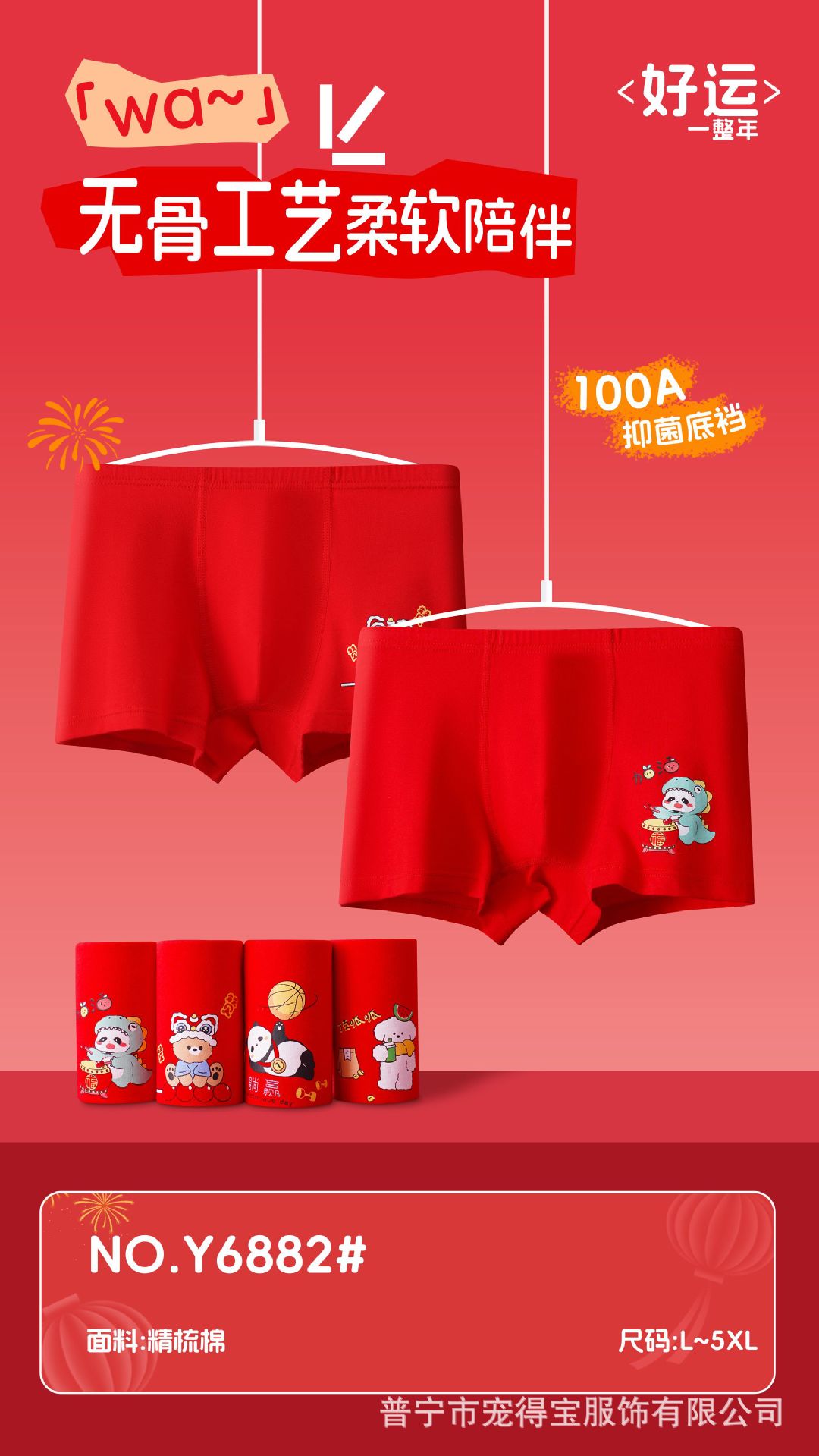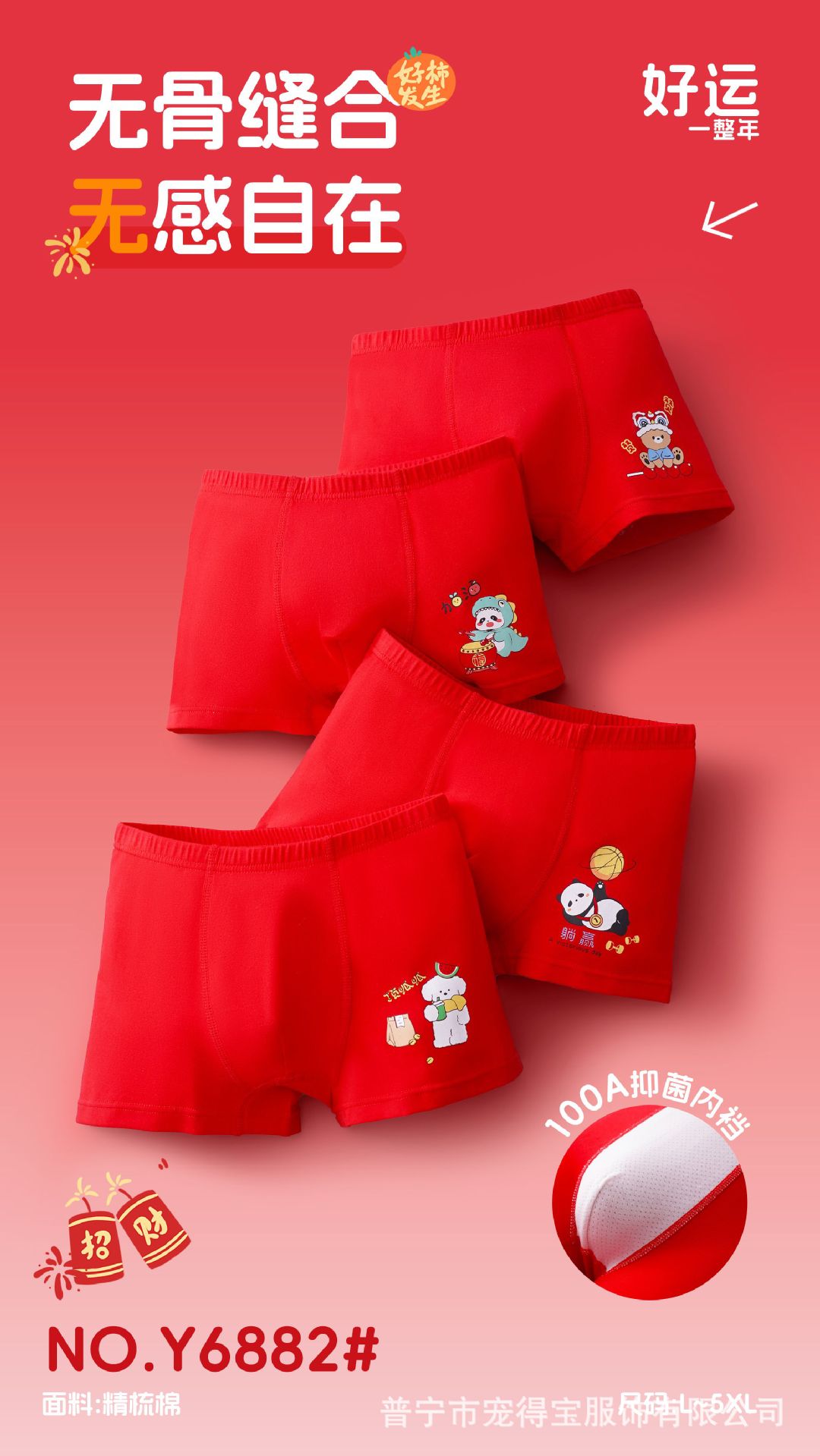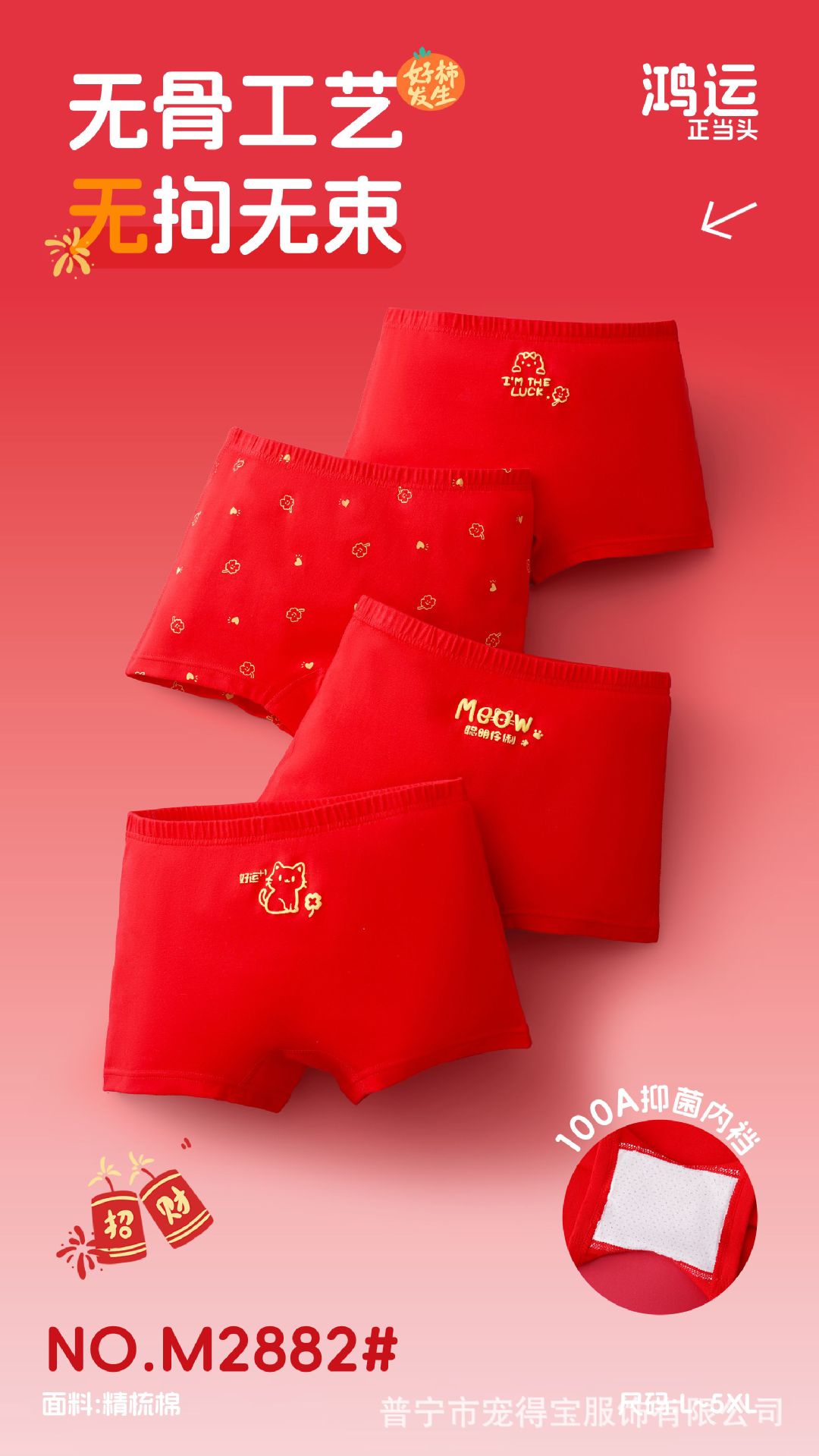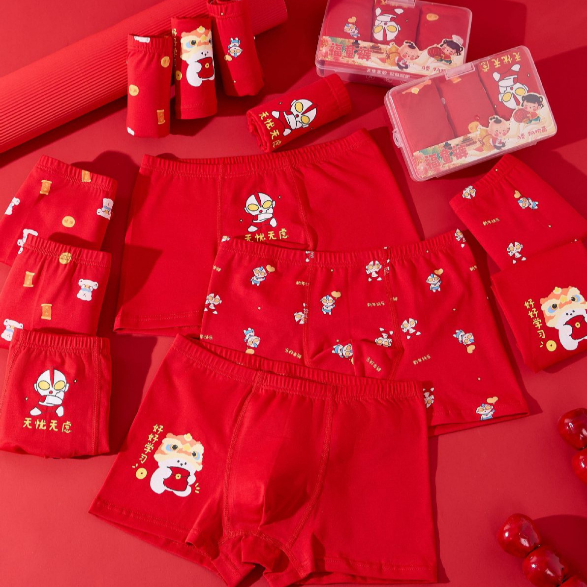2026년 어린이용 빨간색 속옷, 여아 및 남아용 순면 반바지, 중대형 어린이용 여아 및 남아용 사각팬티스토어 가기