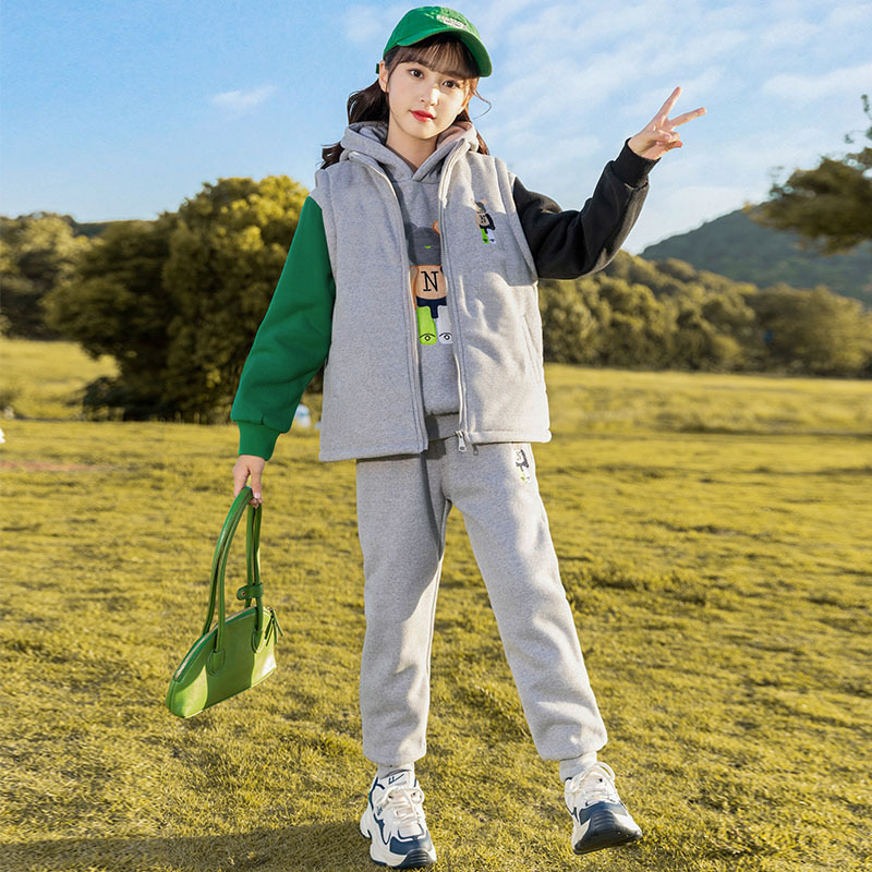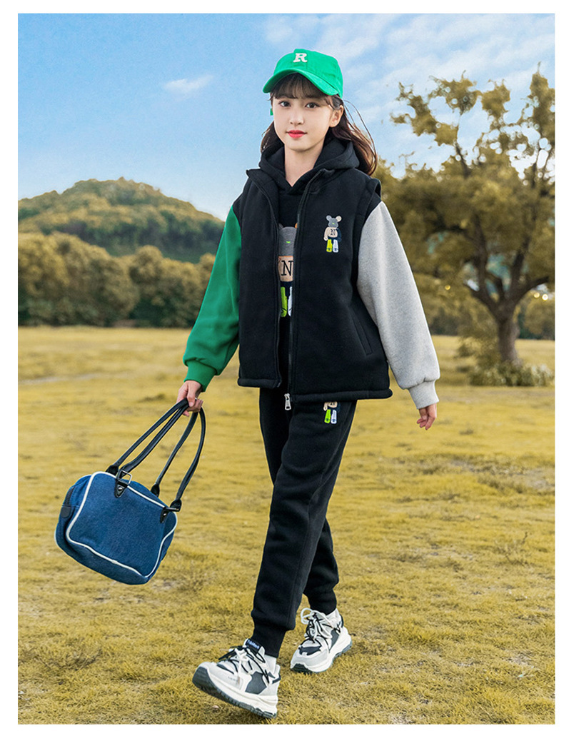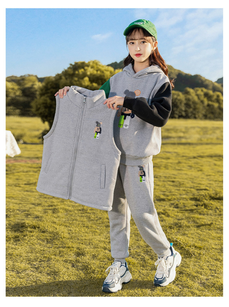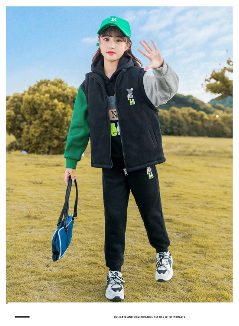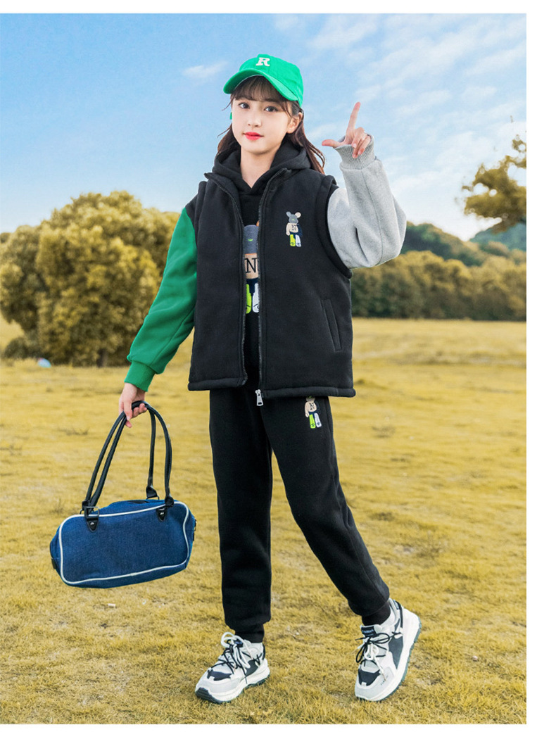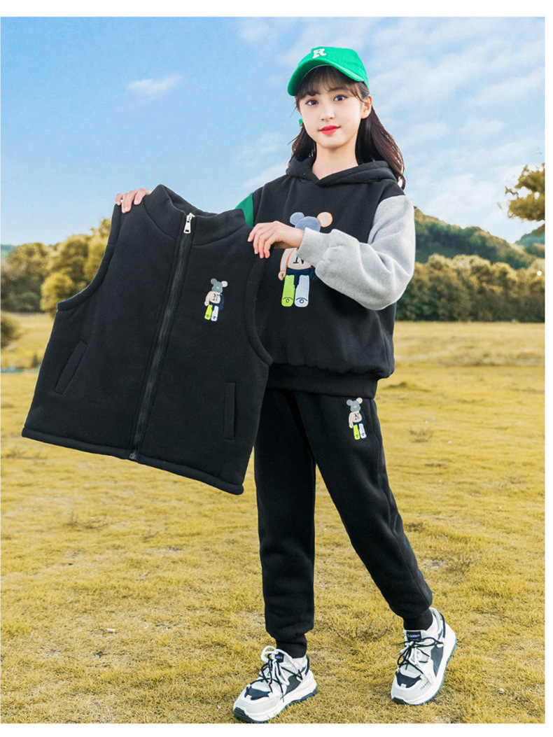 秋冬儿童连帽卫衣套装卡通加绒保暖立领拉链开衫马甲卫裤三件套스토어 가기