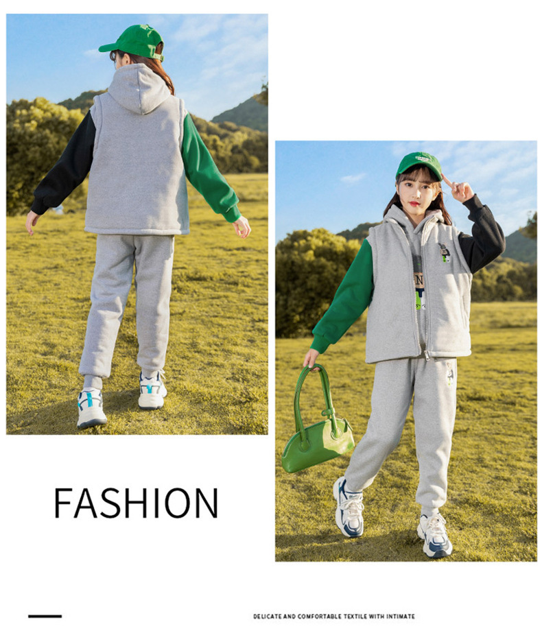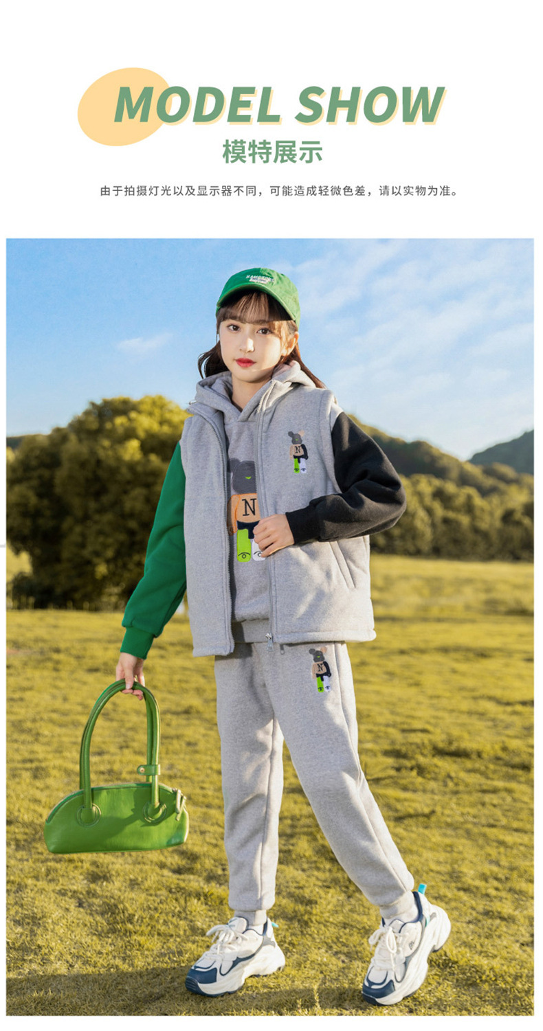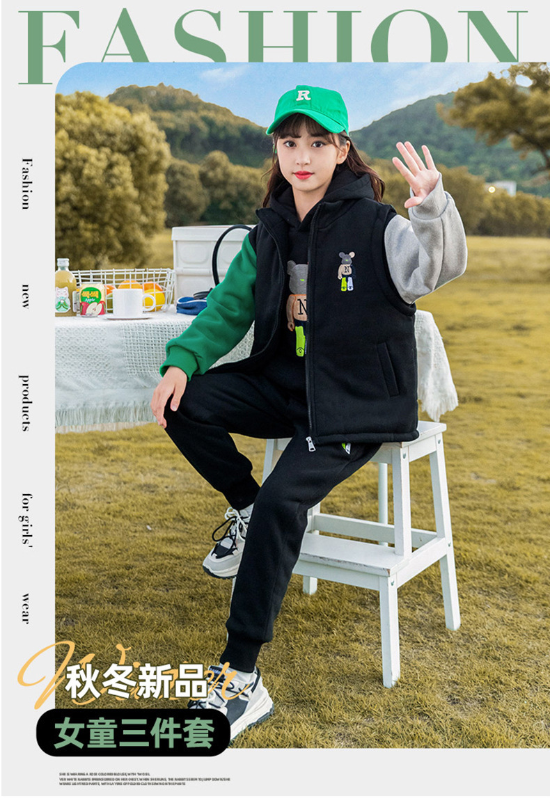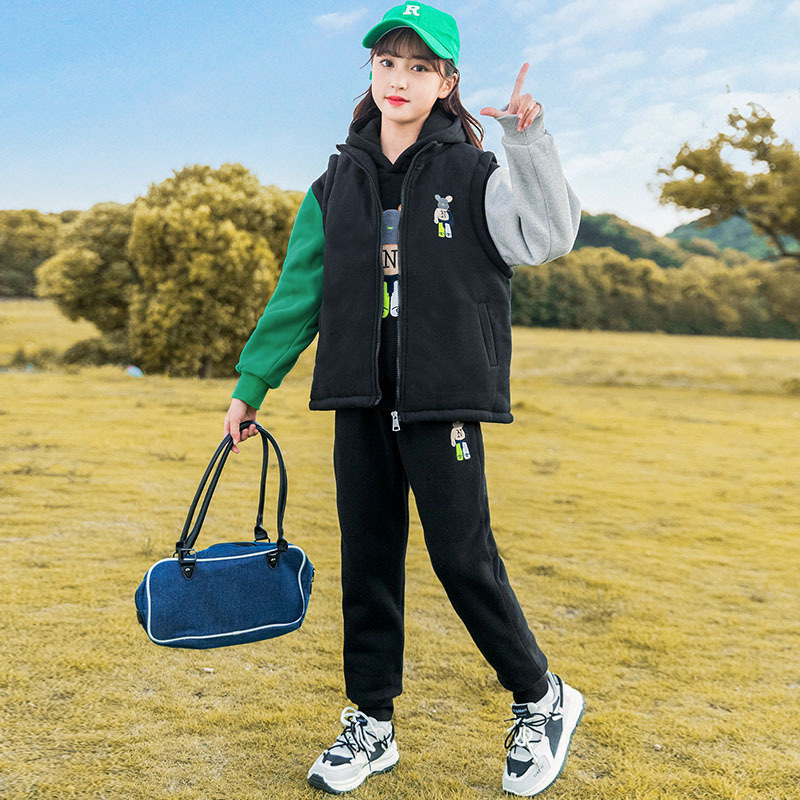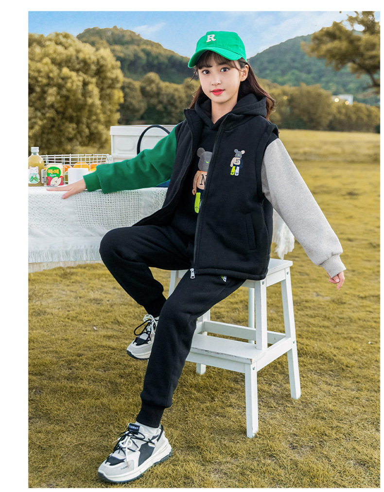 秋冬儿童连帽卫衣套装卡通加绒保暖立领拉链开衫马甲卫裤三件套스토어 가기