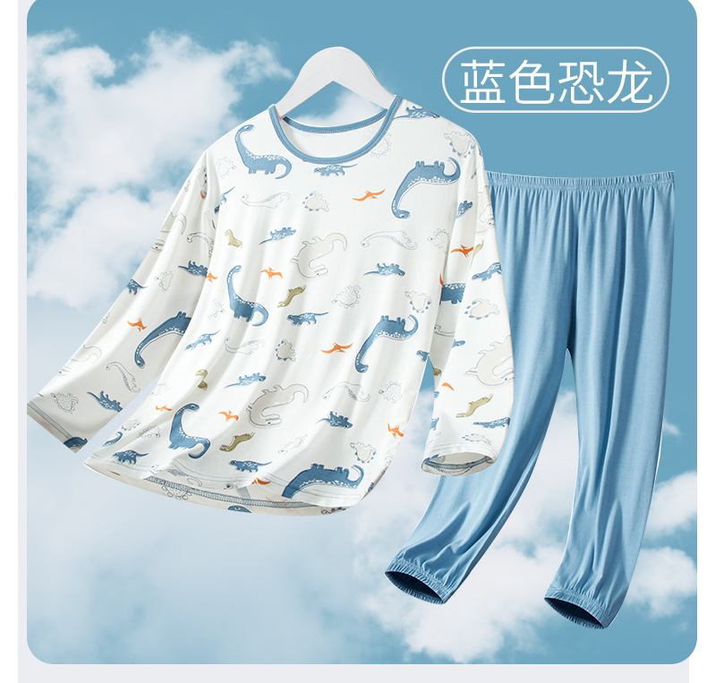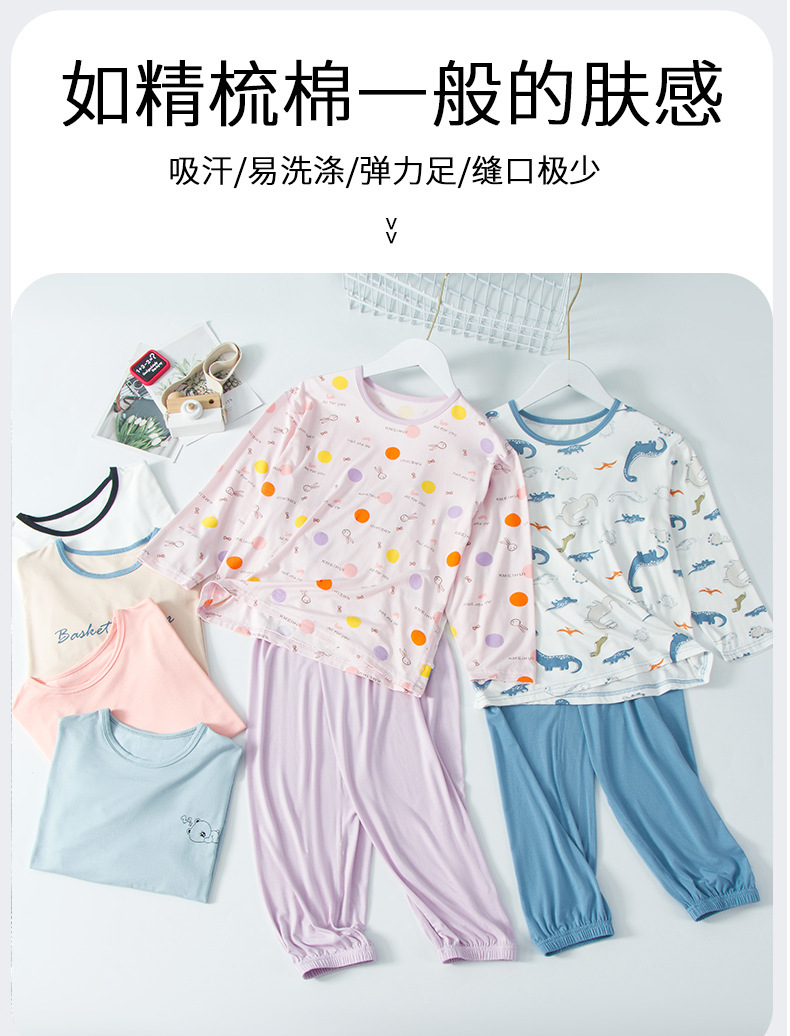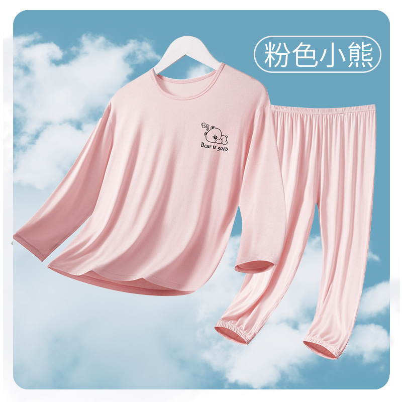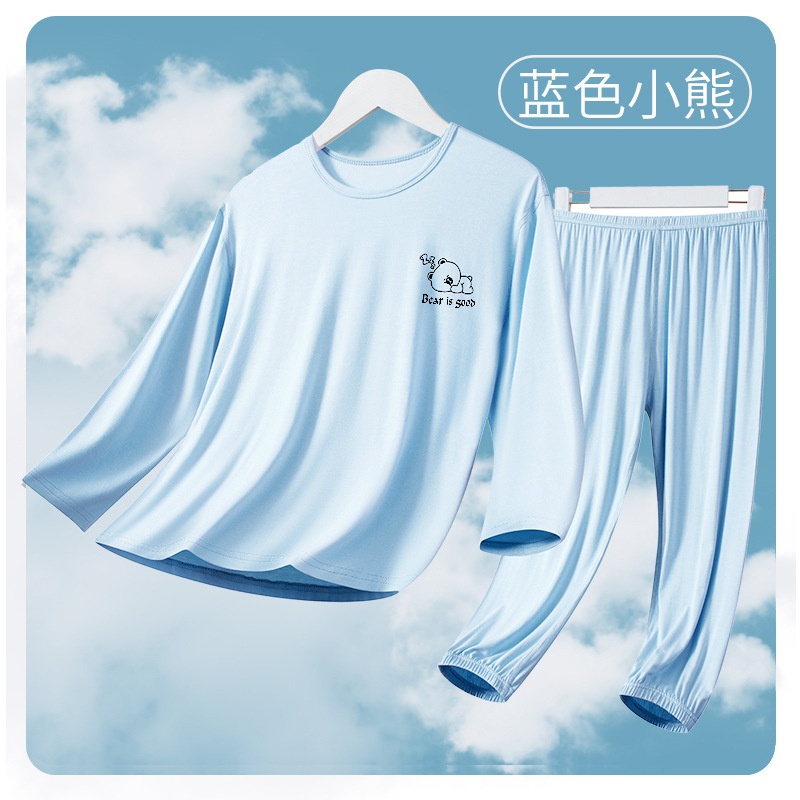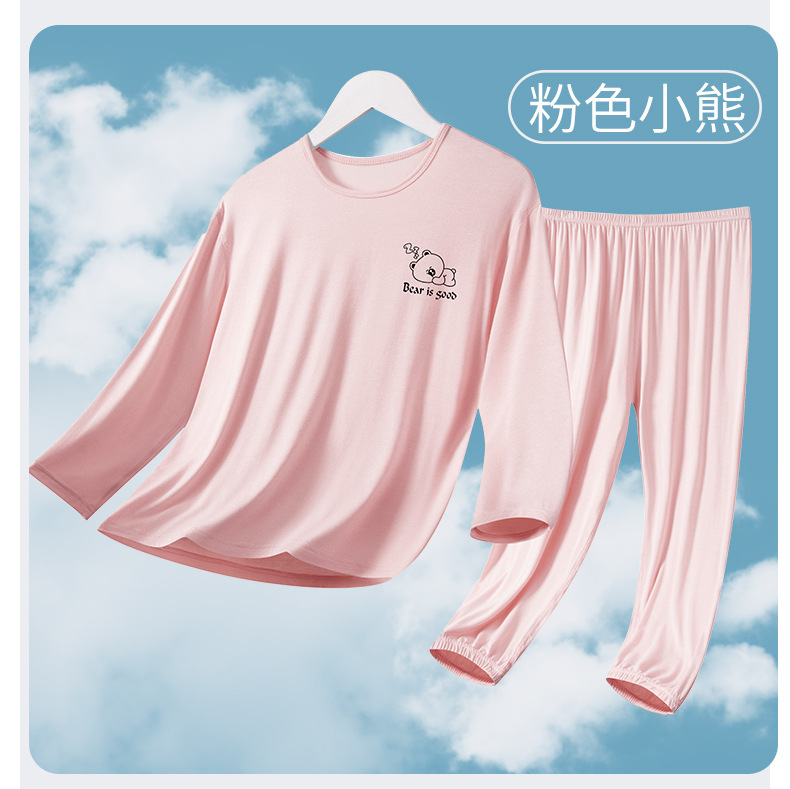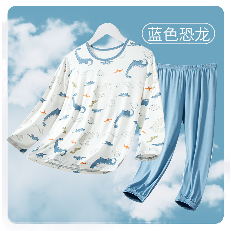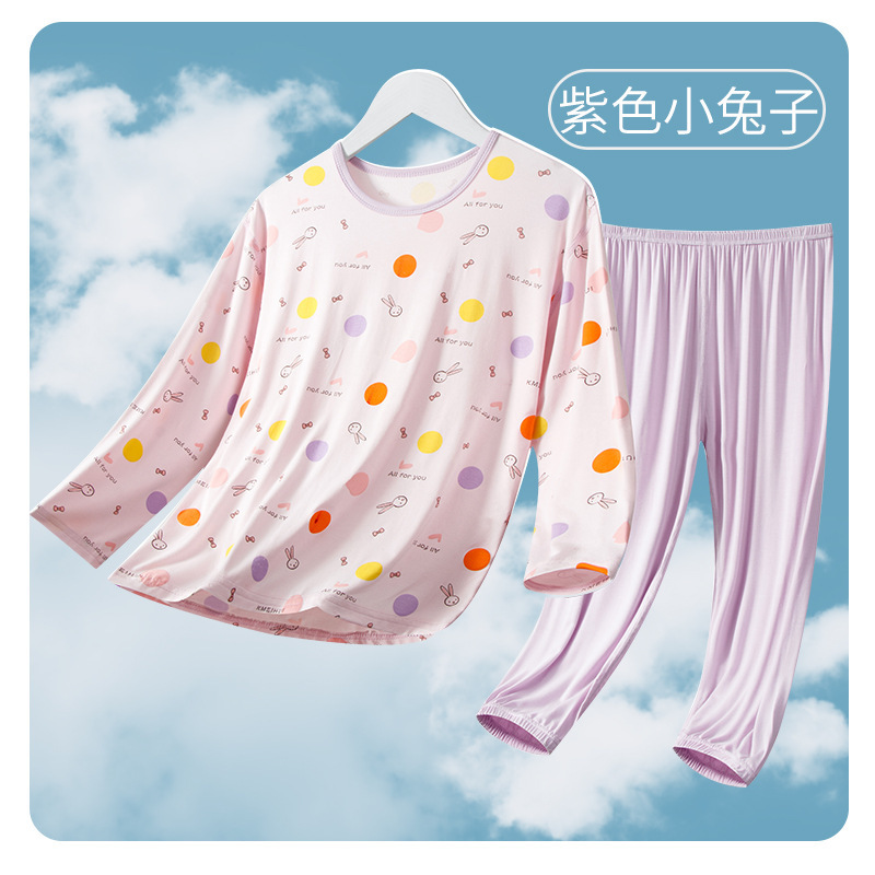 여름 부모-아이 세트 모달 긴팔 바지 큰 아이 만화 인쇄 캐주얼 홈 옷 에어컨 옷 잠옷