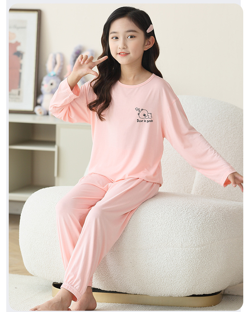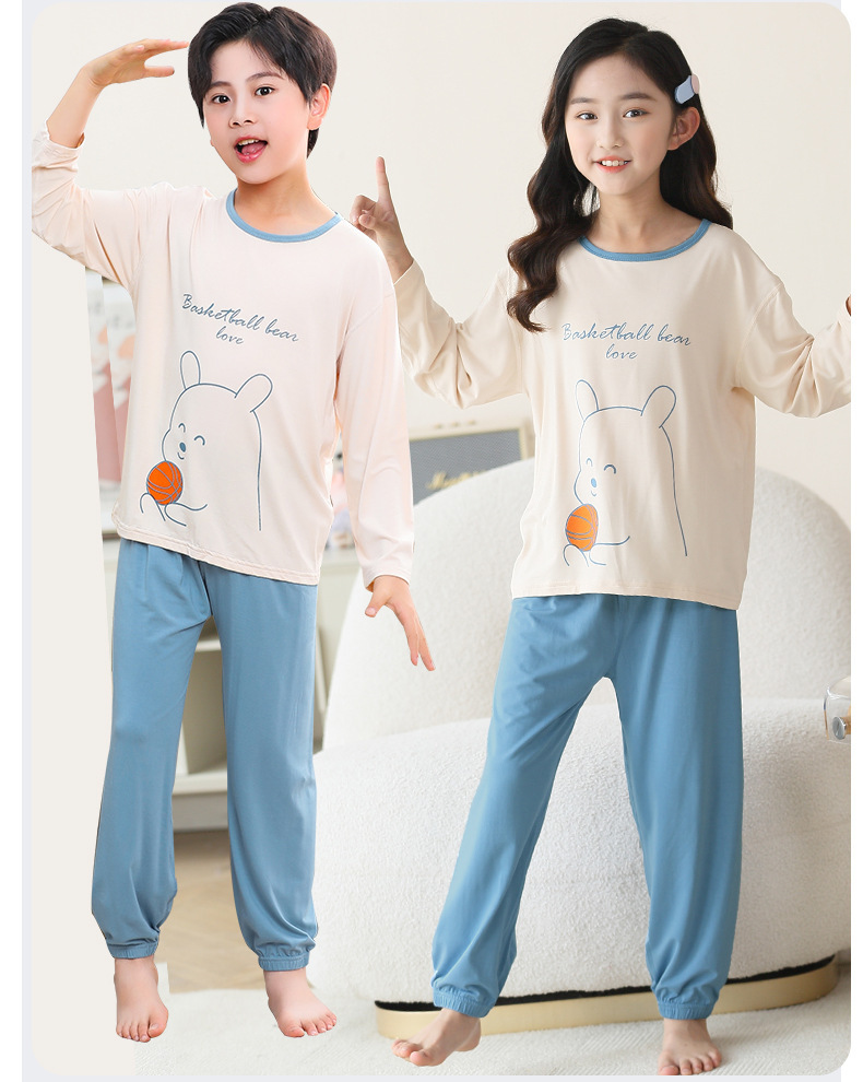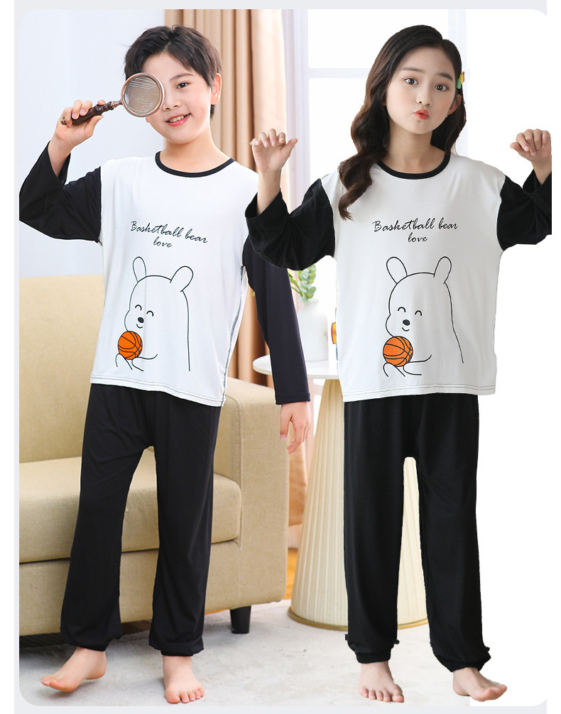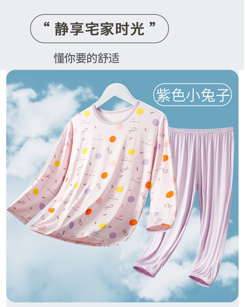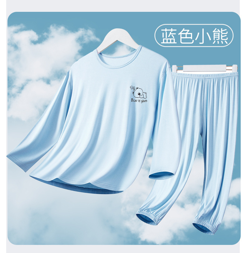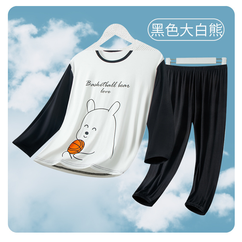 여름 부모-아이 세트 모달 긴팔 바지 큰 아이 만화 인쇄 캐주얼 홈 옷 에어컨 옷 잠옷