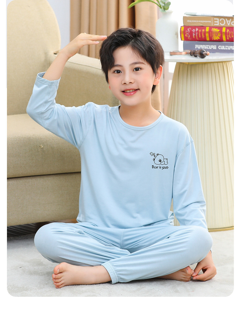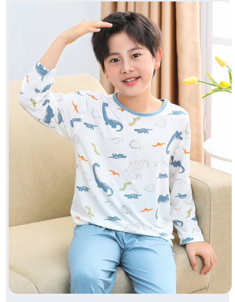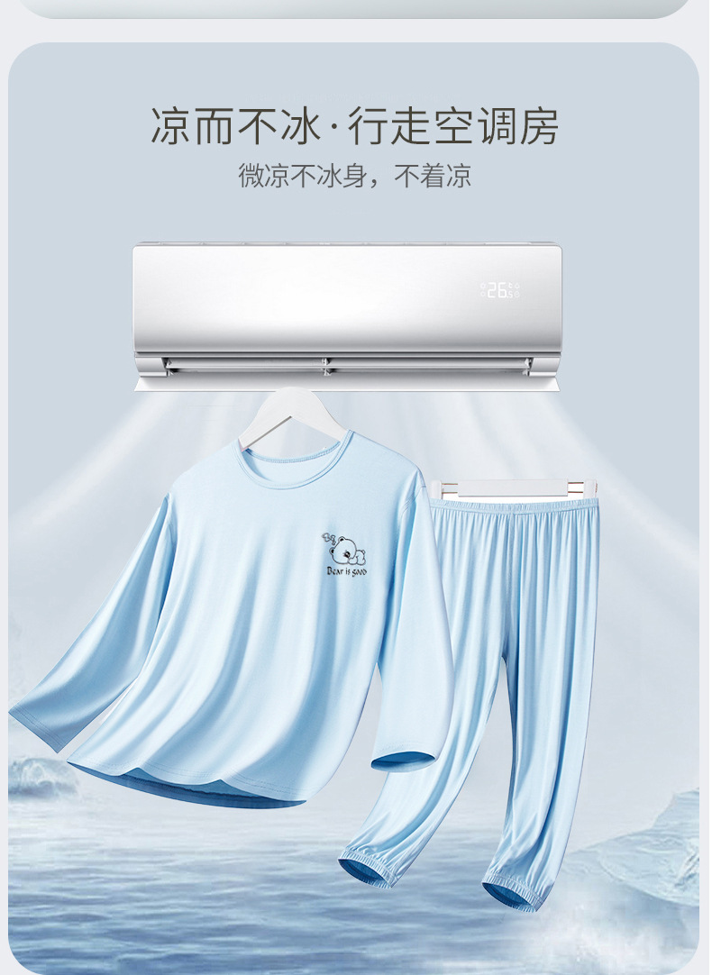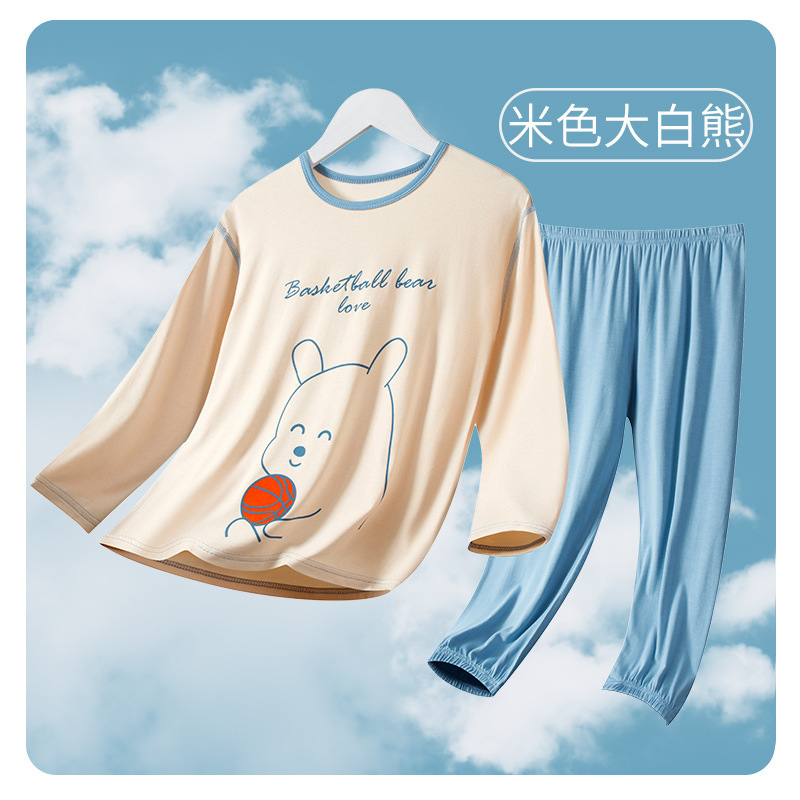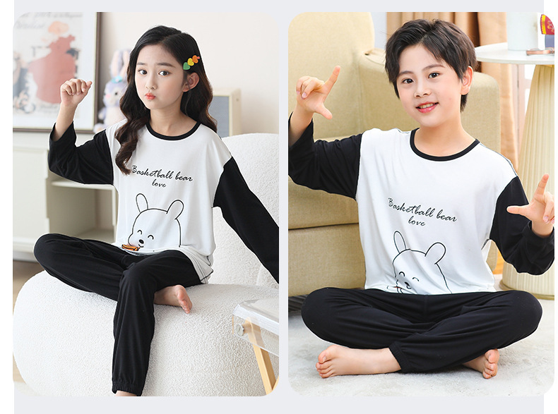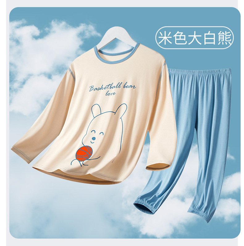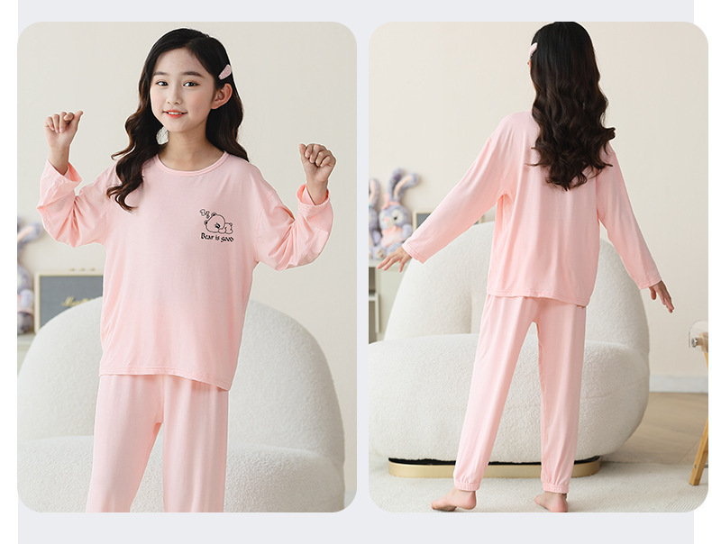 여름 부모-아이 세트 모달 긴팔 바지 큰 아이 만화 인쇄 캐주얼 홈 옷 에어컨 옷 잠옷