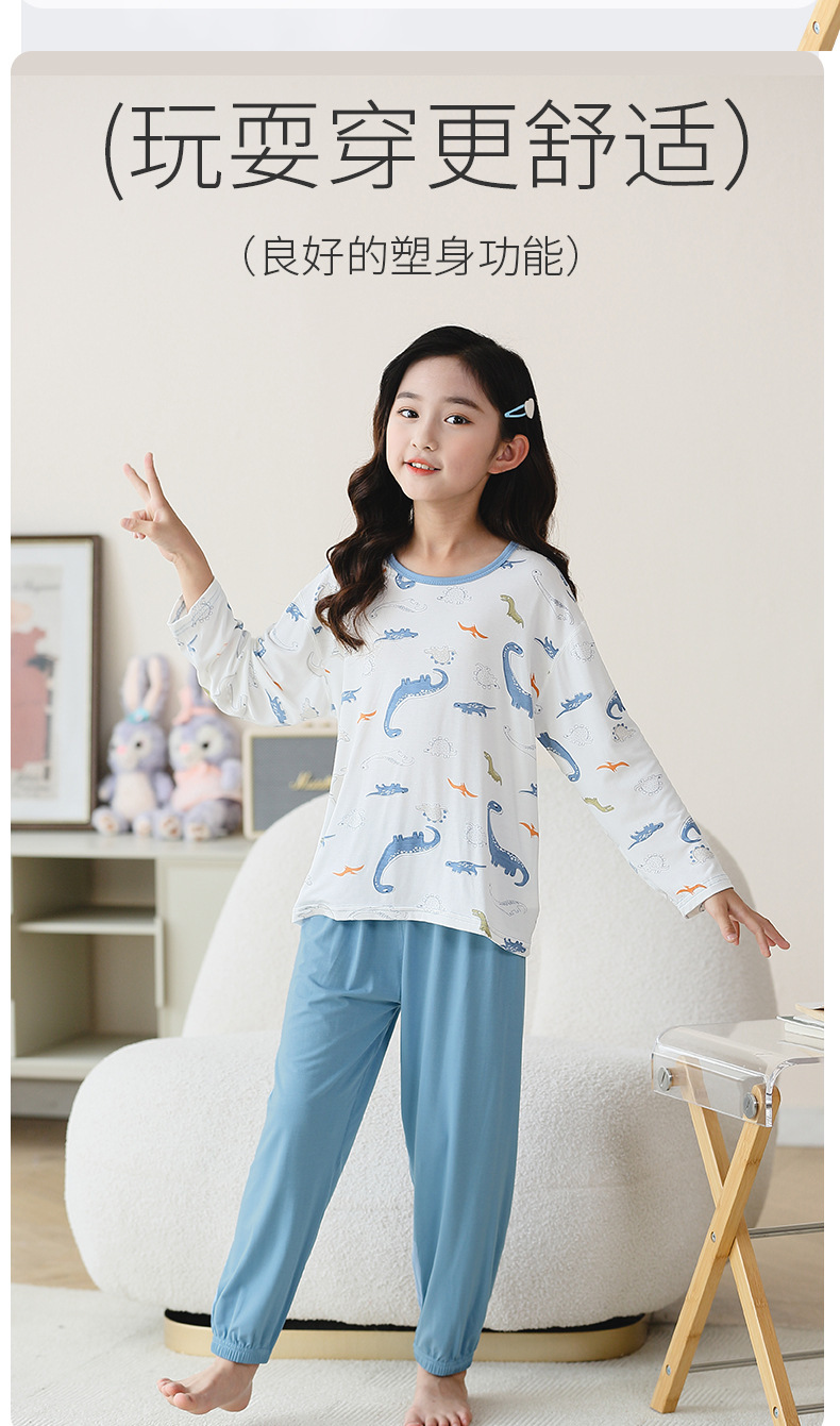 여름 부모-아이 세트 모달 긴팔 바지 큰 아이 만화 인쇄 캐주얼 홈 옷 에어컨 옷 잠옷스토어 가기