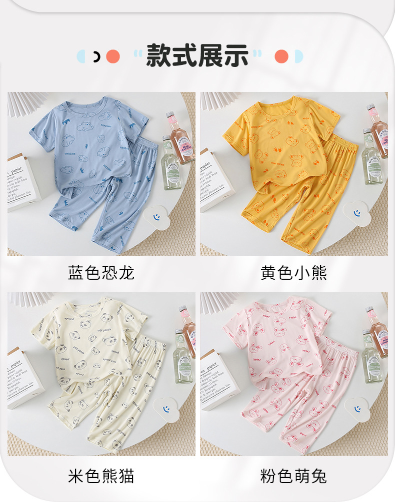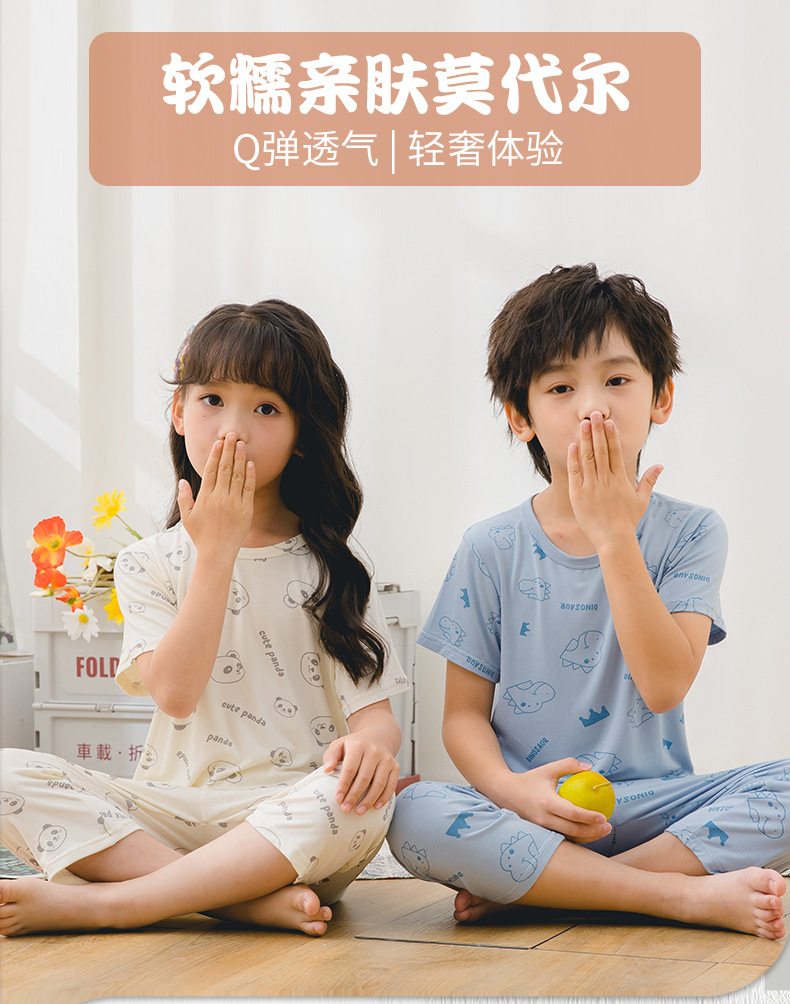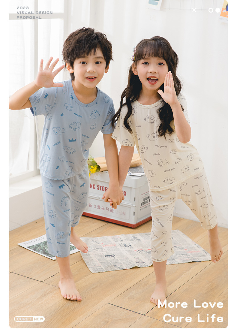 여름 어린이 반팔 세트 홈 의류 모달 인쇄 된 자른 바지 어린이 둥근 목 에어컨 옷 잠옷