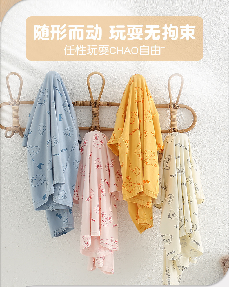 여름 어린이 반팔 세트 홈 의류 모달 인쇄 된 자른 바지 어린이 둥근 목 에어컨 옷 잠옷스토어 가기