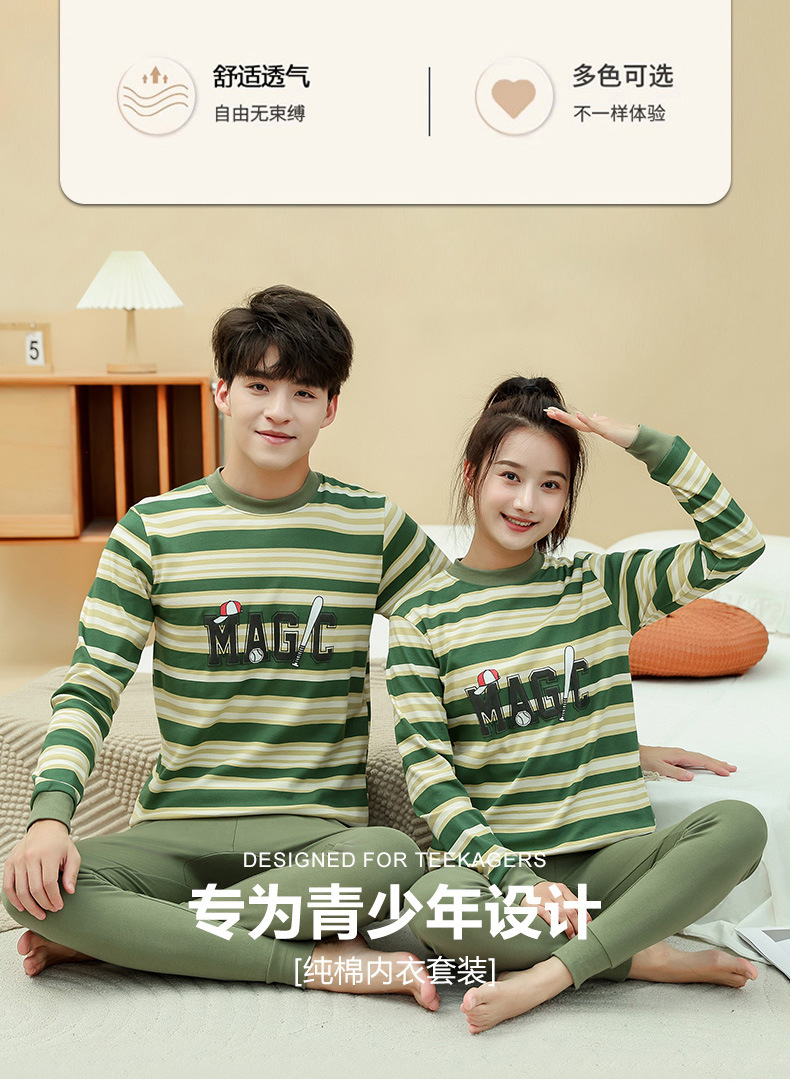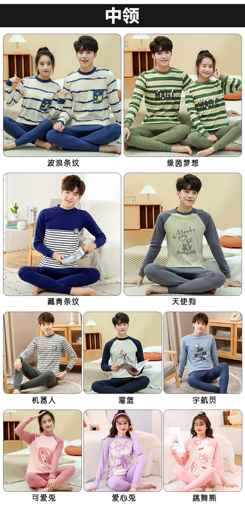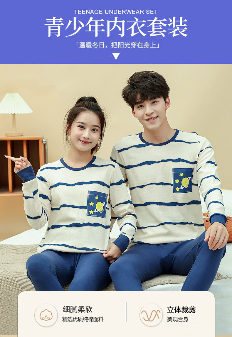 남학생과 여학생을위한 2024 가을 겨울 청소년 면화 속옷 세트 중학교 및 고등학생을위한 가을 옷과 바지 면화 스웨터스토어 가기