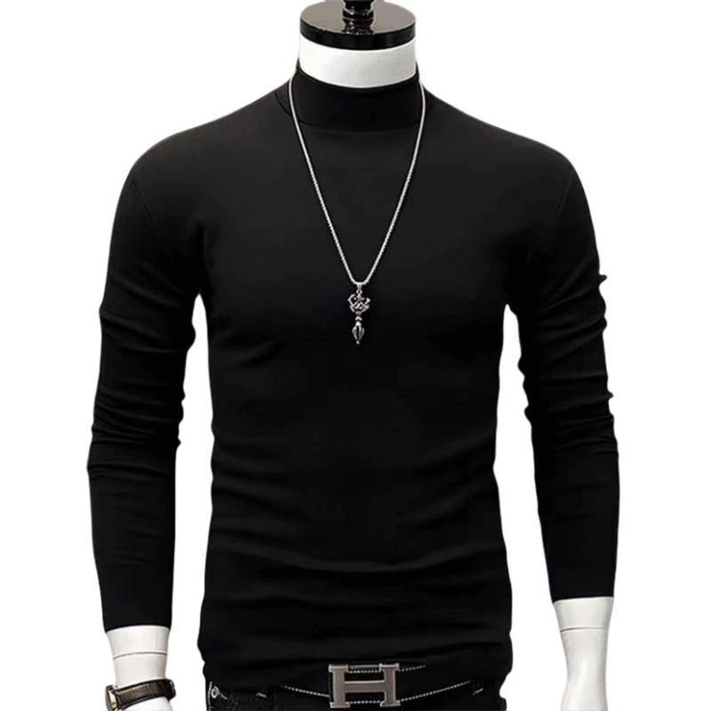 순수한면 단색 벨벳 따뜻한 높은 칼라 바닥 가을과 겨울 긴 소매 플러스 사이즈 남성 가을과 겨울 슬림 핏 티셔츠