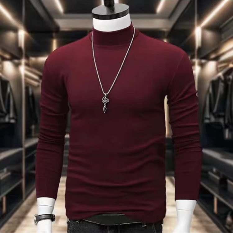 순수한면 단색 벨벳 따뜻한 높은 칼라 바닥 가을과 겨울 긴 소매 플러스 사이즈 남성 가을과 겨울 슬림 핏 티셔츠스토어 가기