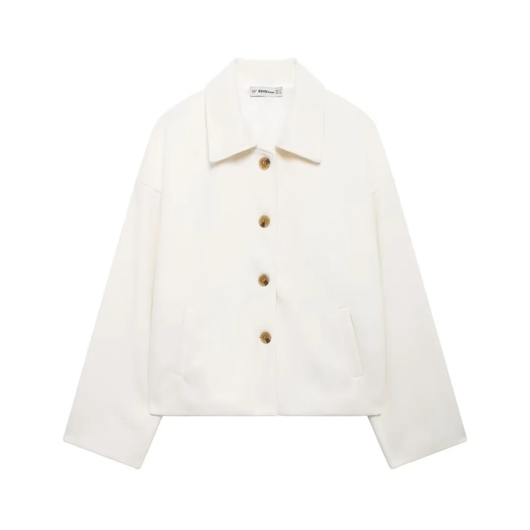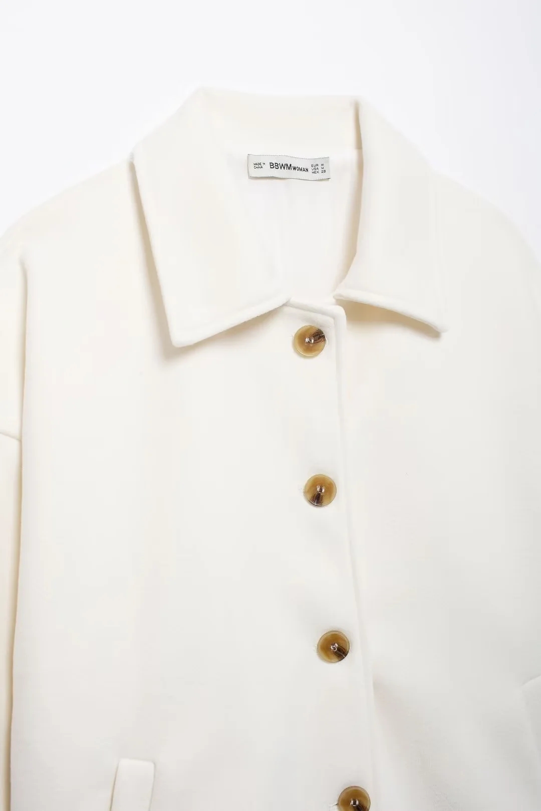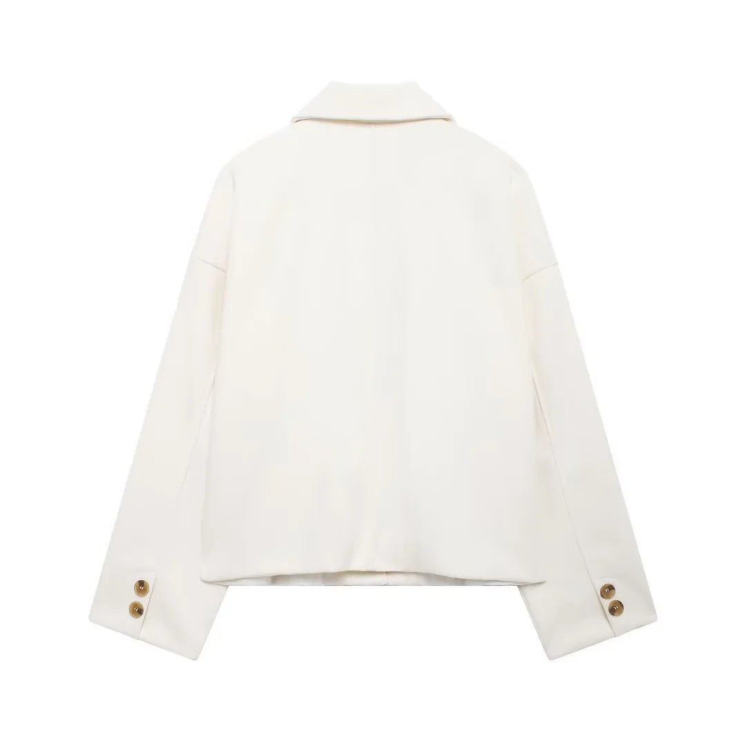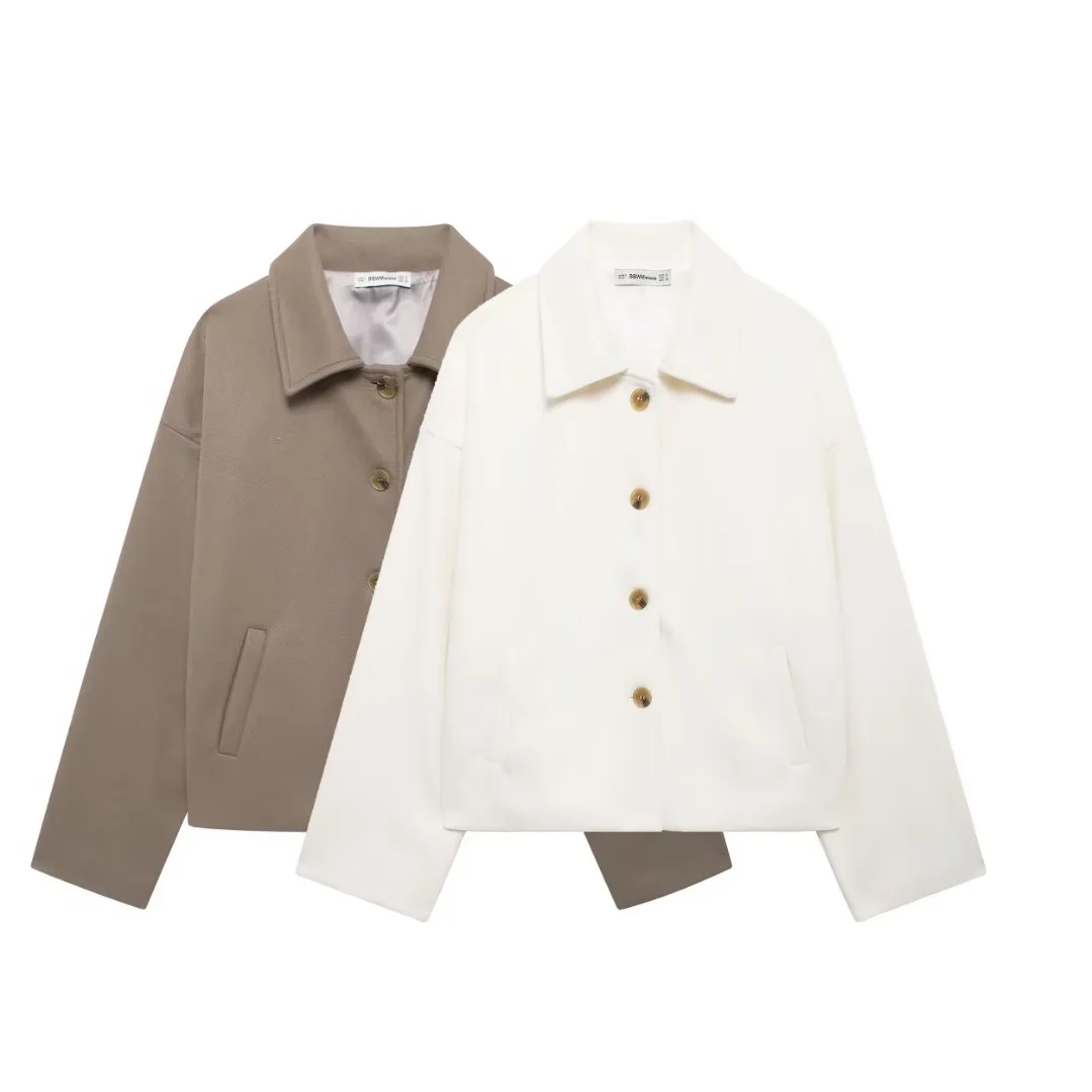 유럽과 미국 스타일 2024 가을 새로운 여성 빈티지 느슨한 캐주얼 옷깃 긴 소매 싱글 브레스트 트위드 재킷 코트스토어 가기