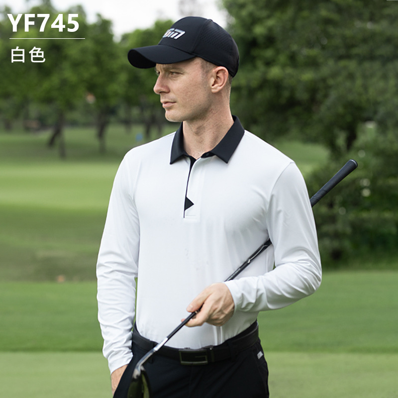 PGM 골프 의류 남자 긴팔 티셔츠 스포츠 탑 부드럽고 편안한 통기성 옷깃 골프 남자 저지 여자
