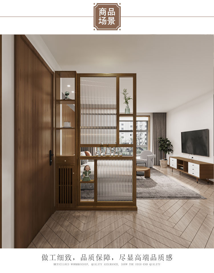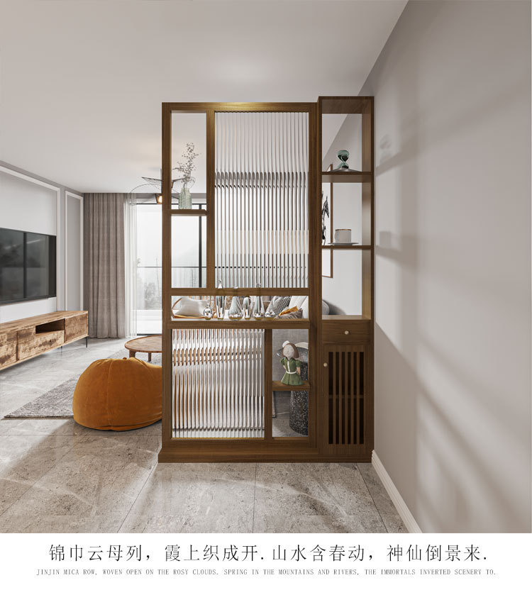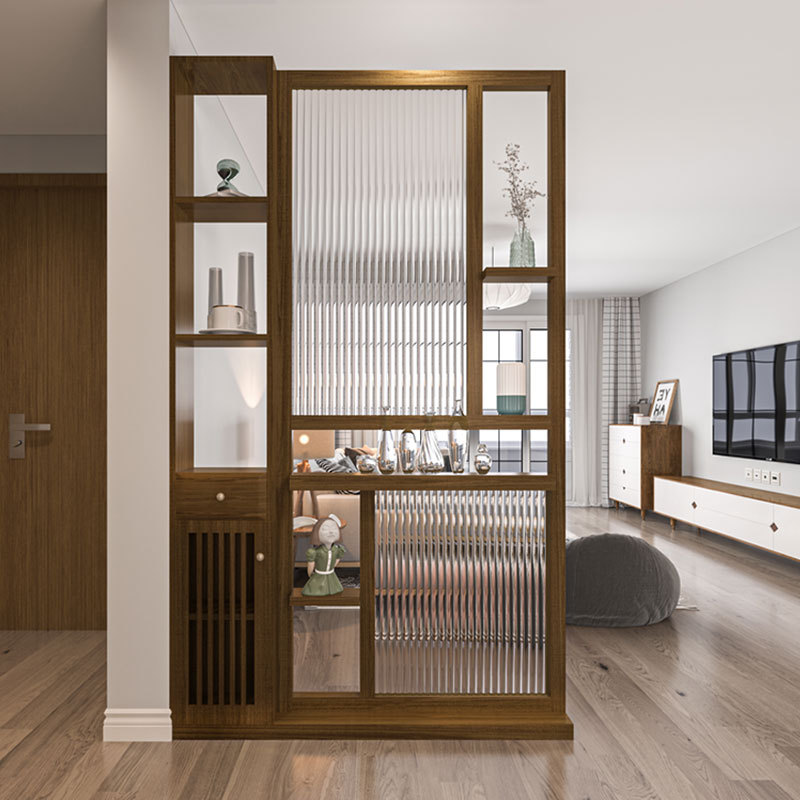 창홍 유리 스크린 파티션 새로운 중국 스타일 솔리드 우드 입구 캐비닛 보관 랙 다이닝 룸 및 거실 홈 선반