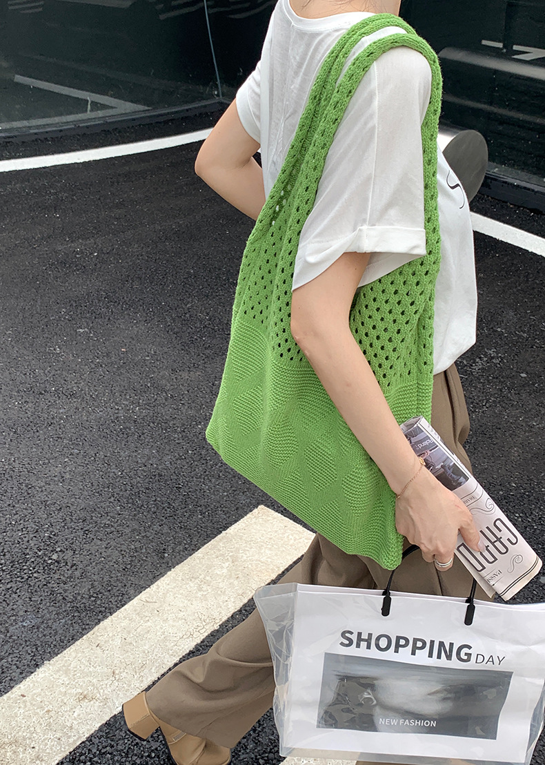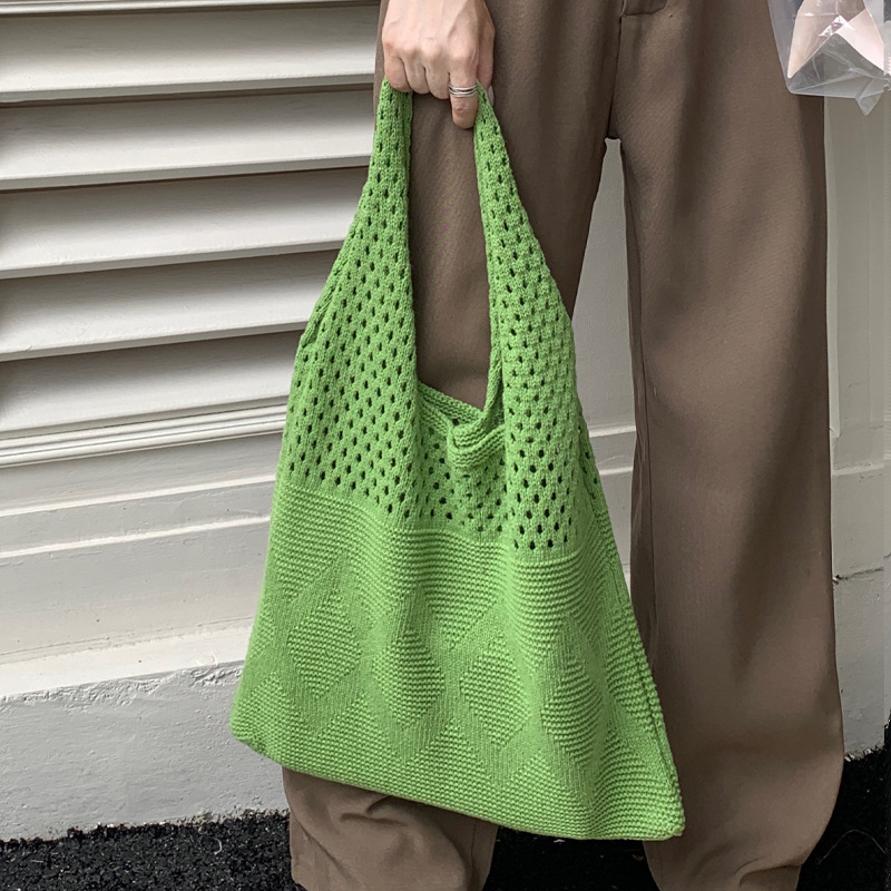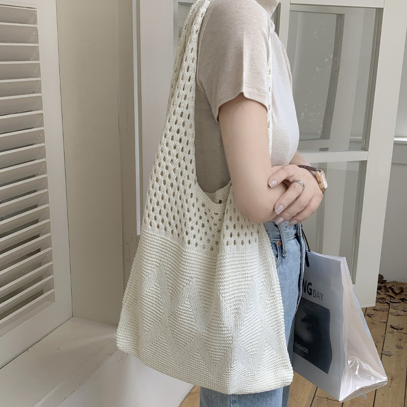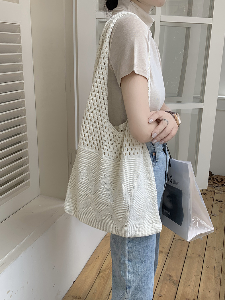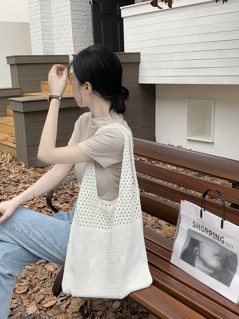 2024 새로운 예술적 니트 백 단일 어깨 대용량 토트 백 여성 휴대용 할로우 짠 가방 트렌디스토어 가기