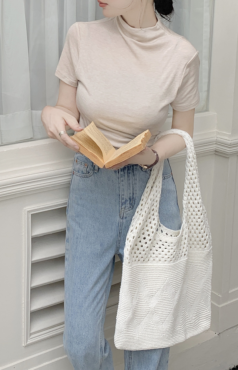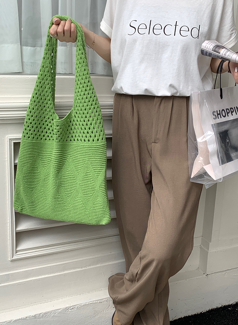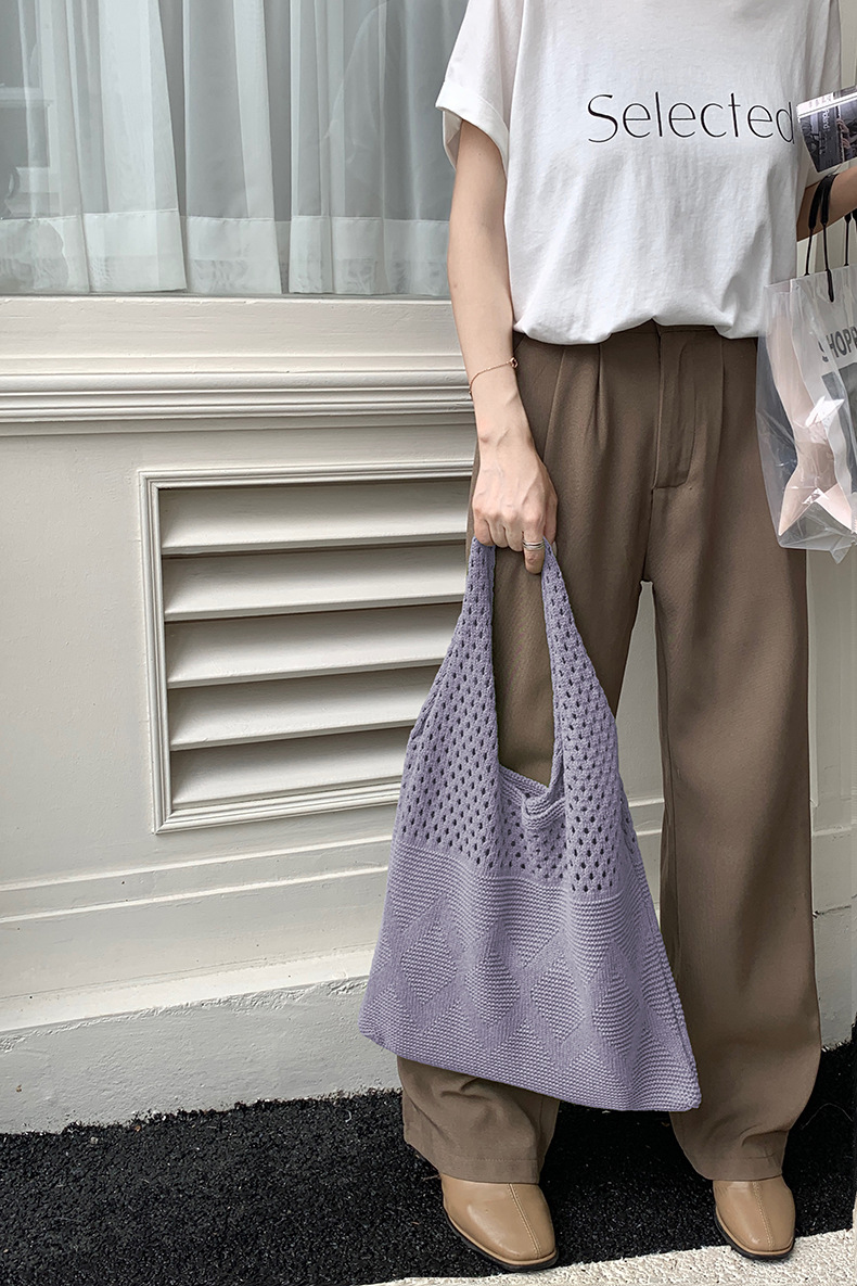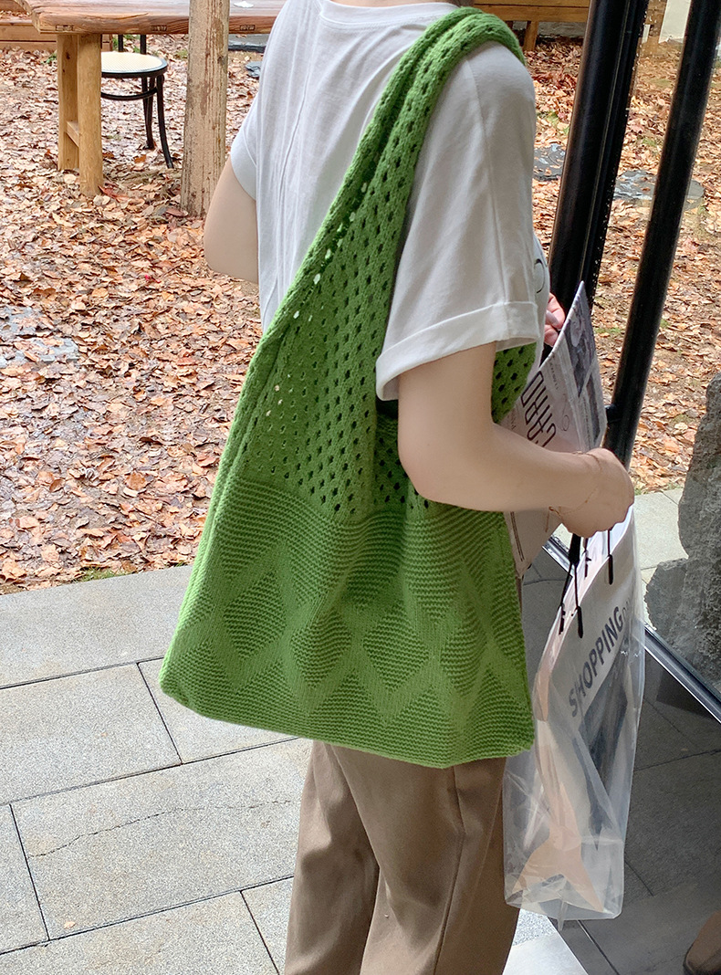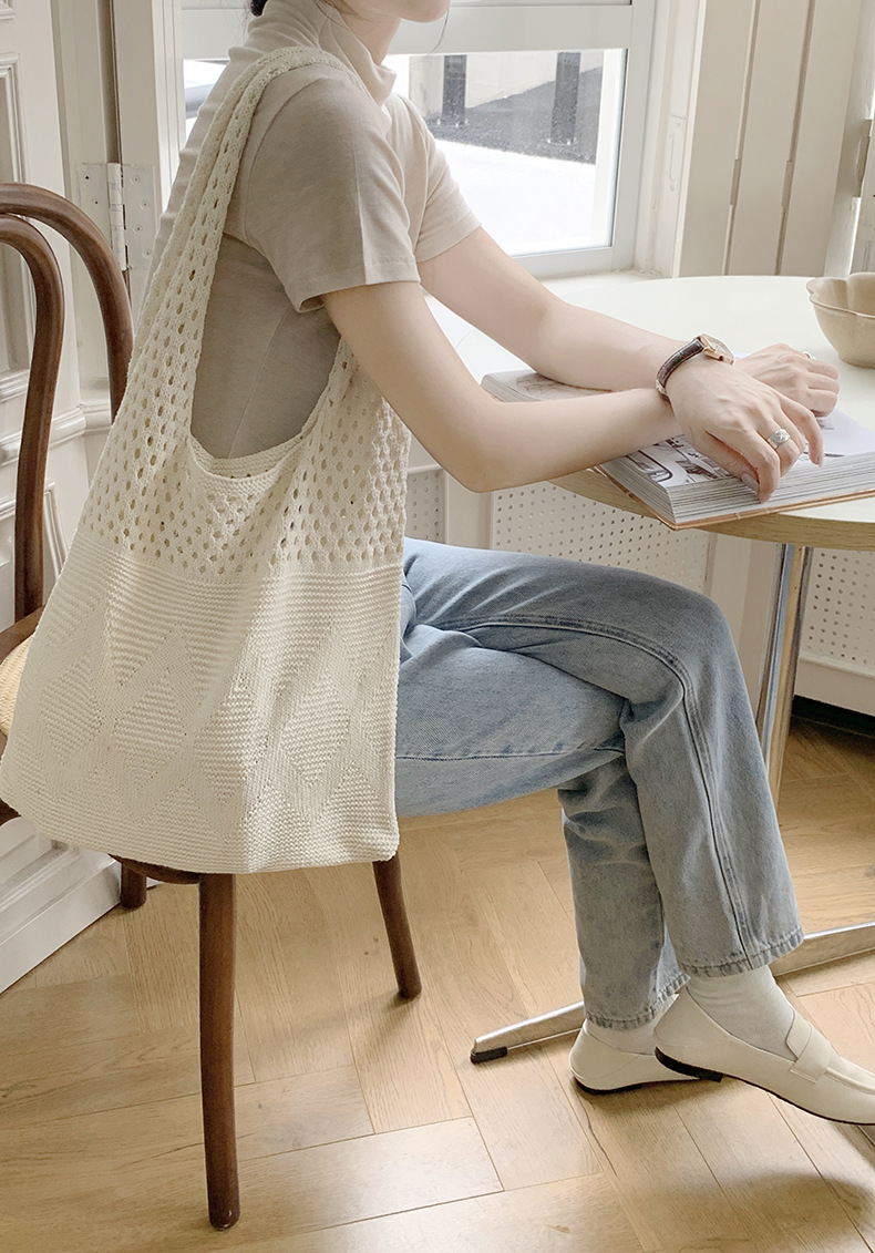 2024 새로운 예술적 니트 백 단일 어깨 대용량 토트 백 여성 휴대용 할로우 짠 가방 트렌디스토어 가기